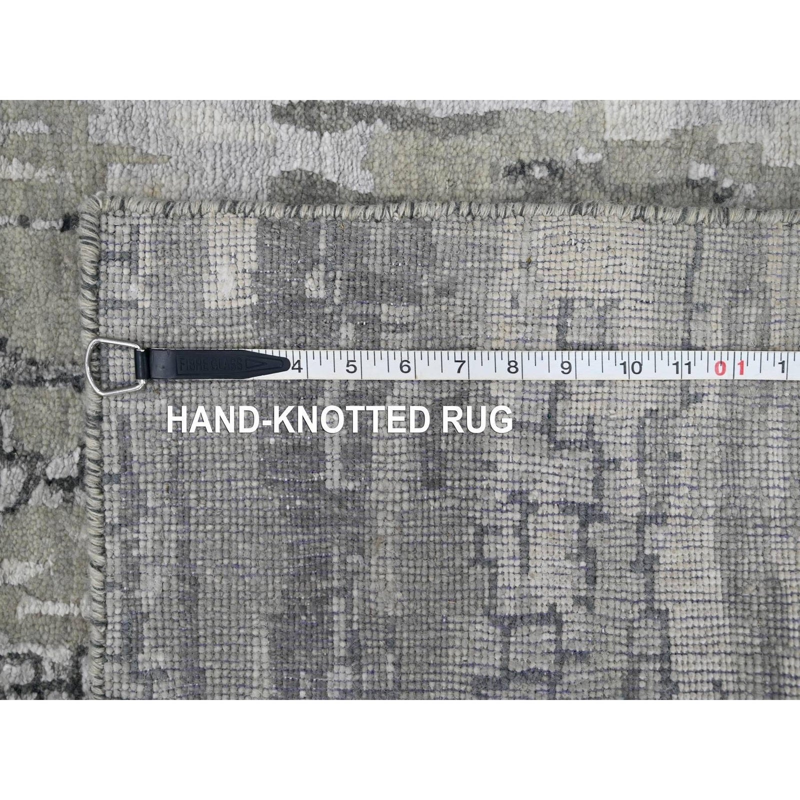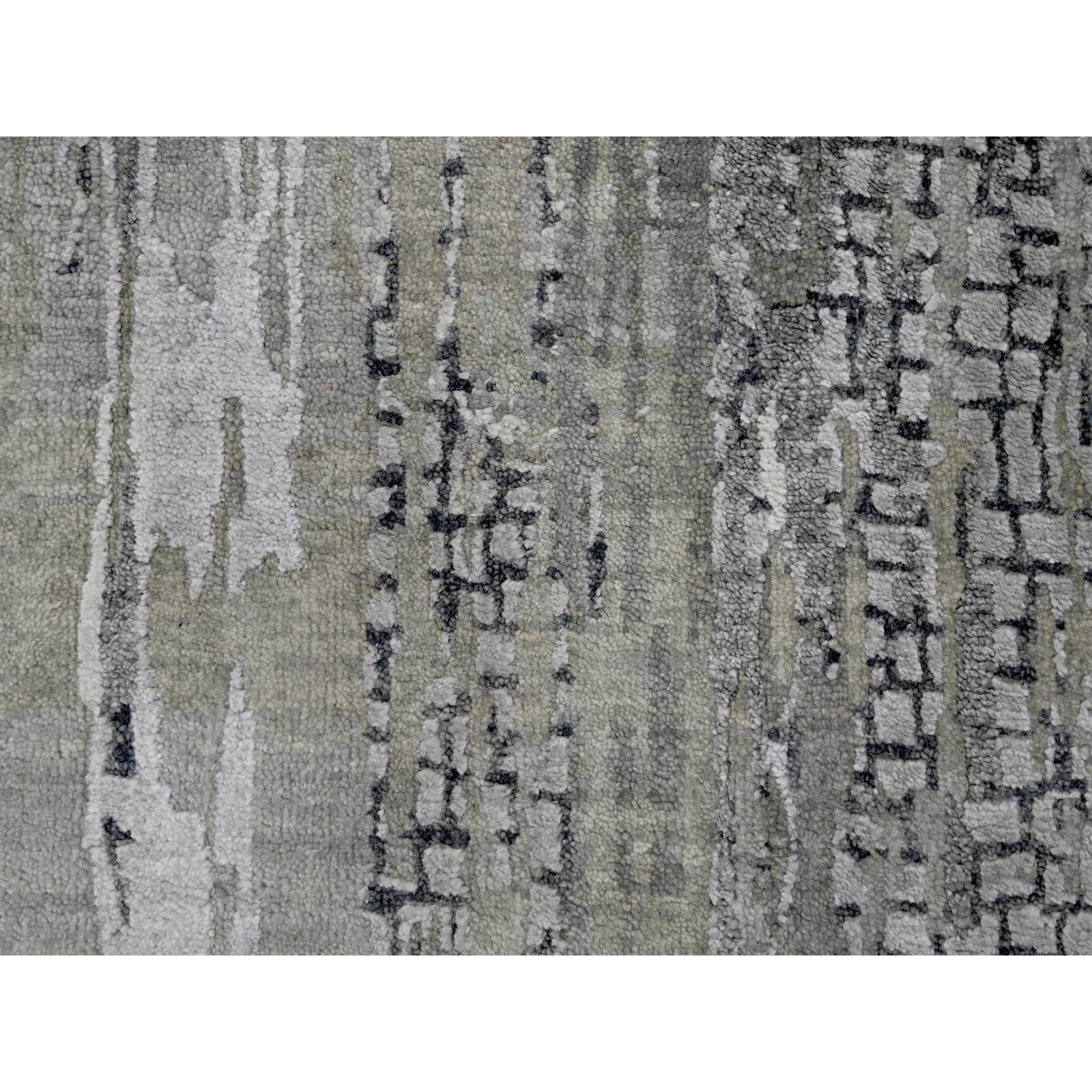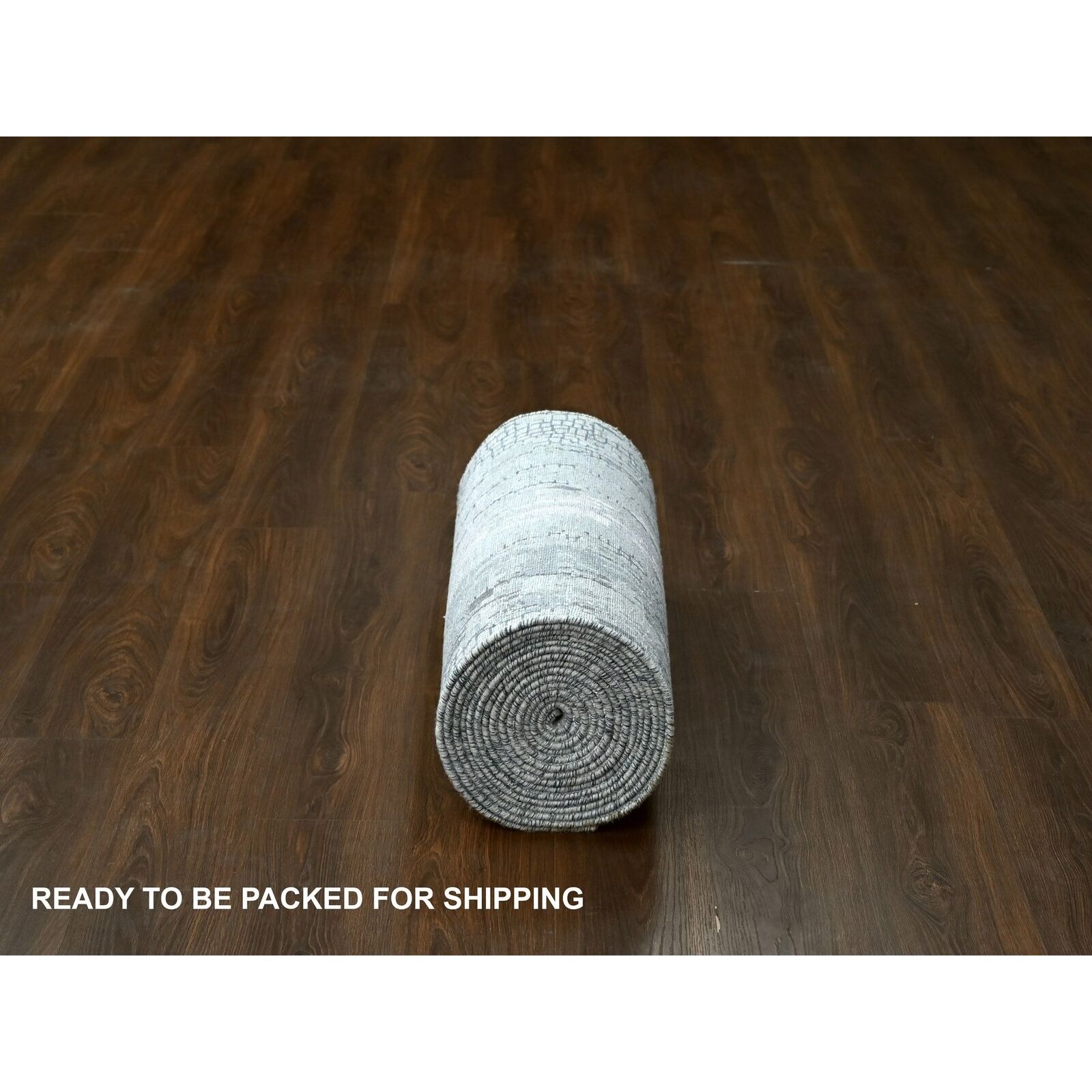 2'8"X25'7" Gray Abstract Design Wool And Silk Hand Knotted Xl Runner Rug