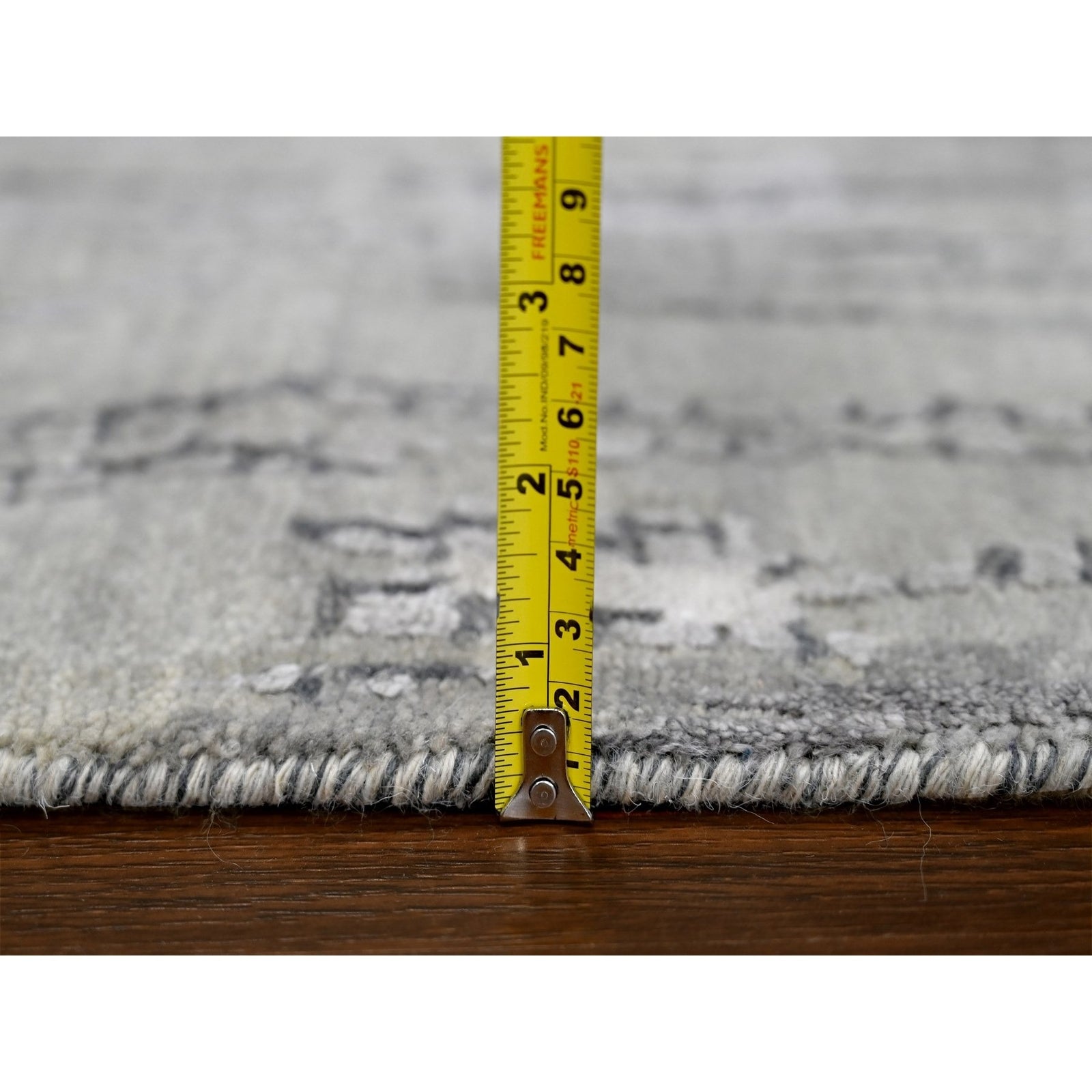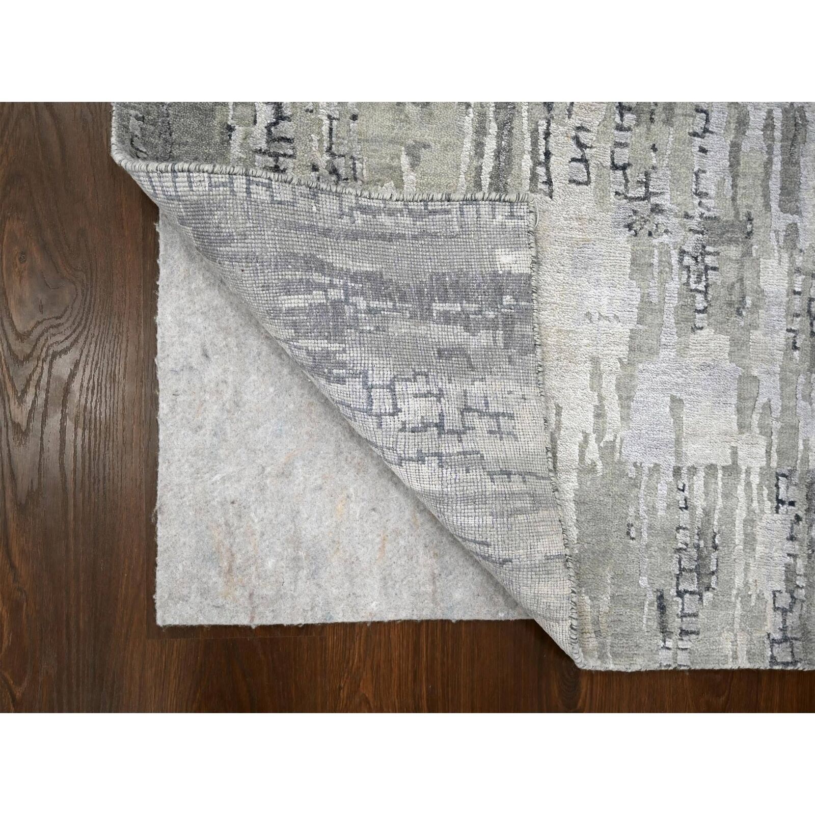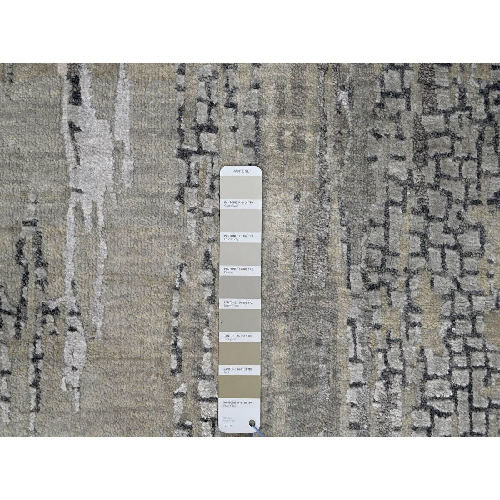 2'8"X25'7" Gray Abstract Design Wool And Silk Hand Knotted Xl Runner Rug