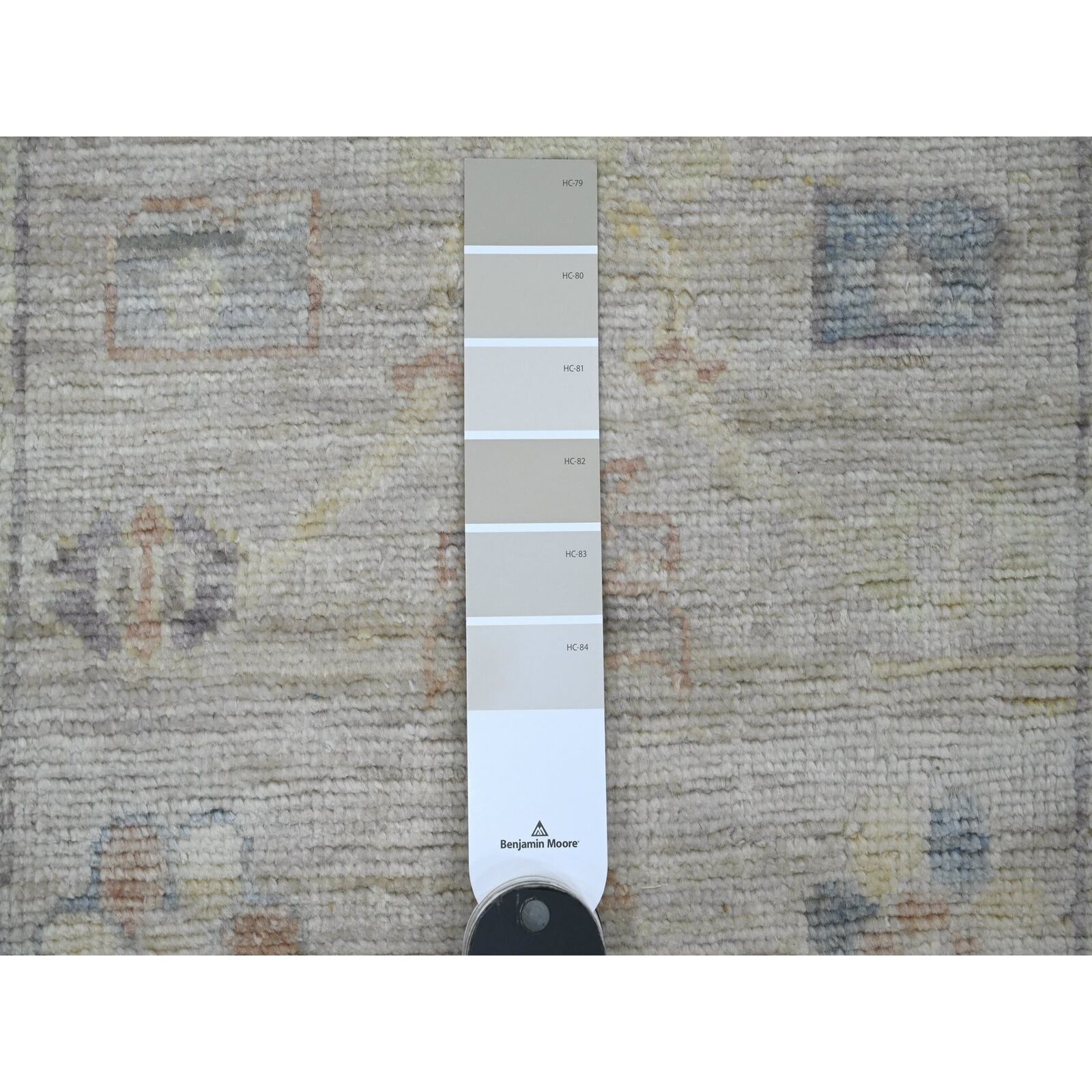2'8"X5'7" Gray Angora Oushak Leaf Design All Wool Hand Knotted Runner Rug