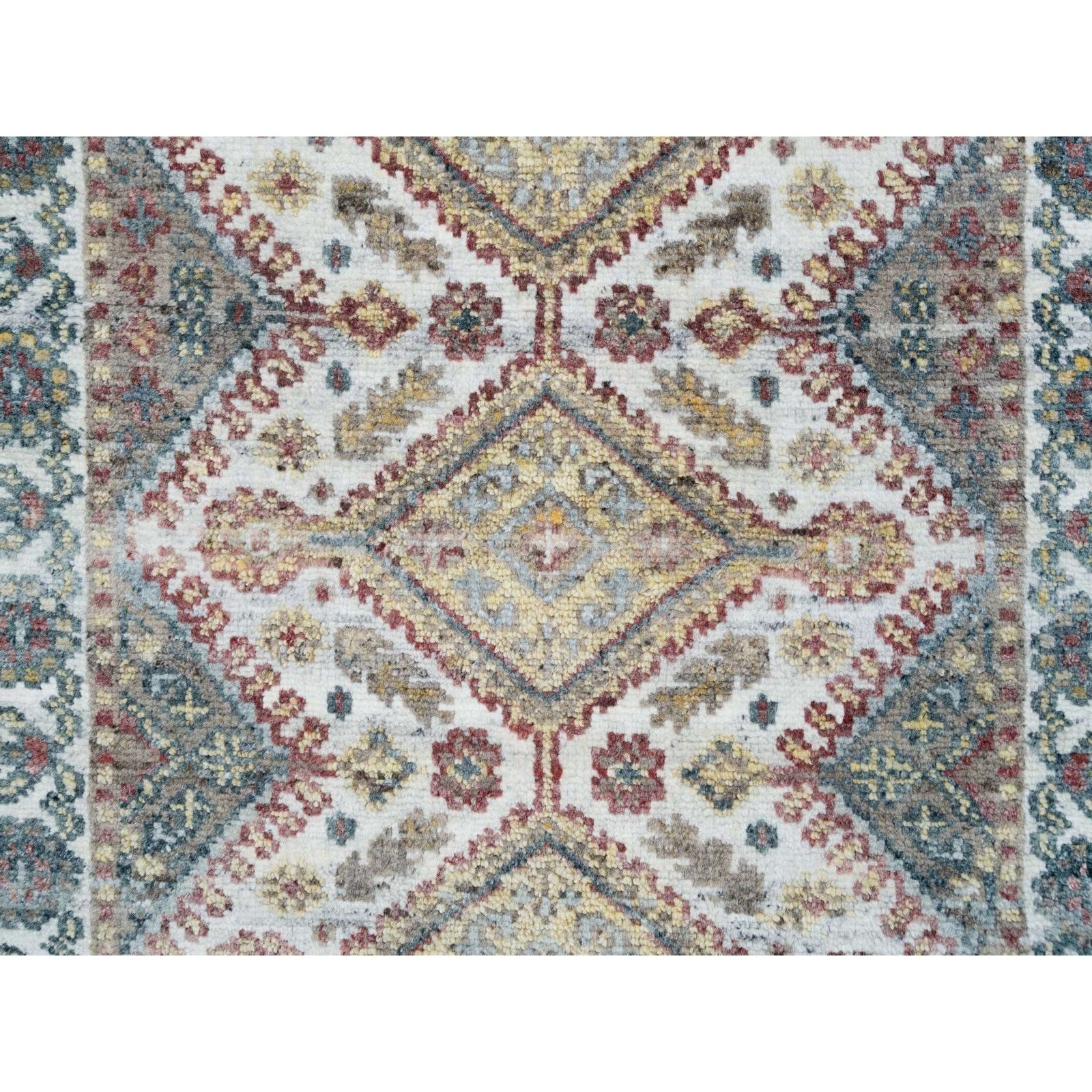 2'8"X6' Ivory Flower Rosettes Border Hand Knotted Runner Oriental Rug