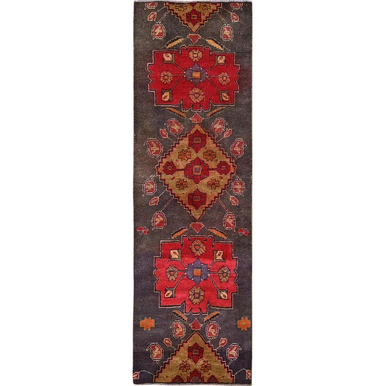 2'8"X7'10" Gray Vintage Zoroastrian Khamadan Hand Knotted Wool Runner Rug