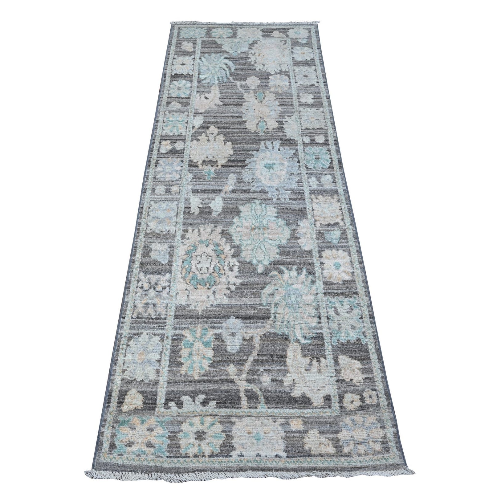 2'8"X7'9" Scorpion Gray Hand Knotted Angora Oushak Runner Oriental Rug