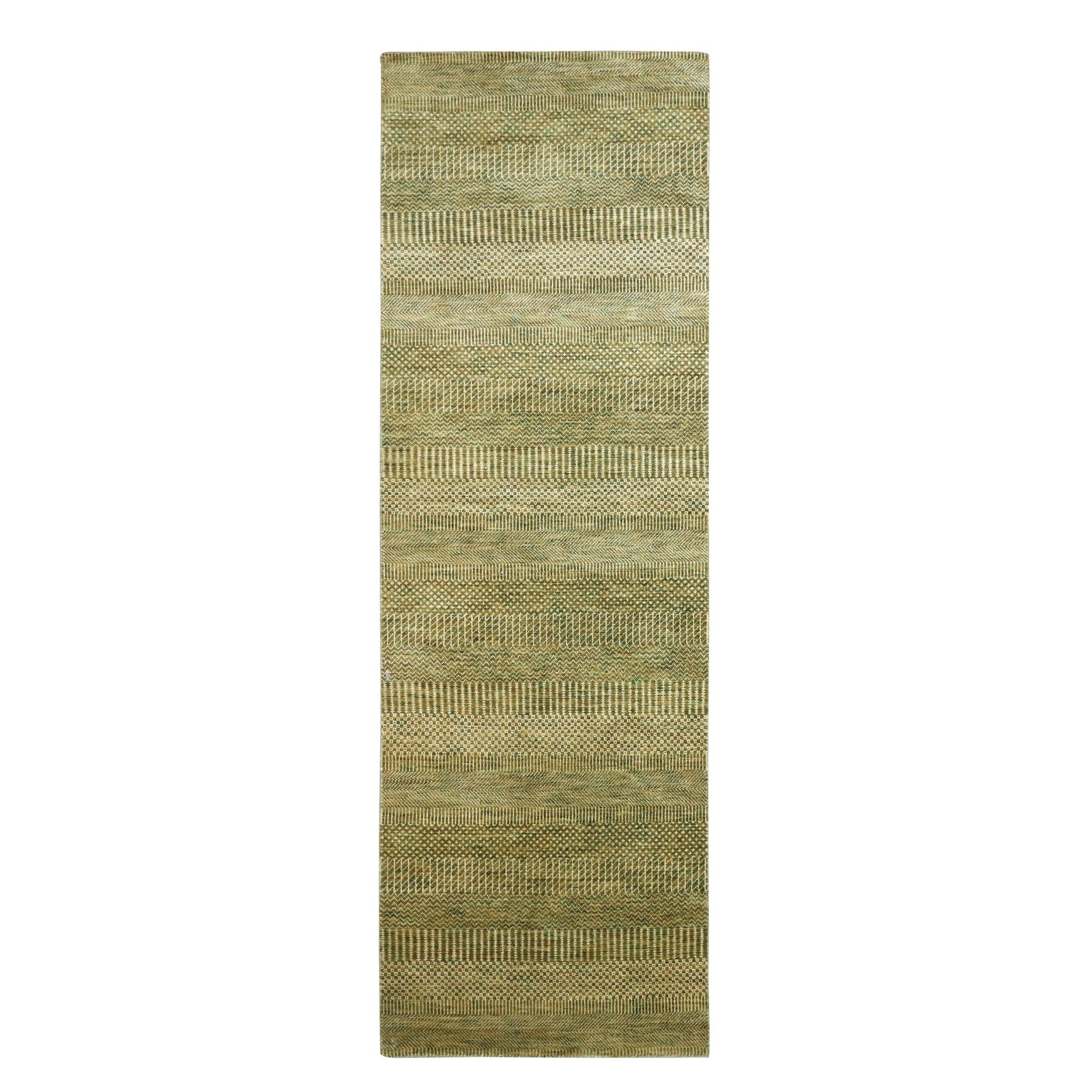 2'8"X8'3" Brown Modern Grass Design Hand Knotted Wool And Silk Runner Rug
