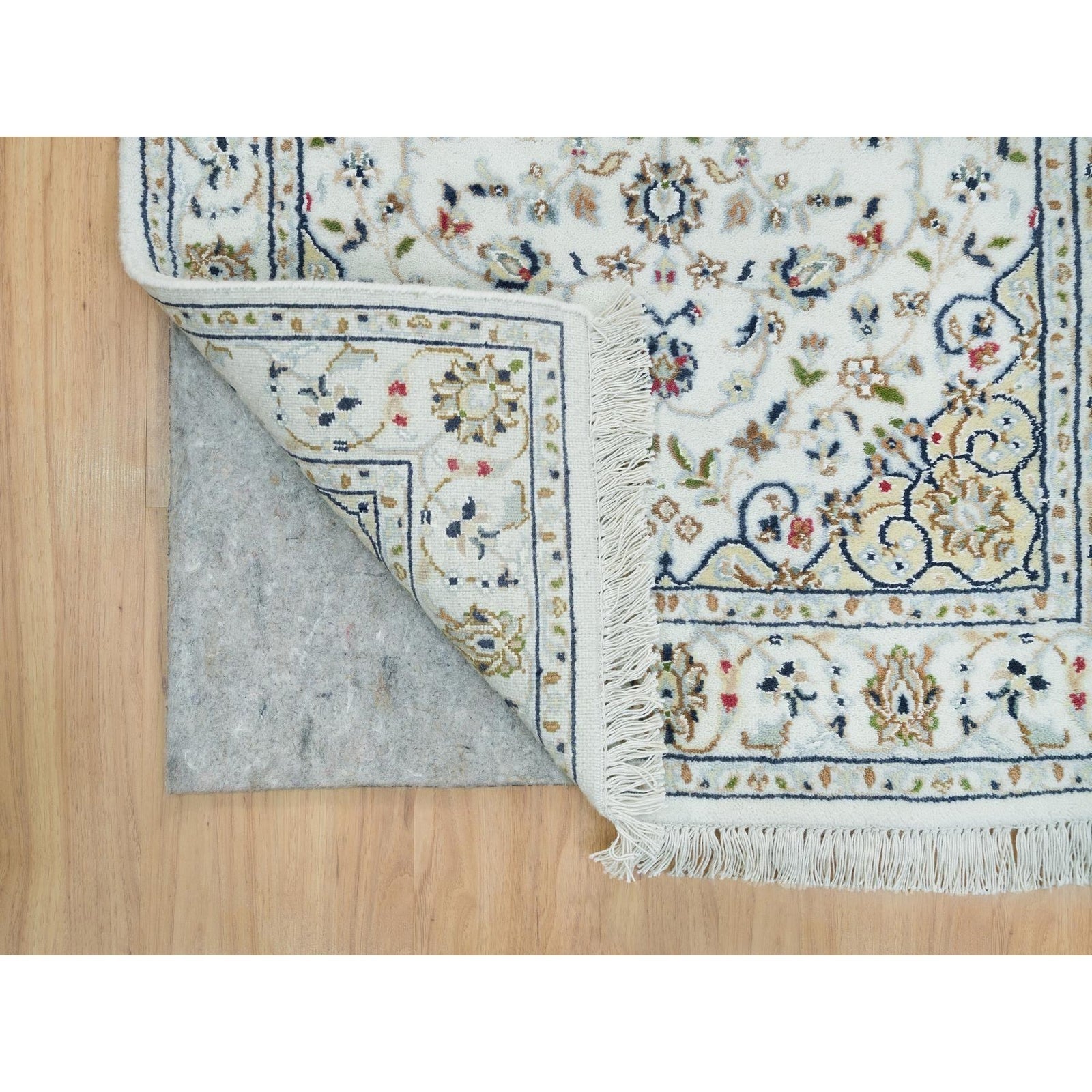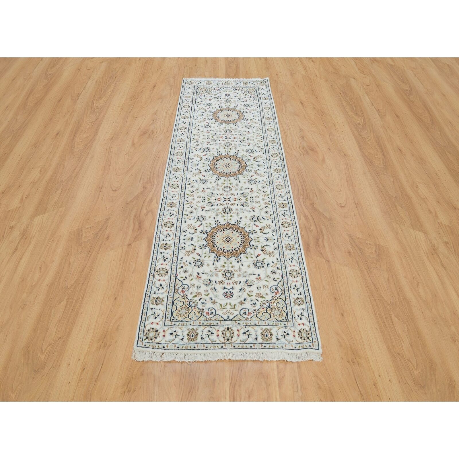 2'8"X8'4" Powder White Wool Hand Knotted Nain Design 250 Kpsi Runner Rug