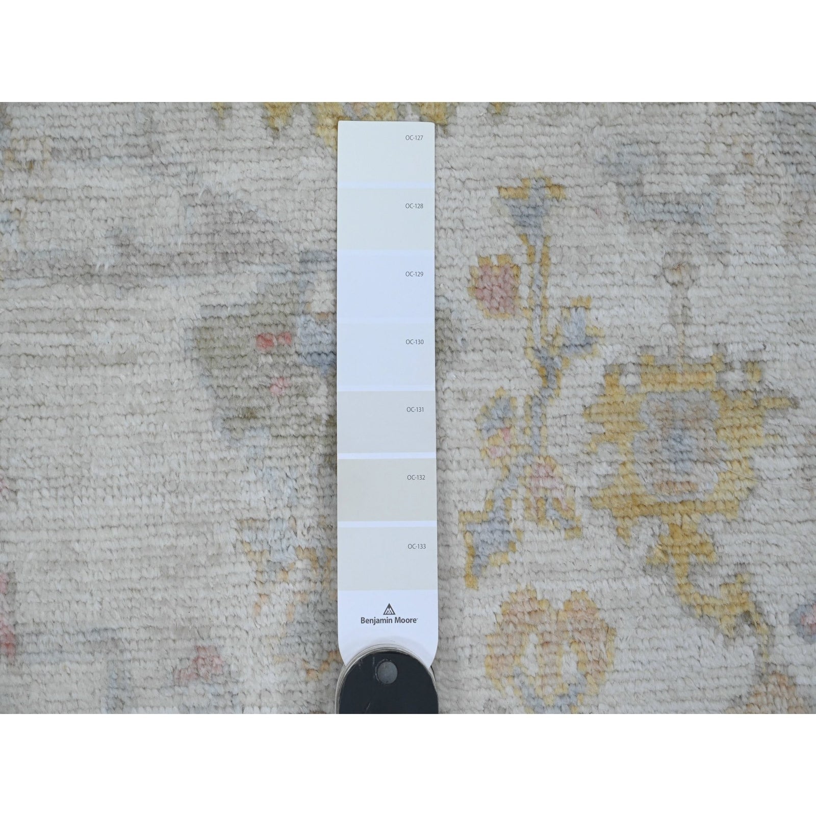 2'8"X8'9" White Hand Knotted Angora Oushak Leaf Design Wool Runner Rug