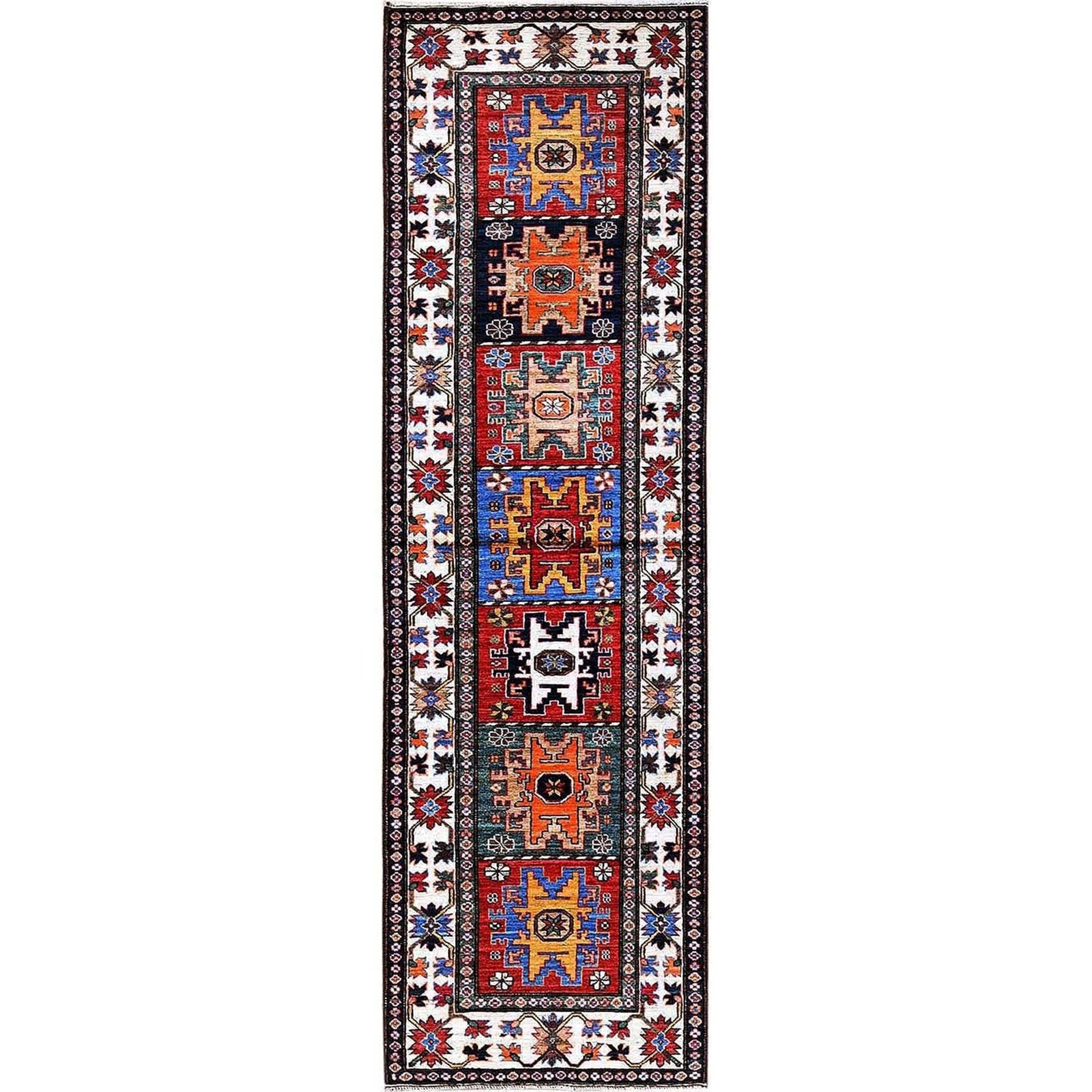 2'8"X9'2" Colorful Caucasian Design Revival Hand Knotted Wool Runner Rug