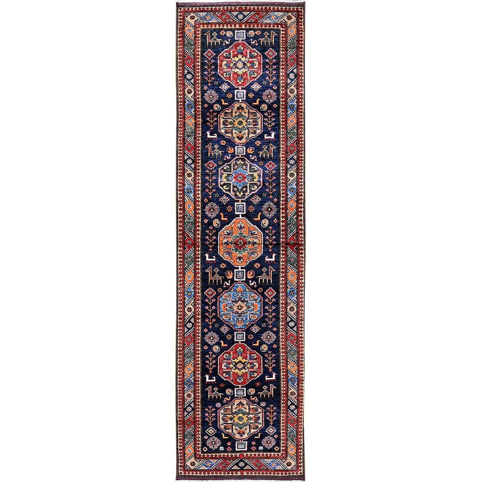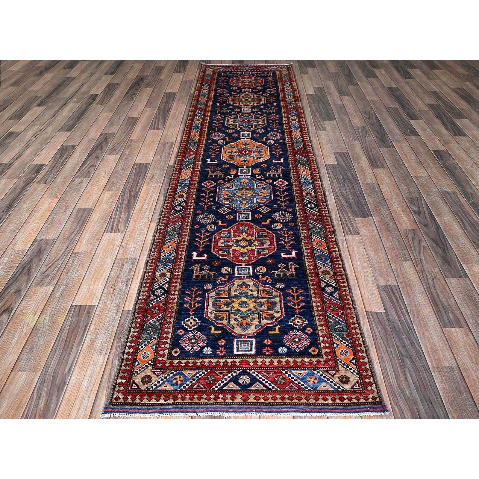 2'8"X9'5" Sailor Blue Caucasian Design Revival Hand Knotted Wool Runner Rug