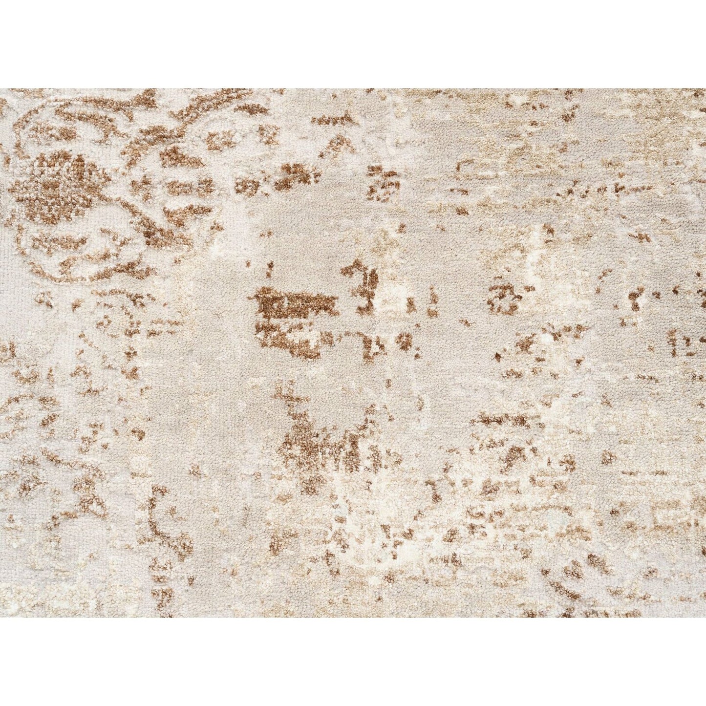 2'9"X10' Beige With Brown Modern Wool-Silk Hand Knotted Runner Rug