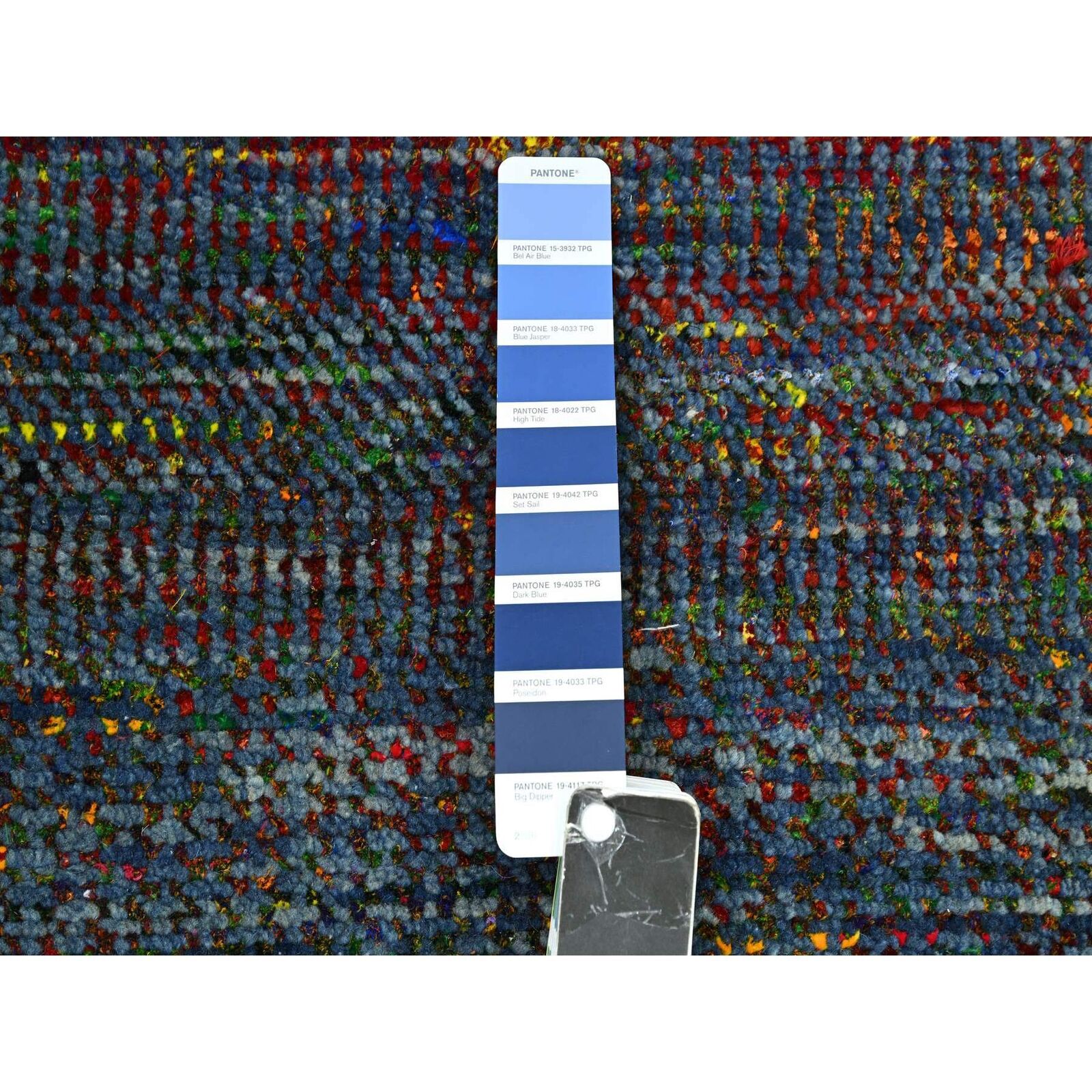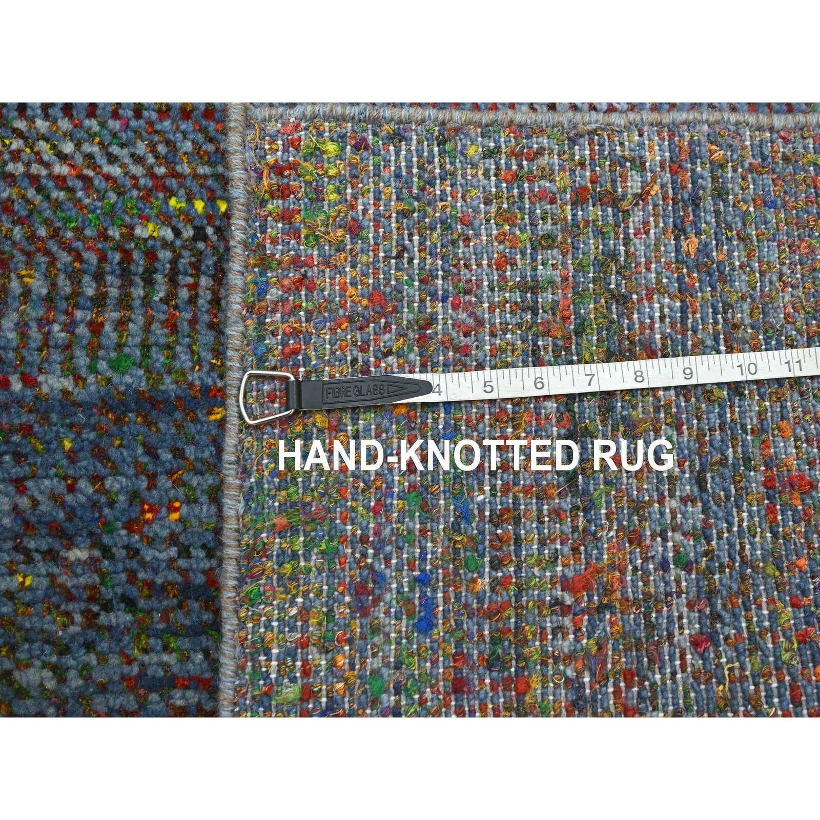 2'9"X10'2" Blue Grass Design Wool And Silk Modern Hand Knotted Runner Rug