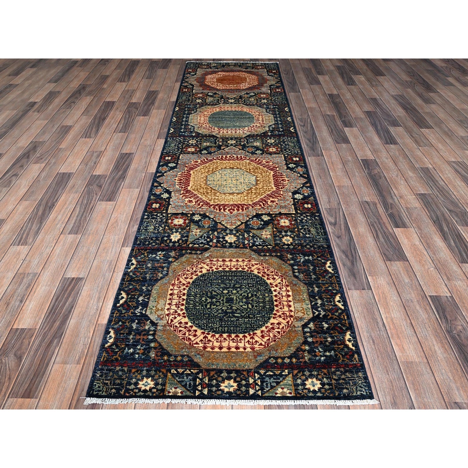 2'9"X10'2" Navy Blue Mamluk Design Soft Wool Hand Knotted Runner Rug