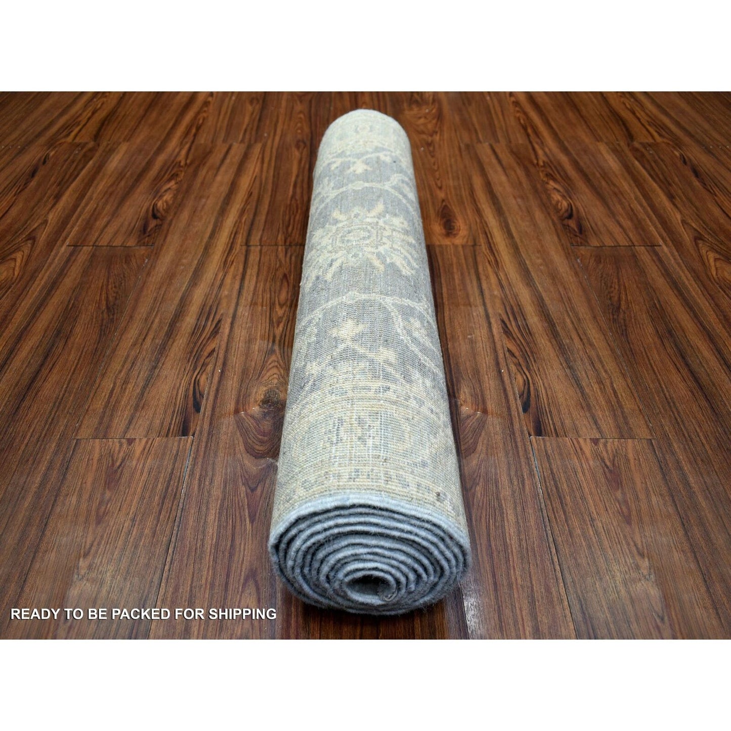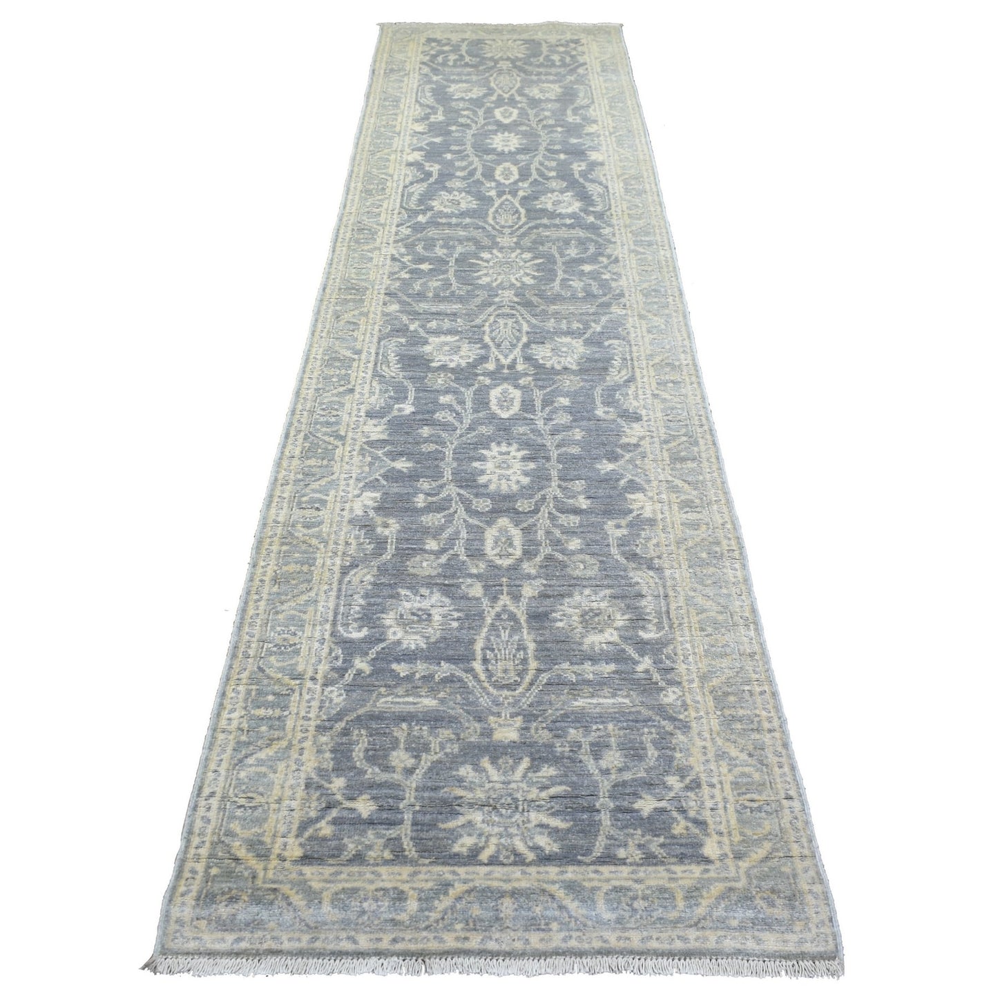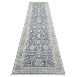 2'9"X11'5" Gray Extra Soft Wool Hand Knotted Fine Peshawar Runner Rug