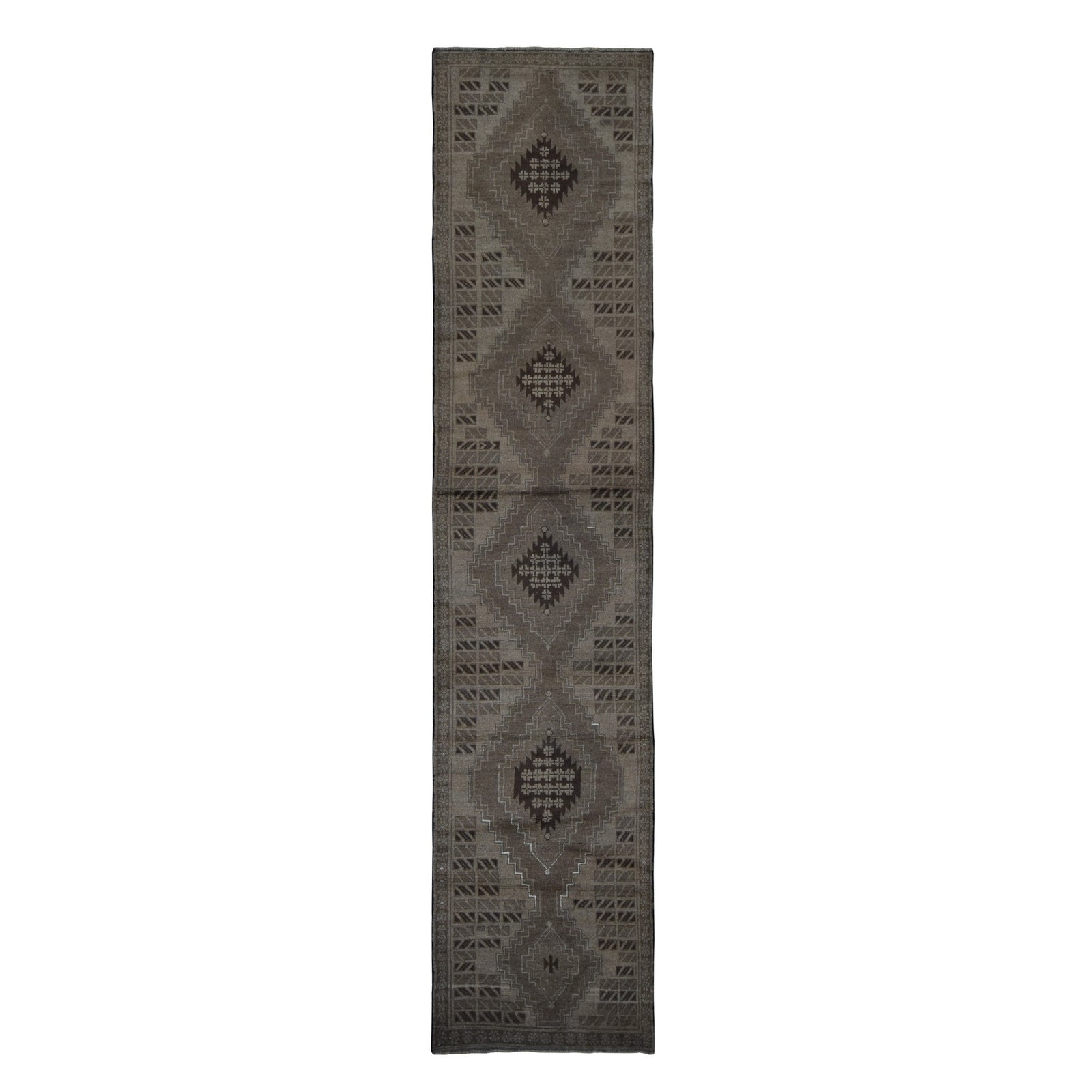2'9"X12'8" Brown Washed Out Afghan Balooch Wool Hand Knotted Runner Rug