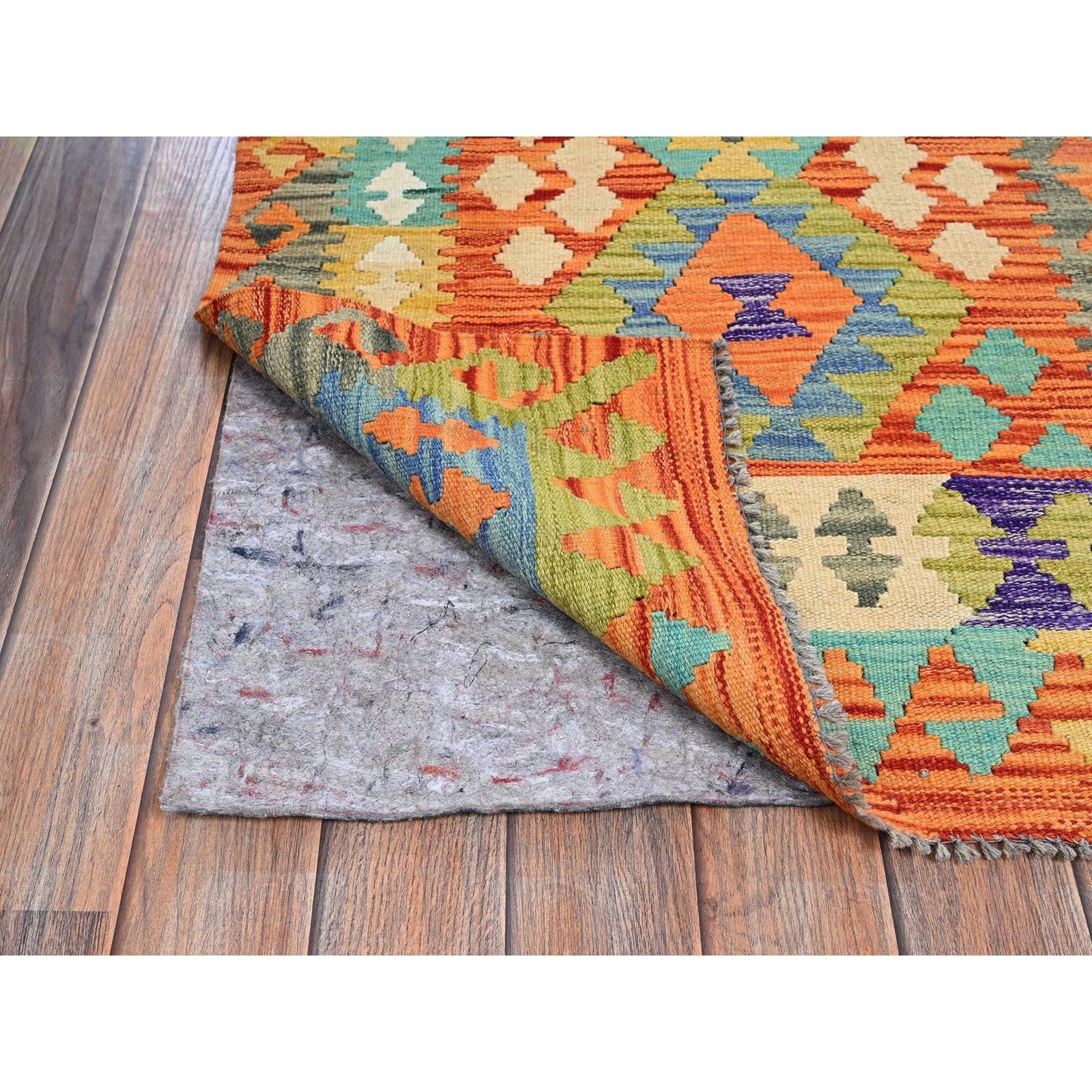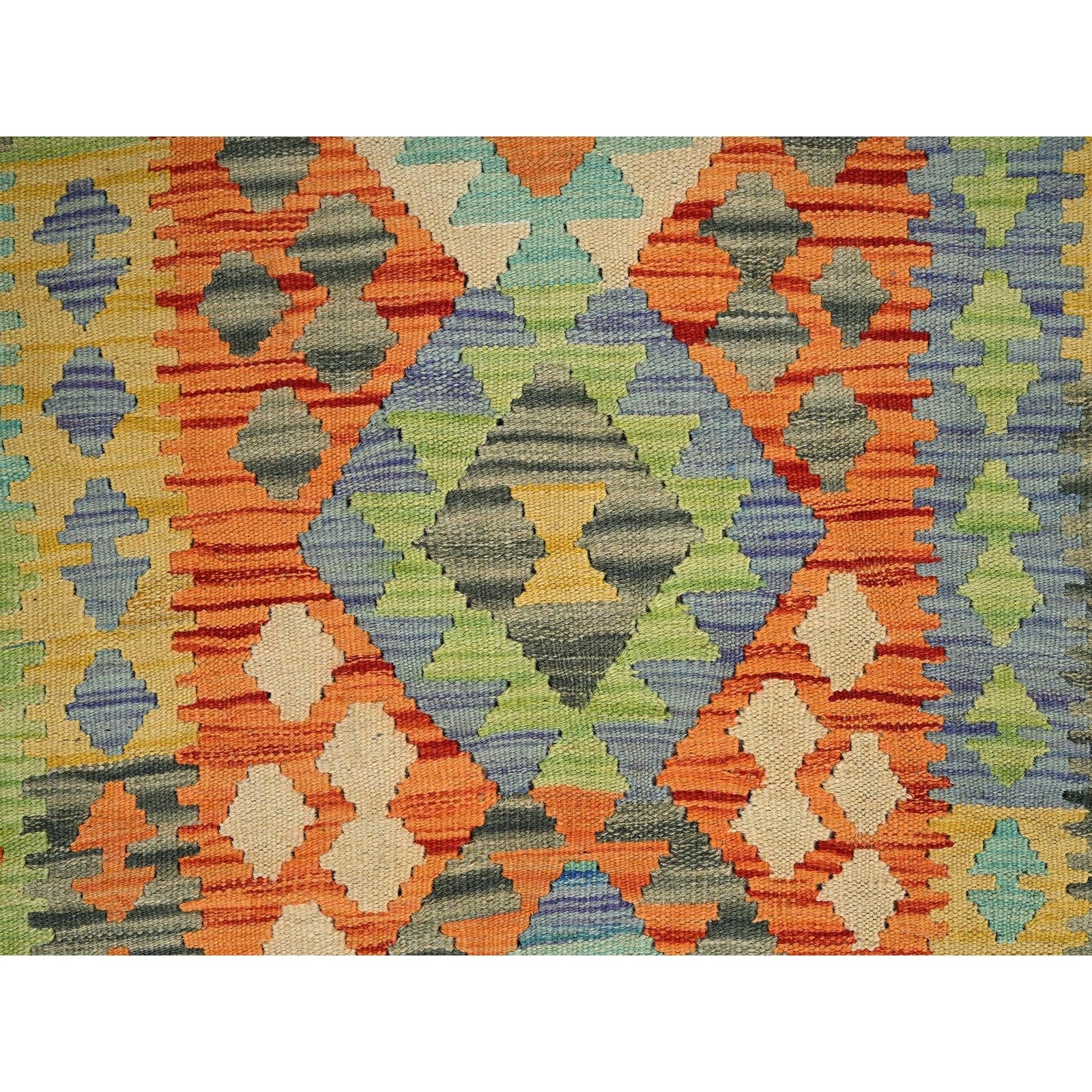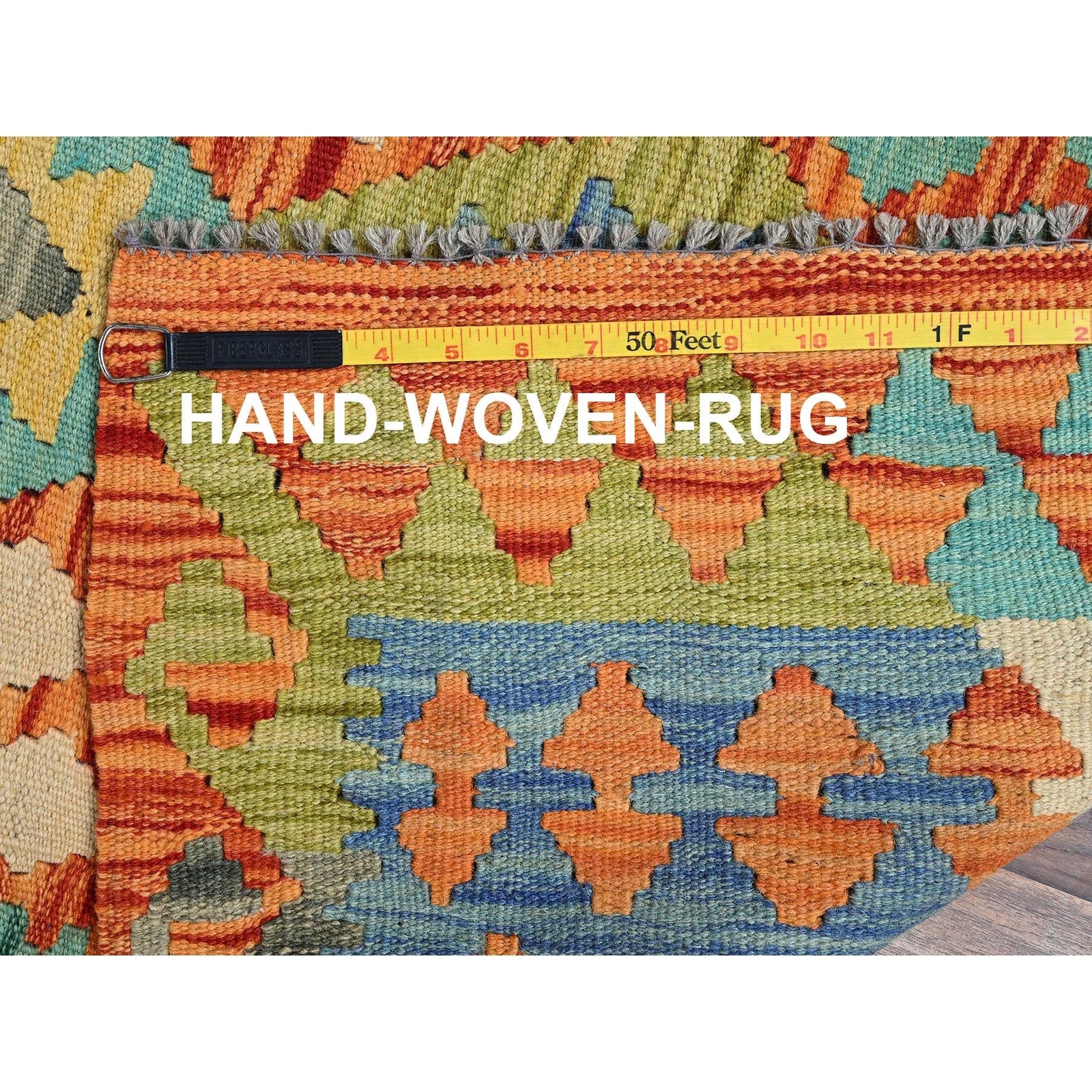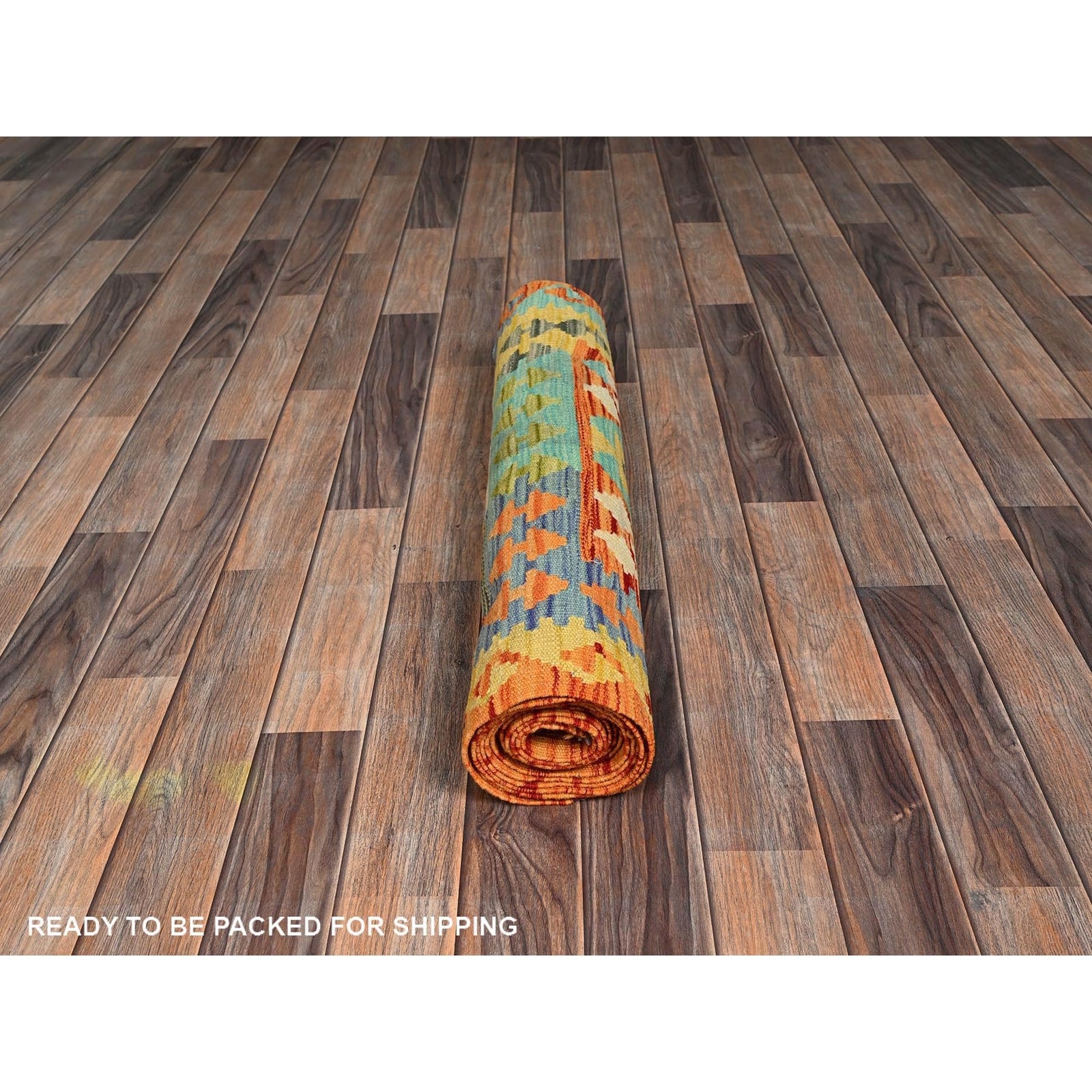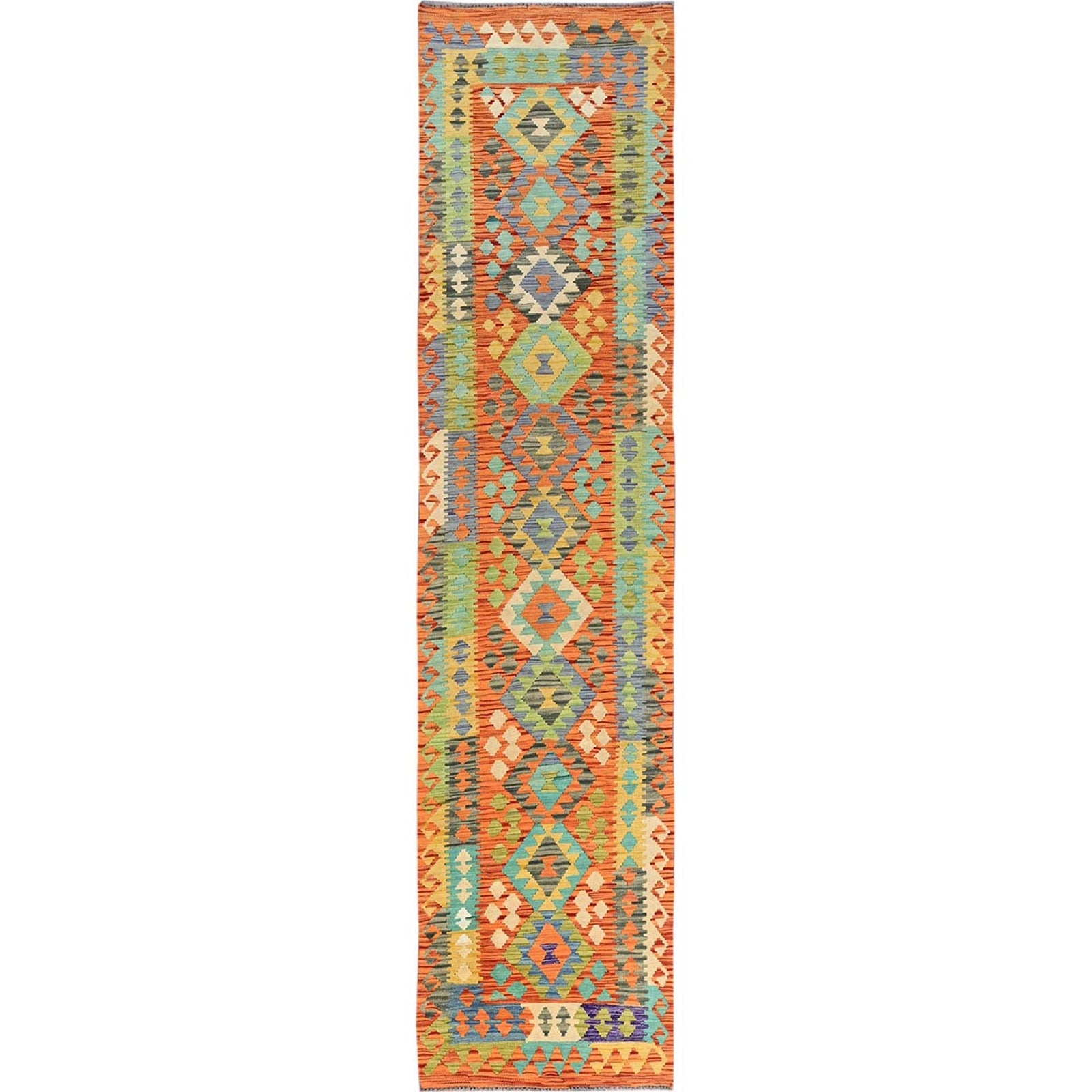 2'9"X12'8" Orange Afghan Kilim Pure Wool Hand Woven Flat Weave Runner Rug