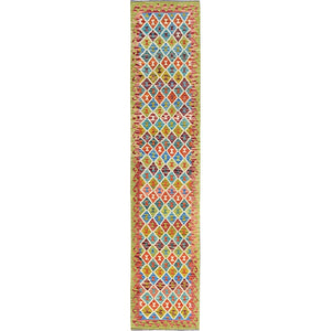 2'9"X12'9" Colorful Afghan Kilim Hand Woven Flat Weave Wool Runner Rug