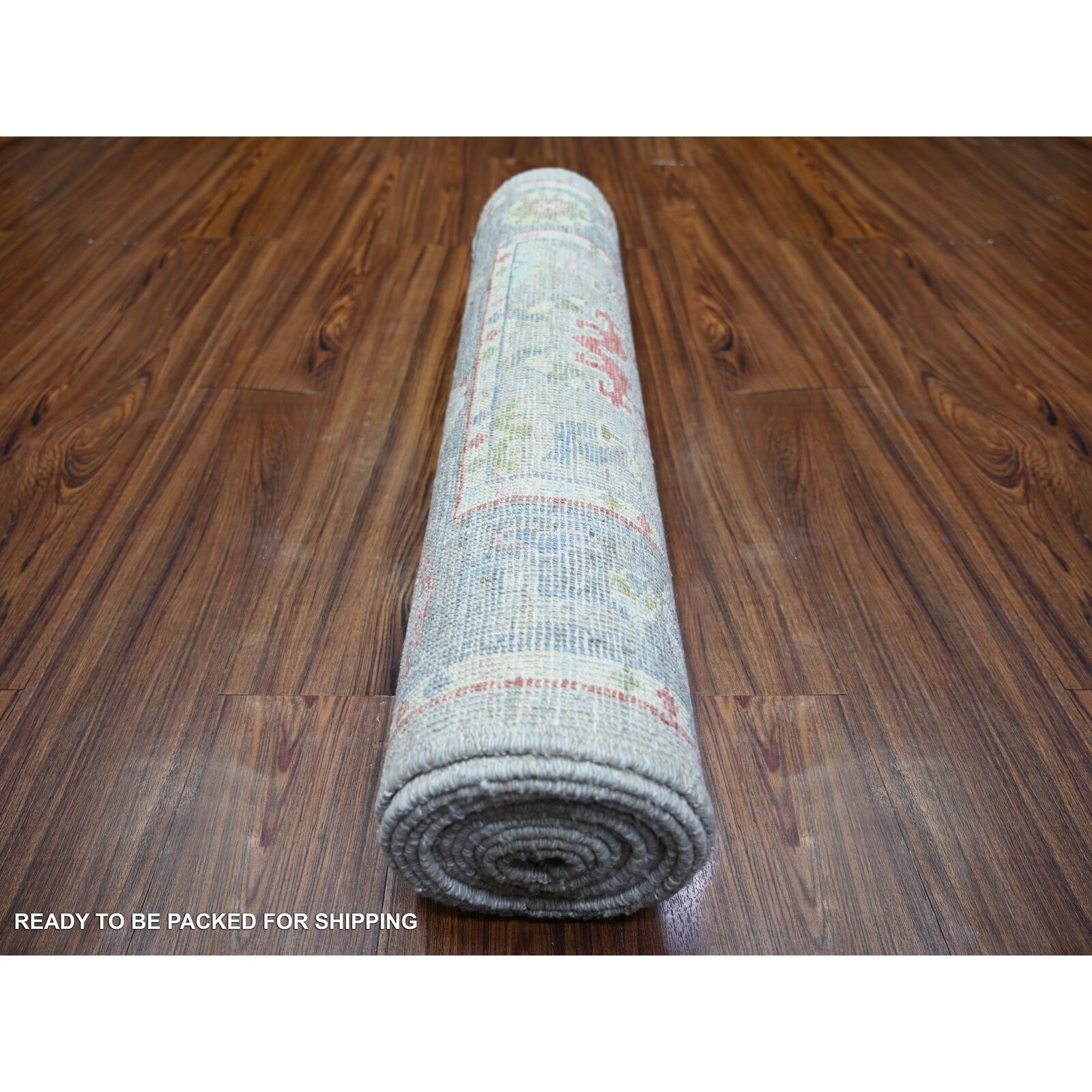 2'9"X13'7" Coin Gray Afghan Angora Oushak Hand Knotted Wool Runner Rug
