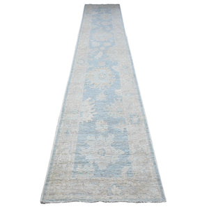 2'9"X15'4" Riviera Blue Afghan Angora Oushak Xl Runner Oriental Rug