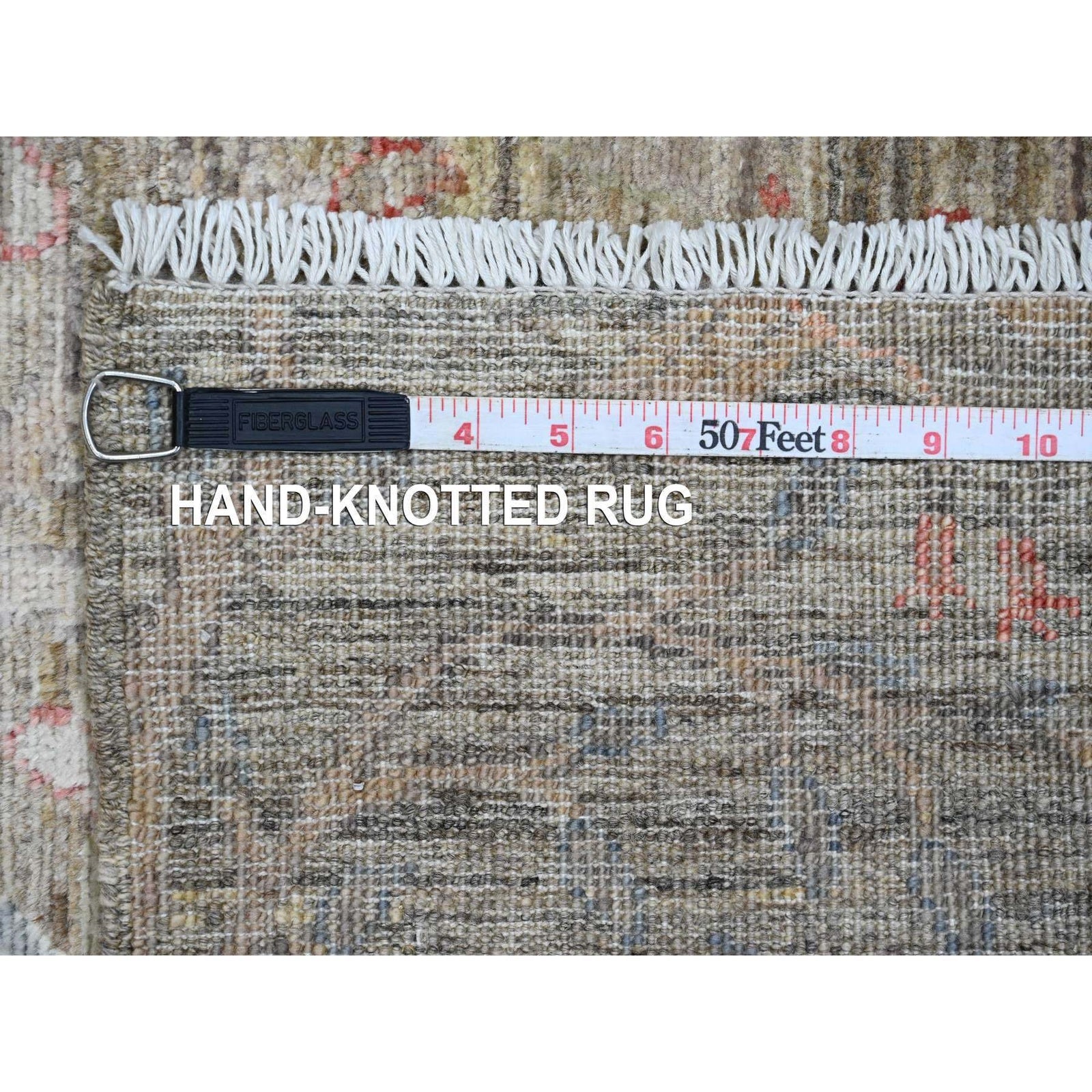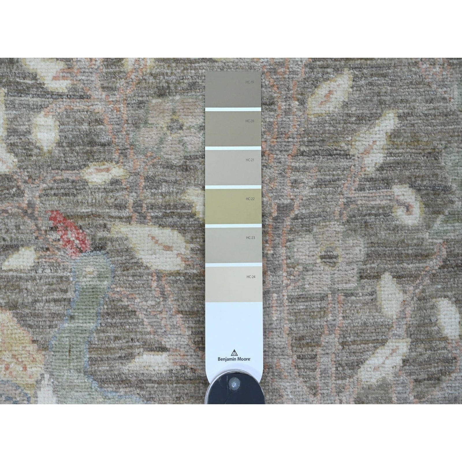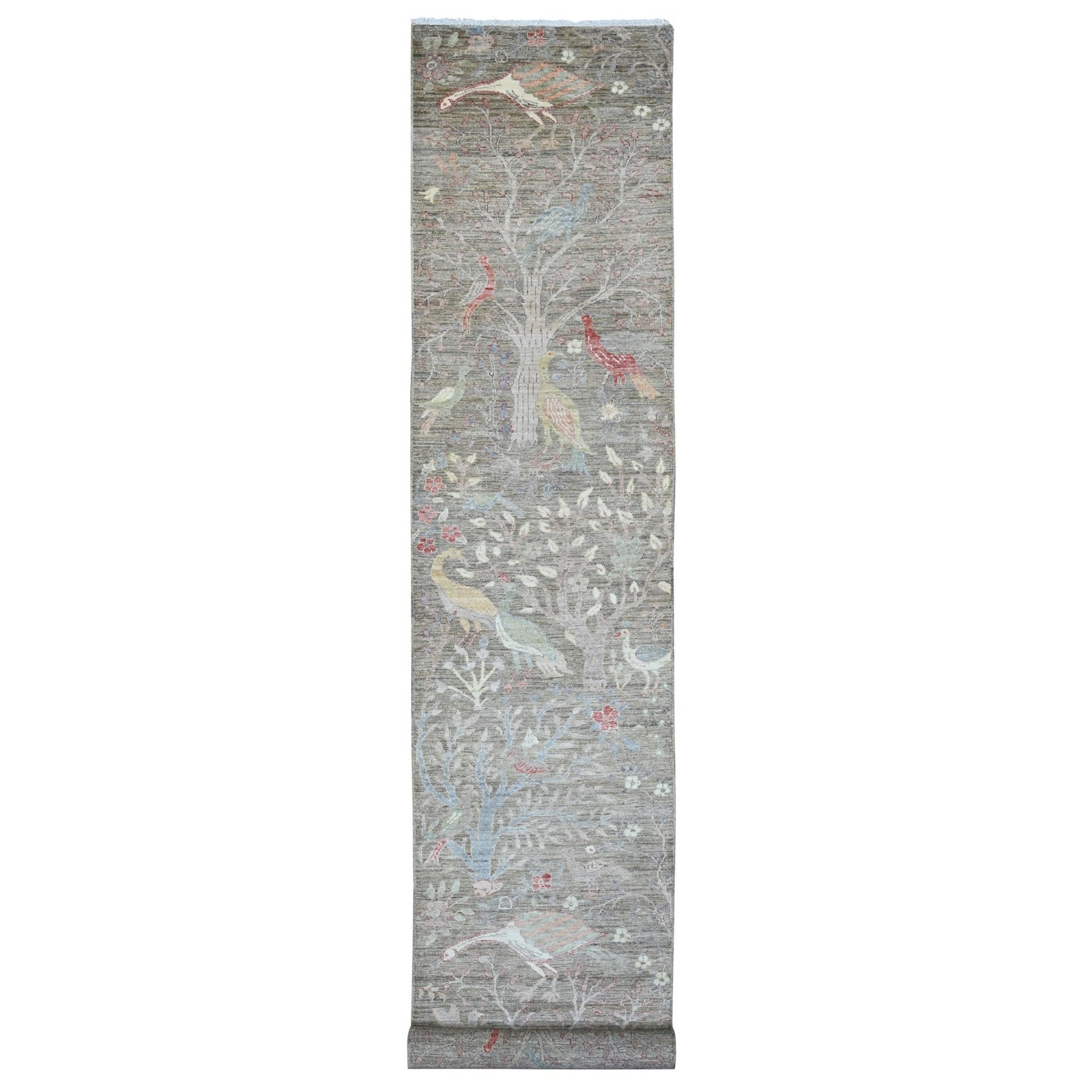 2'9"X15'9" Brown Hand Knotted Peshawar Birds Design Soft Wool Runner Rug