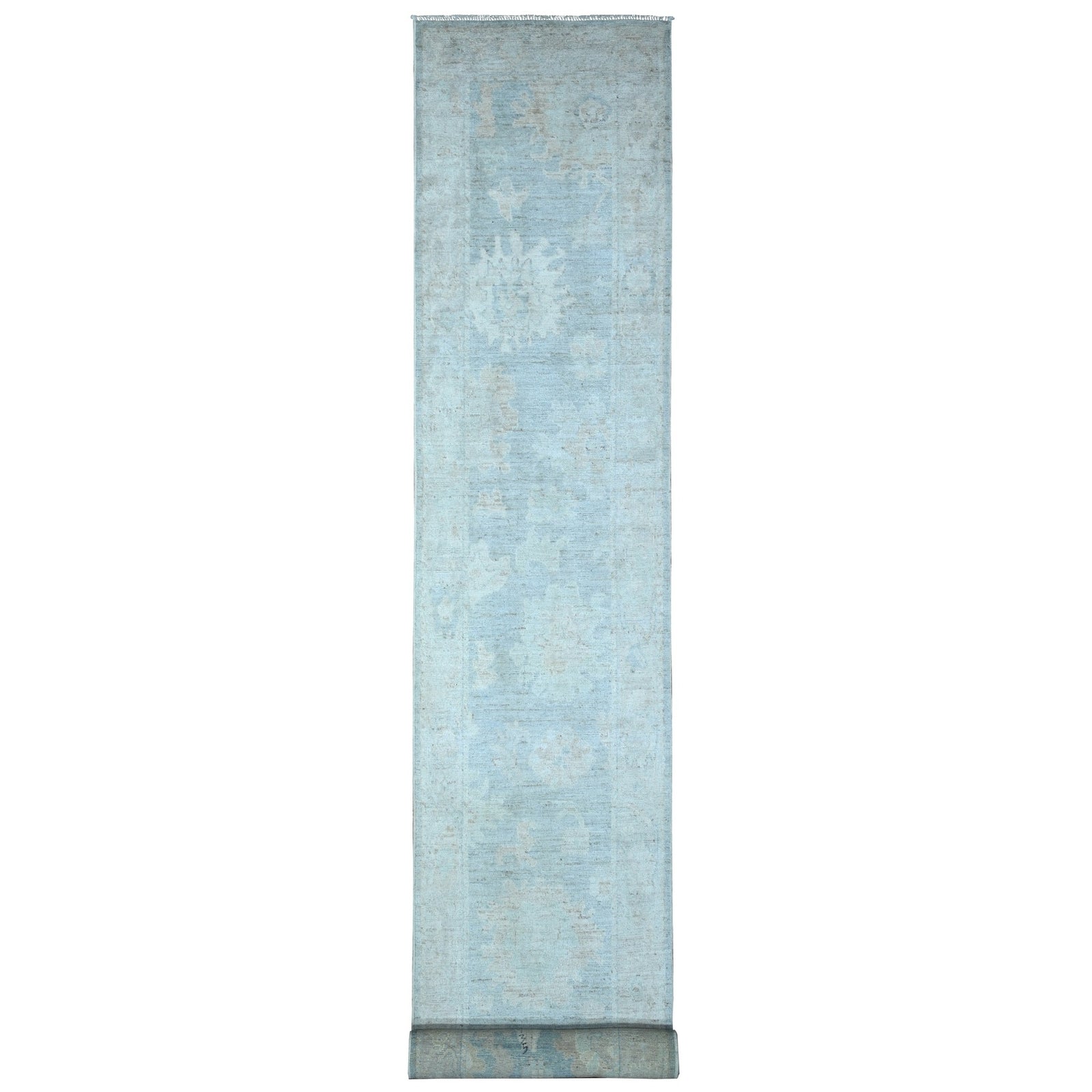2'9"X19'6" Cloud Gray Afghan Angora Oushak Oversized Runner Oriental Rug