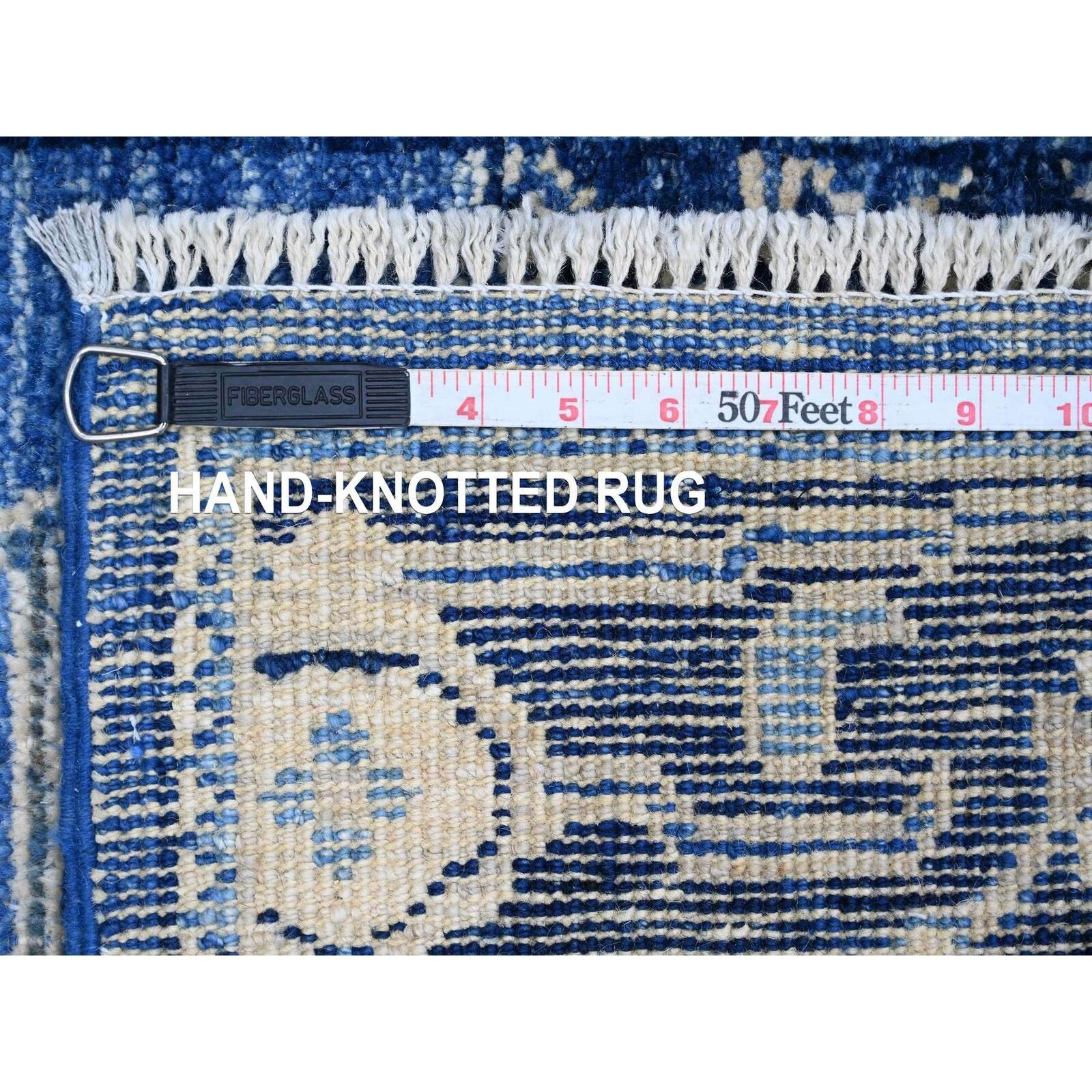 2'9"X19'8" Blue Hand Knotted Angora Oushak Leaf Design Wool Runner Rug