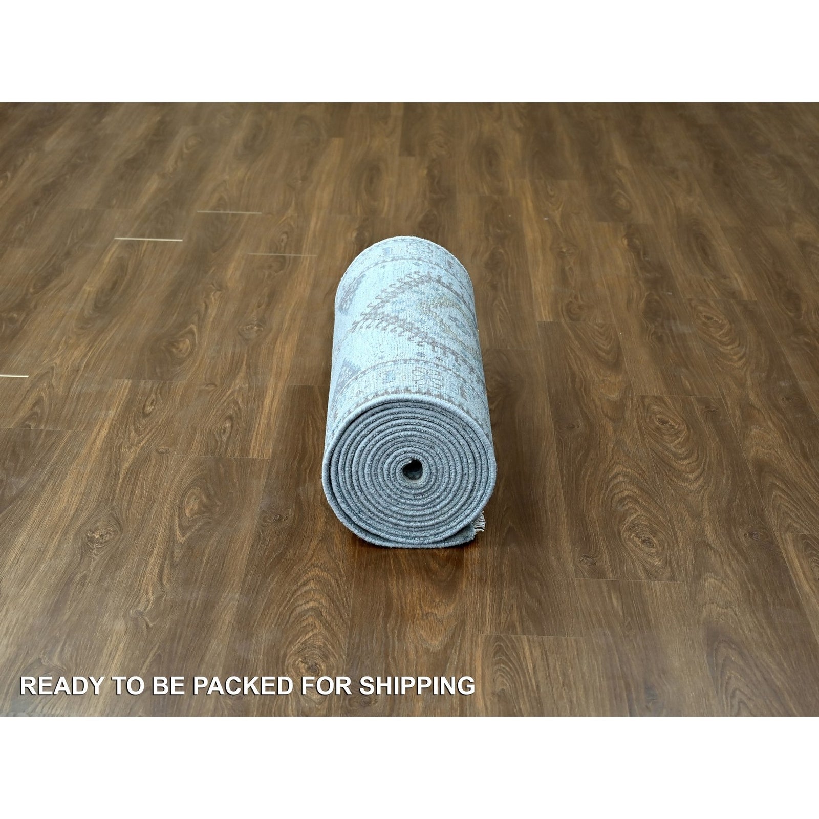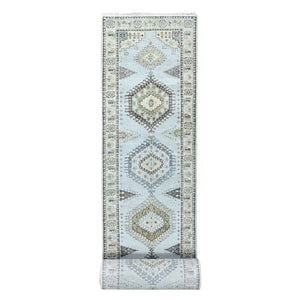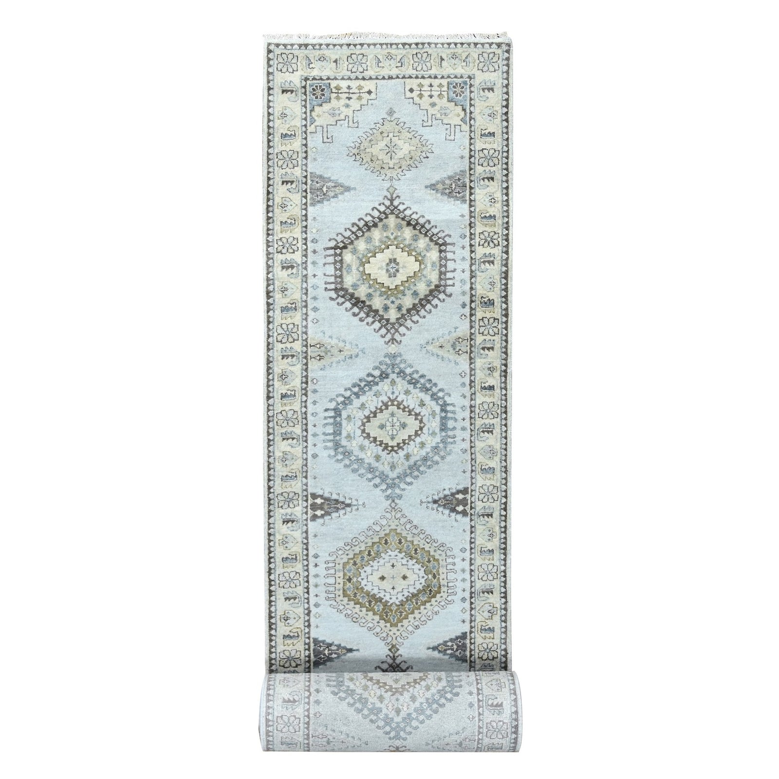 2'9"X21'9" Gray Zoroastrian Village Inspired Wool Hand Knotted Runner Rug