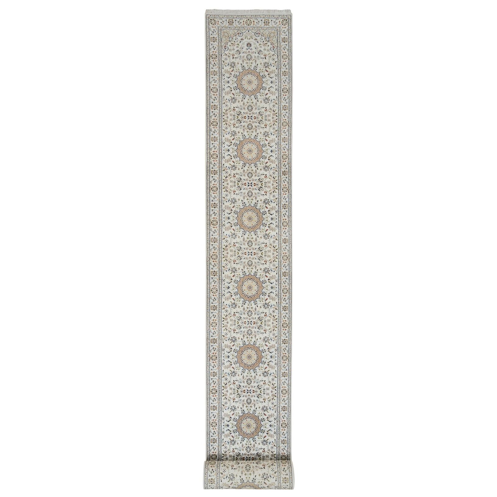 2'9"X26'2" Ivory 250 Kpsi Wool Hand Knotted Nain Xl Runner Rug