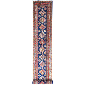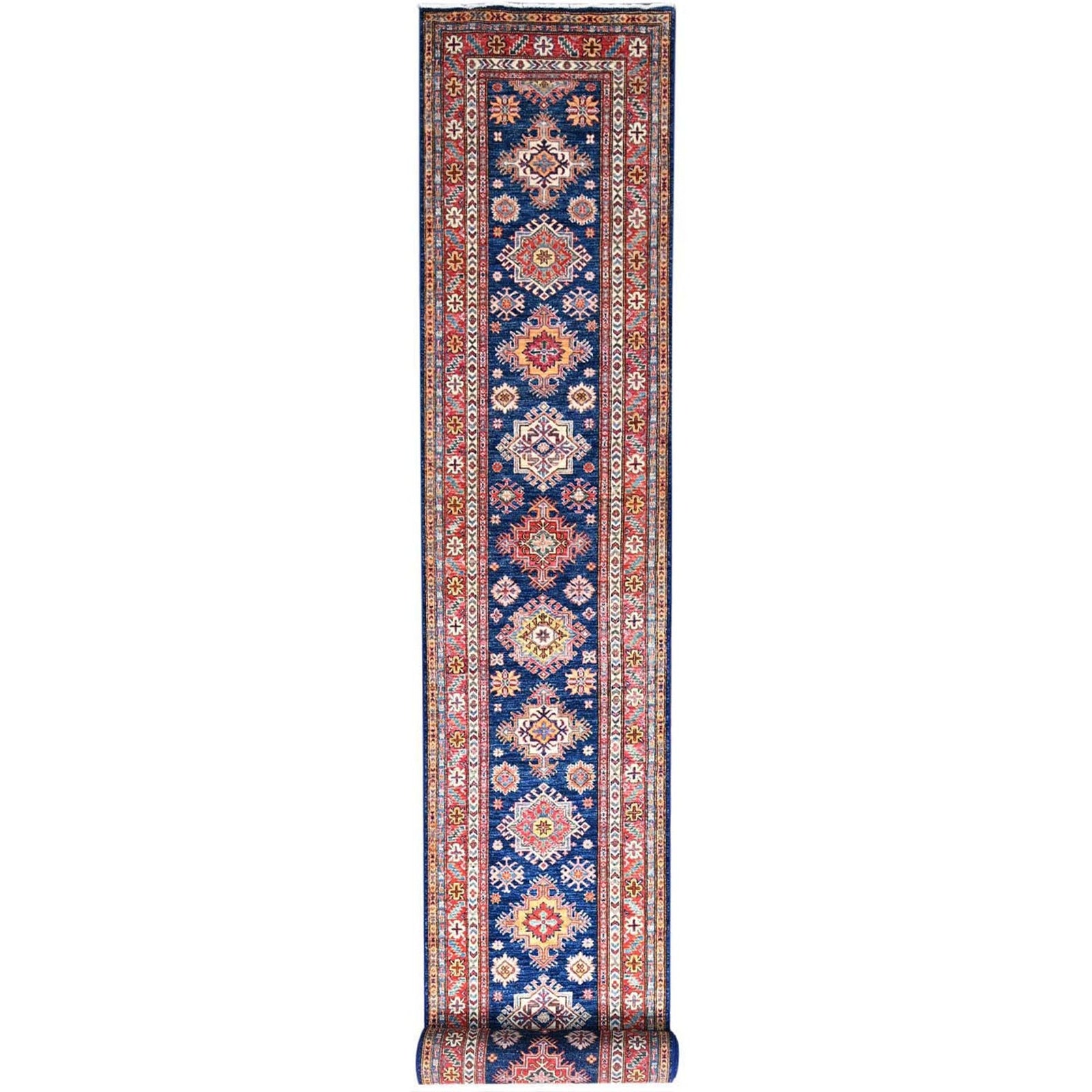 2'9"X26'3" Blue Hand Knotted Super Kazak Wool Xl Runner Rug