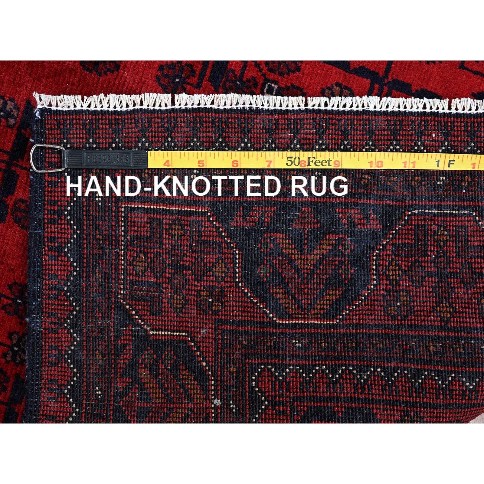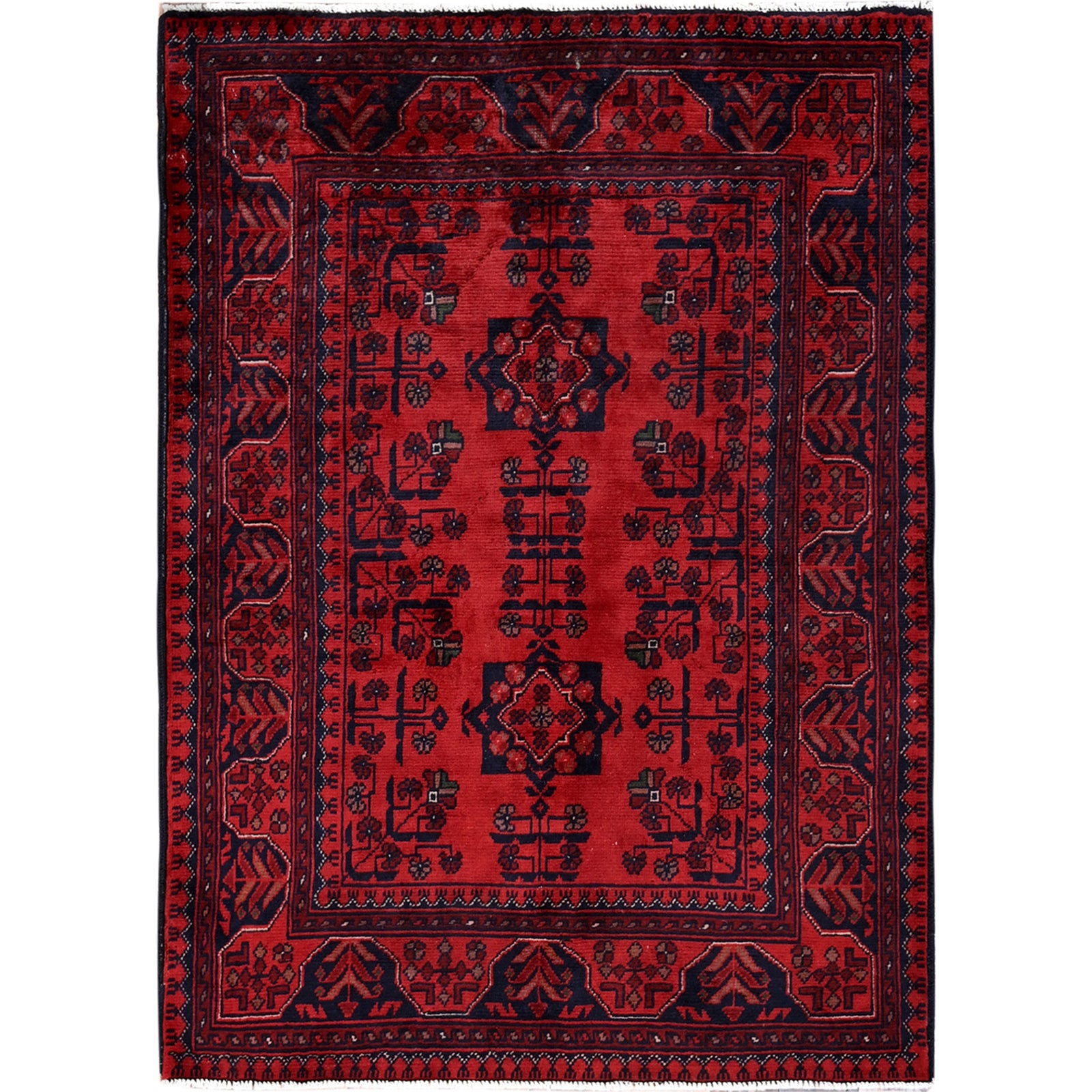 2'9"X3'10" Red Afghan Khamyab Geometric Pattern Soft Wool Hand Knotted Rug