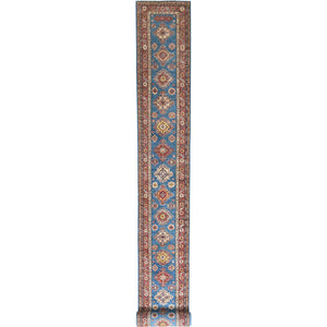 2'9"X40'6" Blue Afghan Super Kazak Wool Hand Knotted Xl Runner Rug
