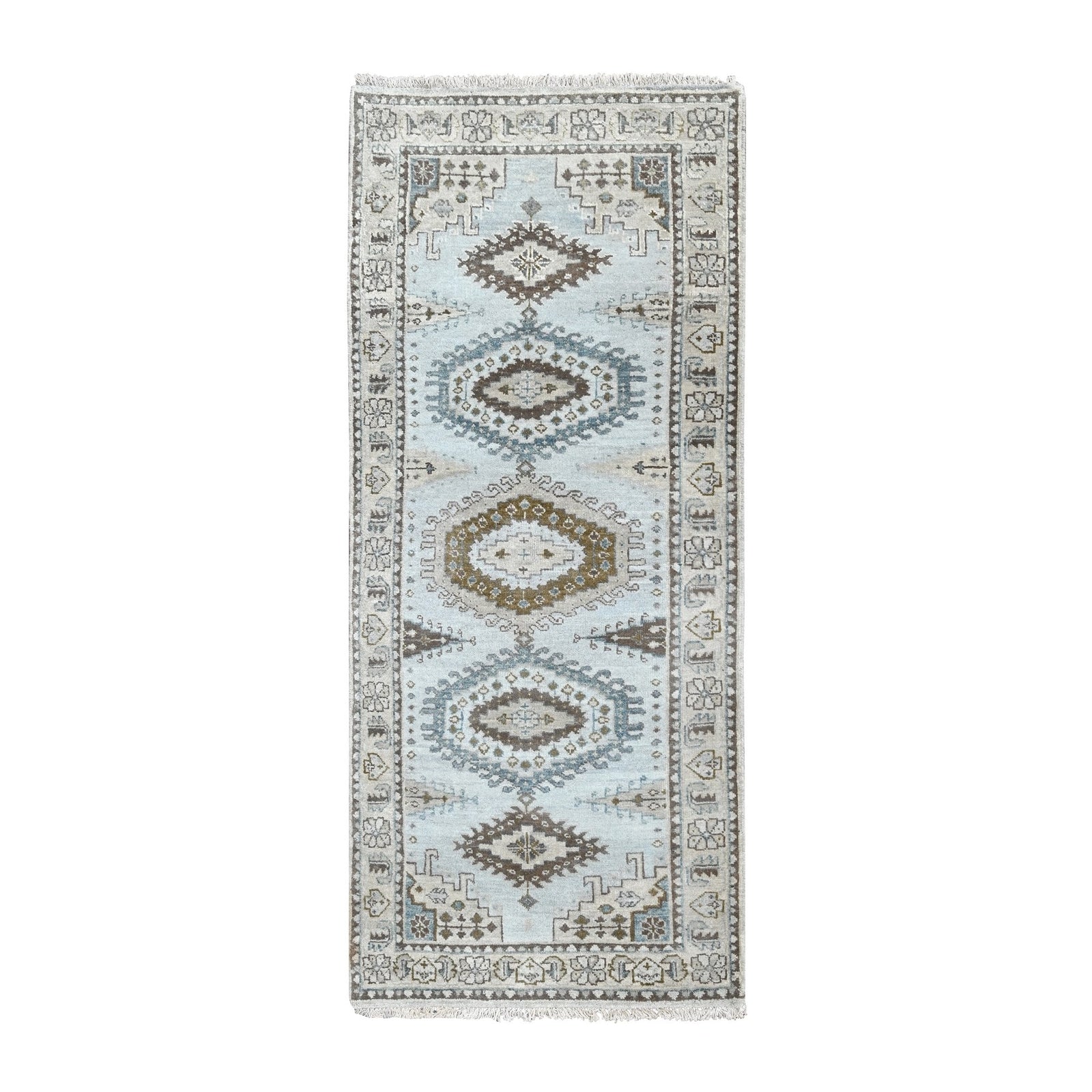 2'9"X6' Krypton Gray Zoroastrian Village Design Oriental Runner Rug