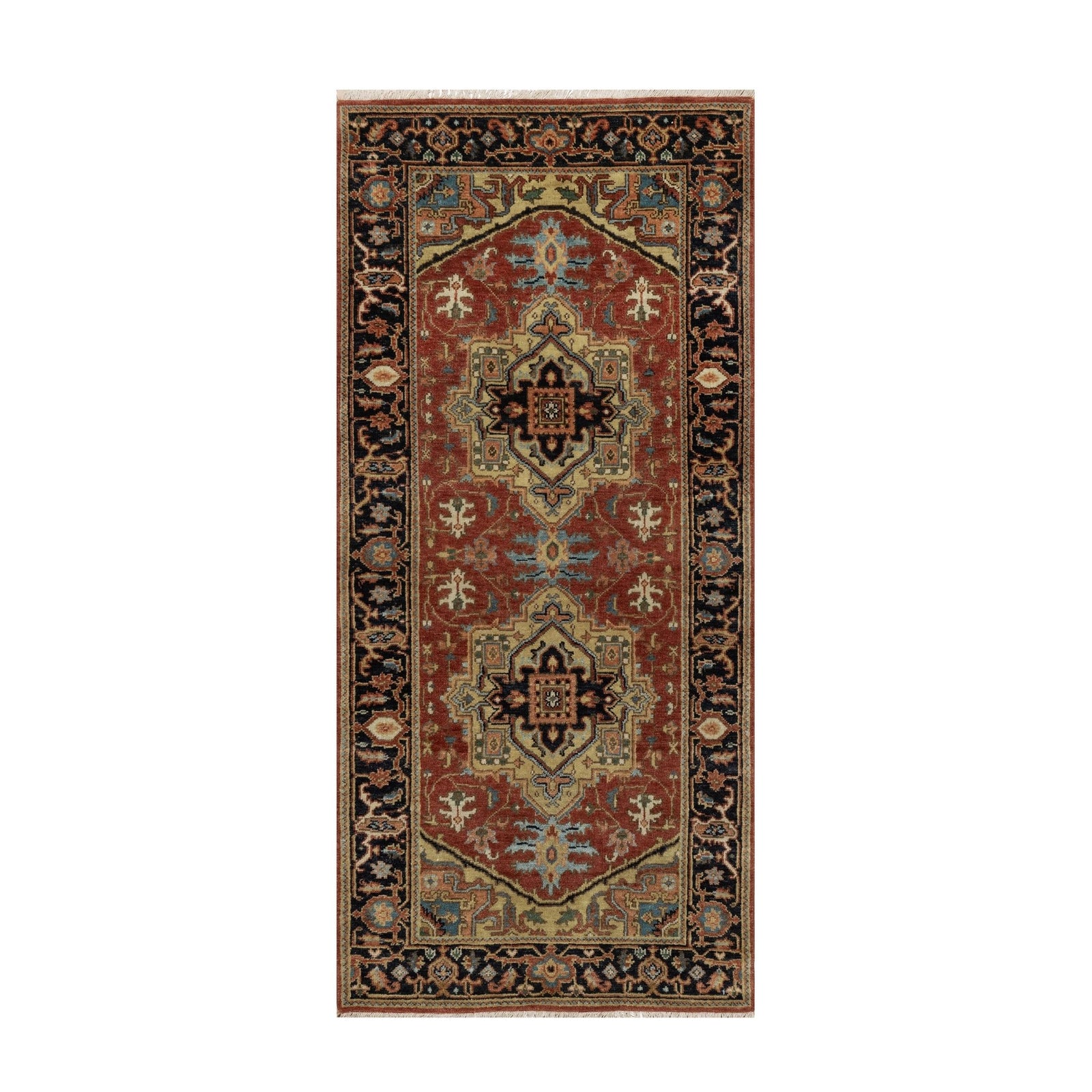 2'9"X6' Red Heris Revival Medallion Design Wool Hand Knotted Runner Rug