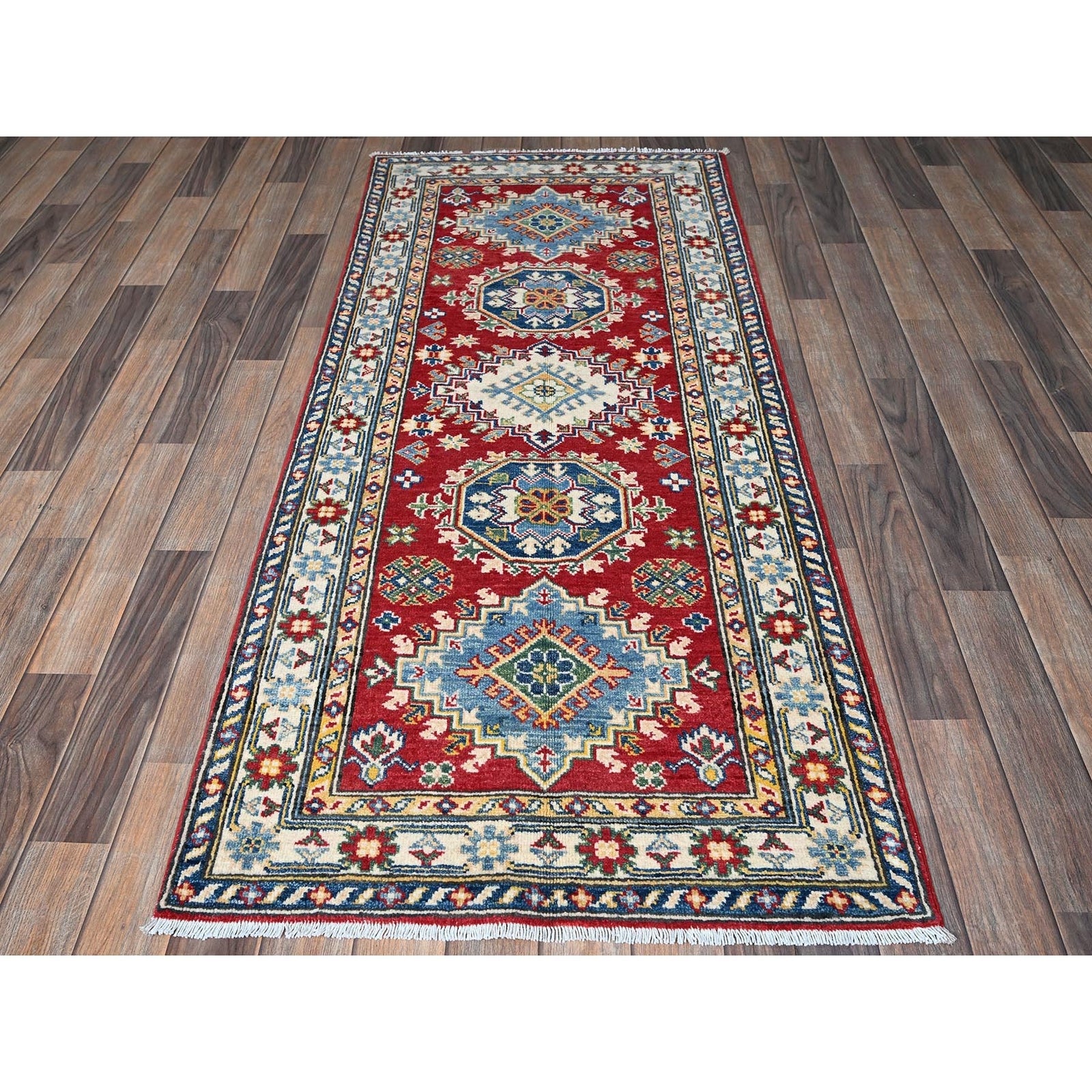 2'9"X6'4" Red Kazak With Medallion Design Hand Knotted Soft Wool Runner Rug