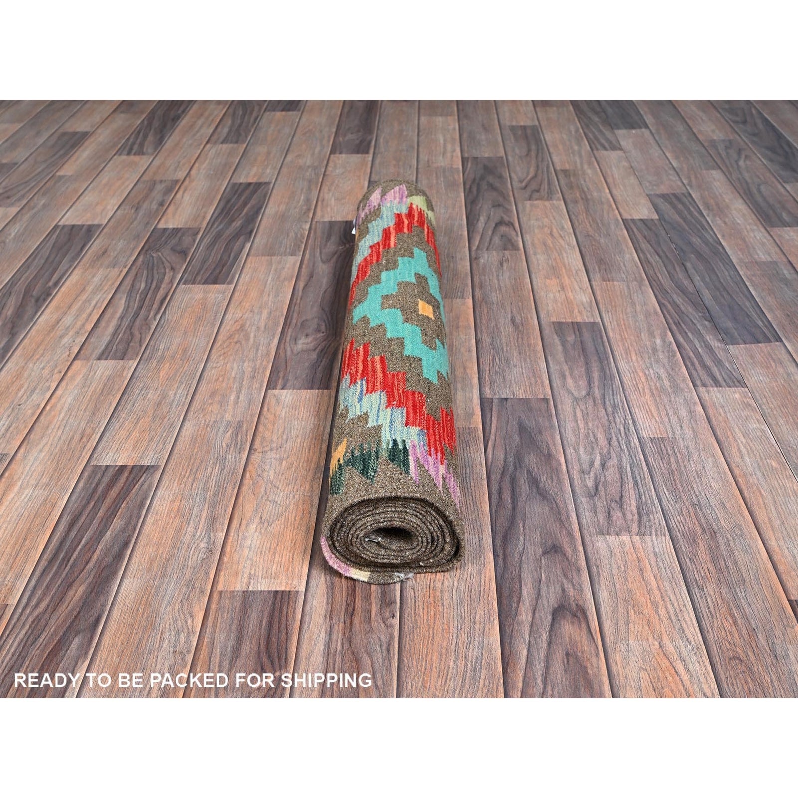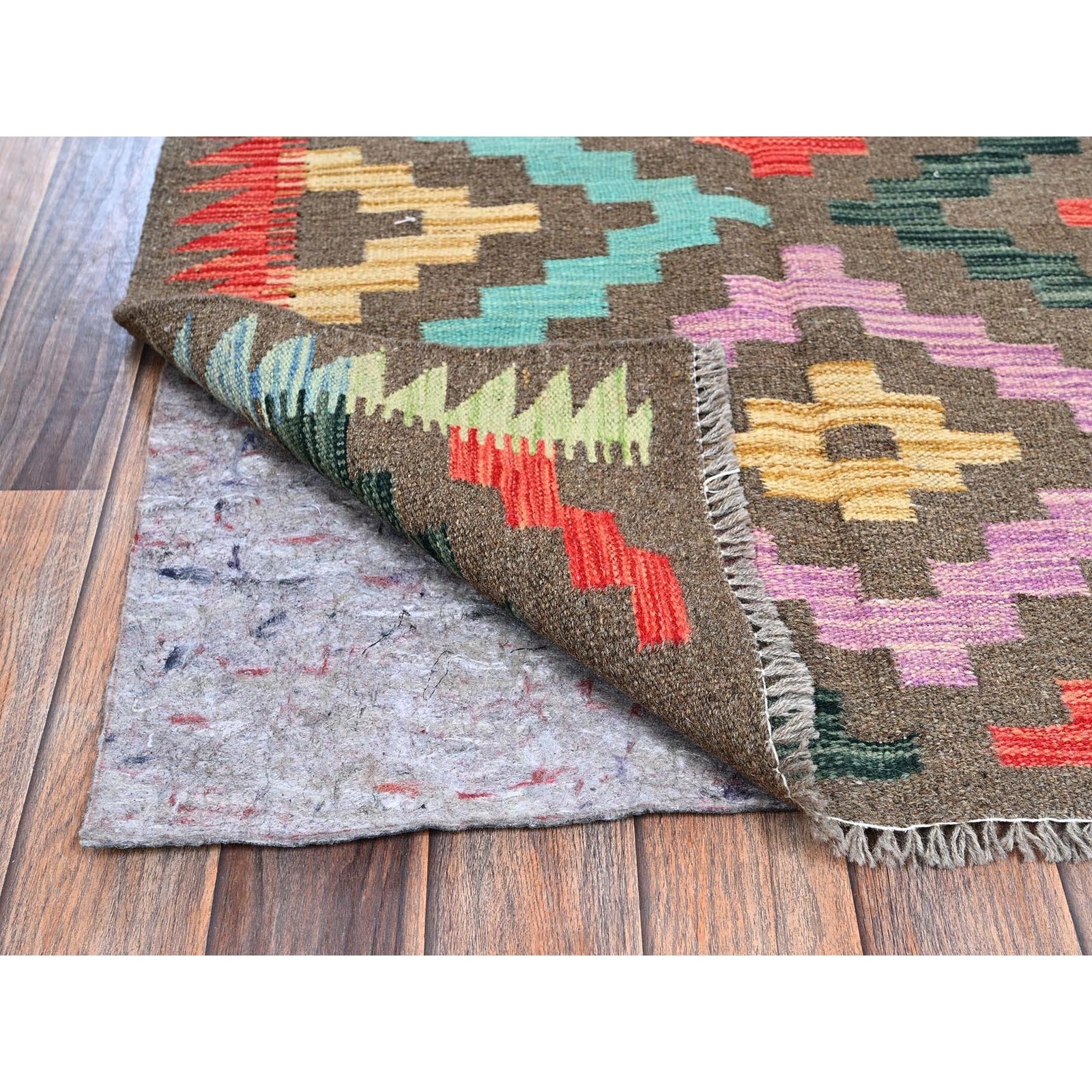2'9"X9'10" Taupe Afghan Kilim Pure Wool Flat Weave Hand Woven Runner Rug
