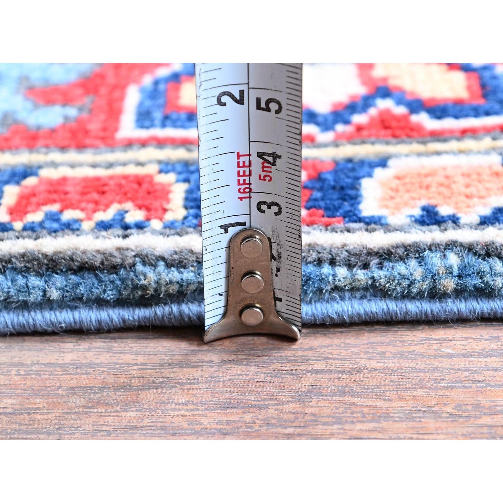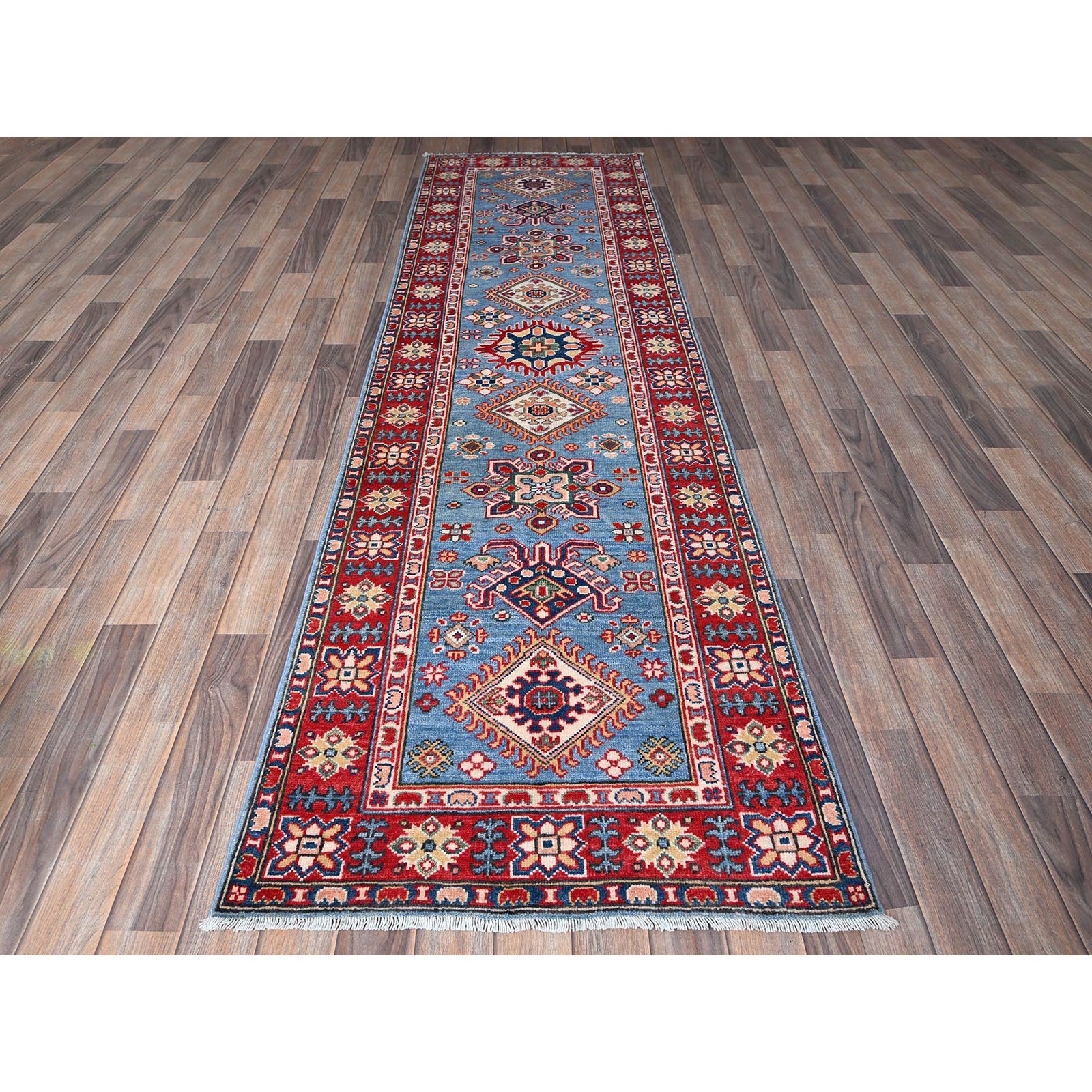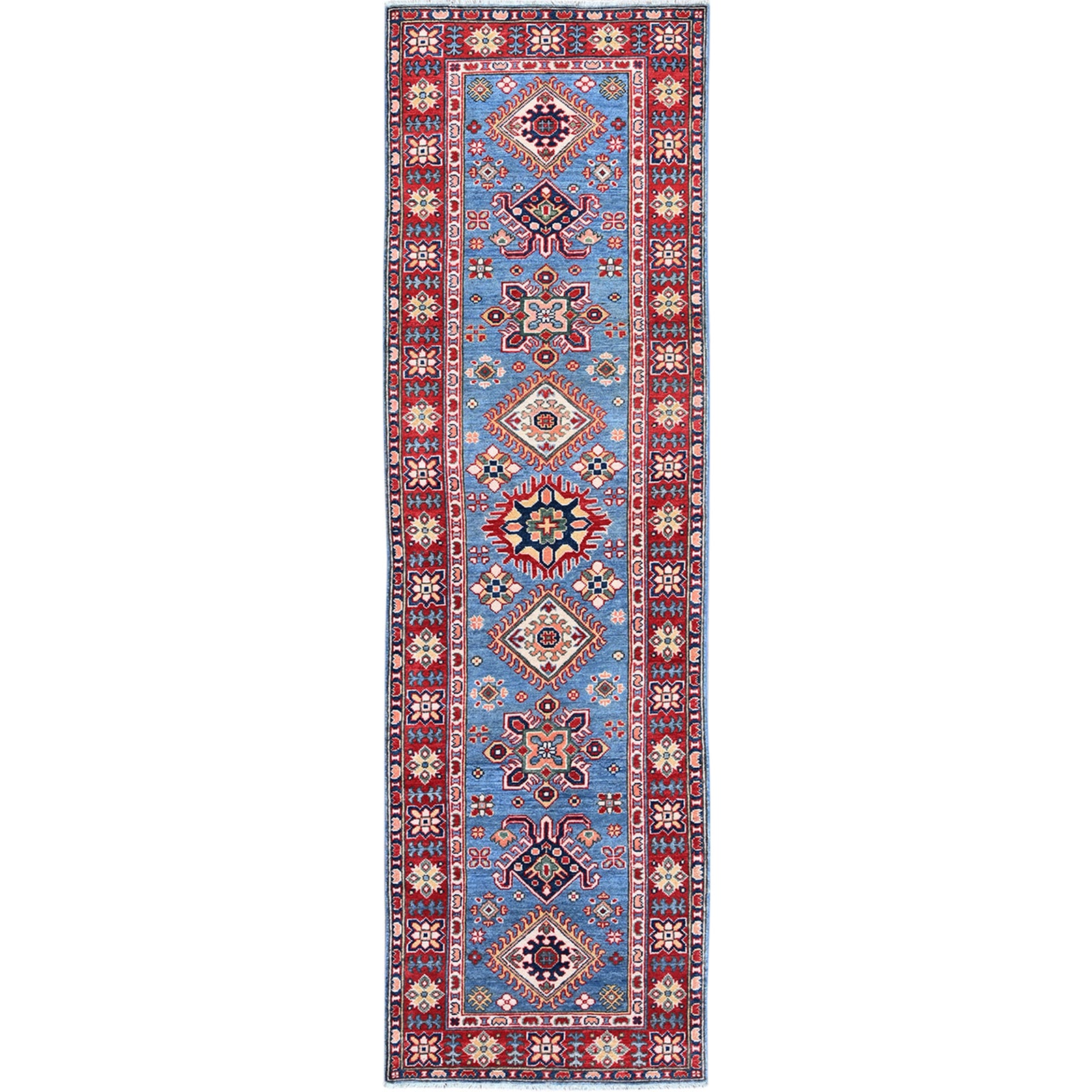 2'9"X9'6" Blue Kazak With Tribal Design Hand Knotted Soft Wool Runner Rug