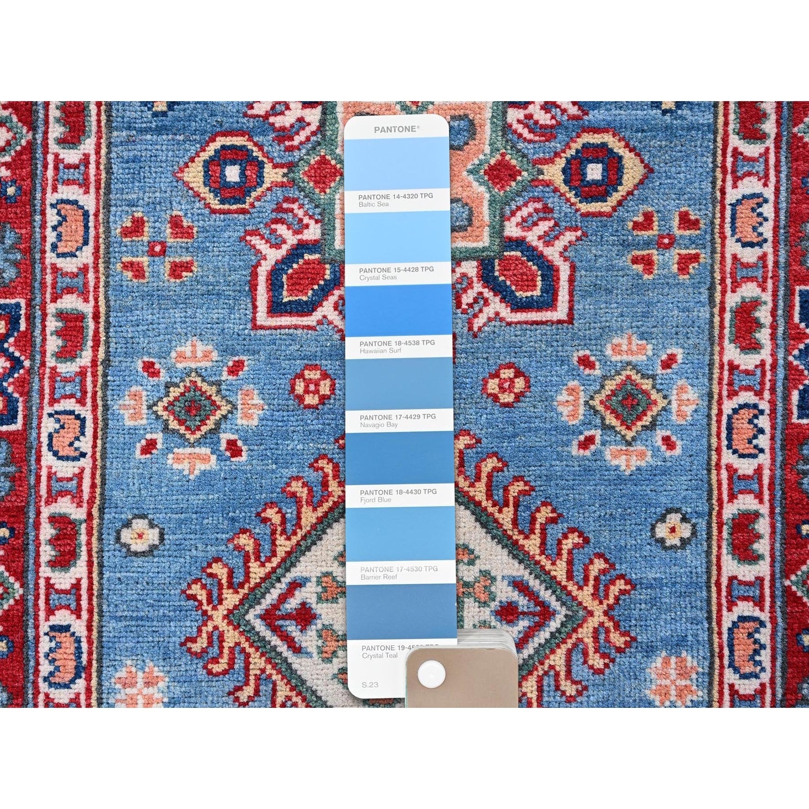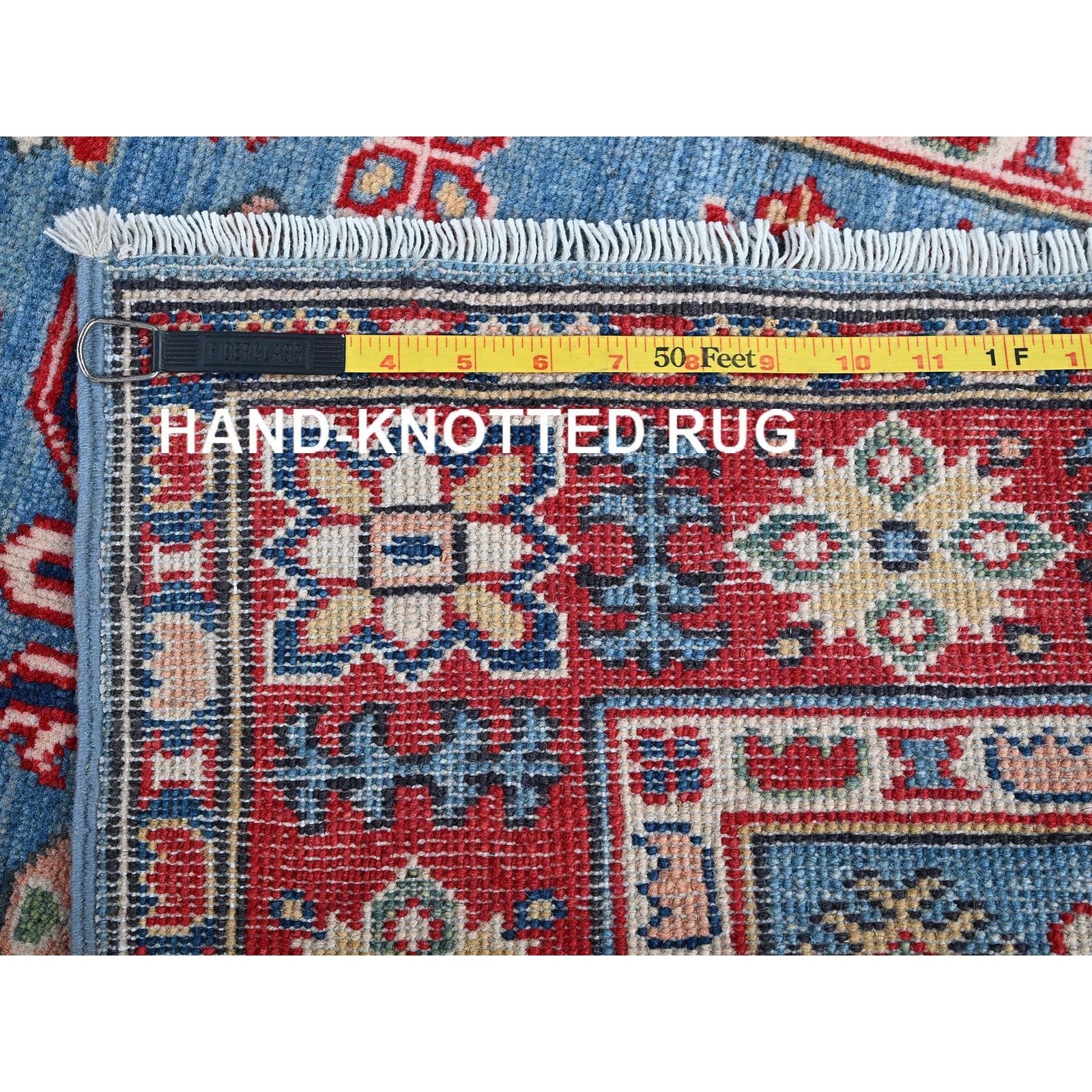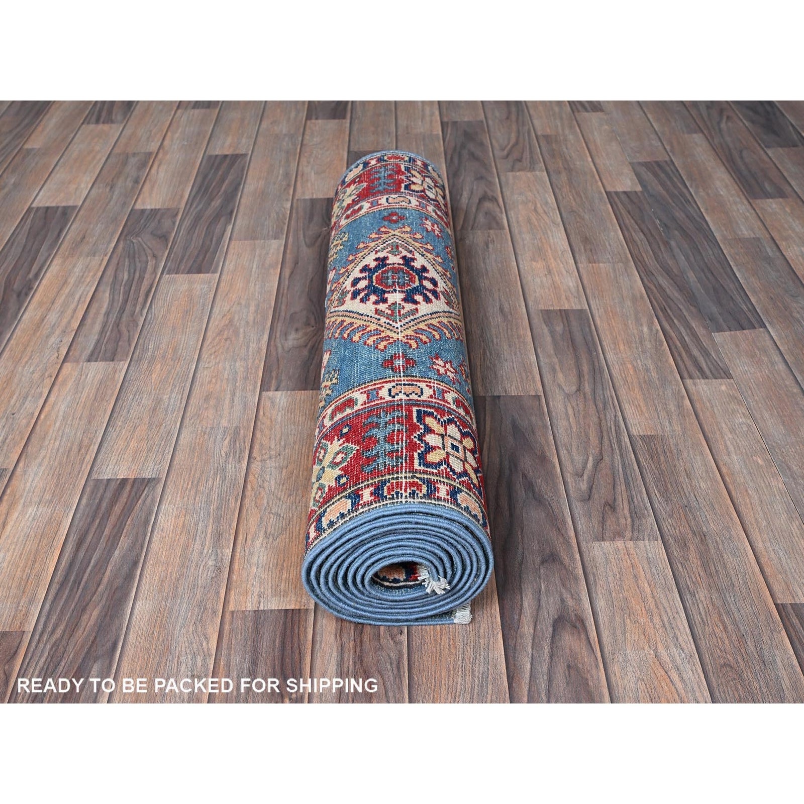 2'9"X9'6" Blue Kazak With Tribal Design Hand Knotted Soft Wool Runner Rug