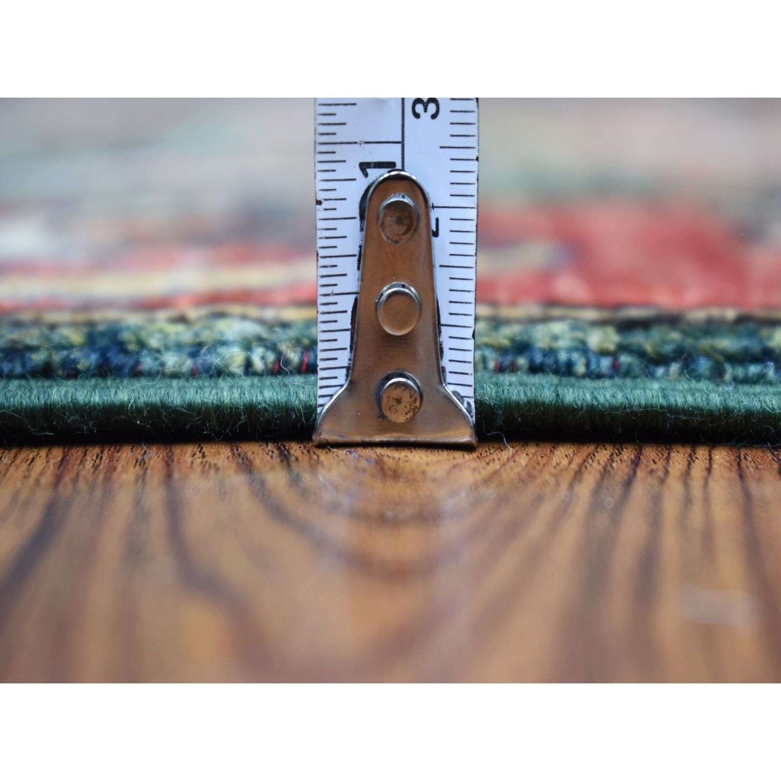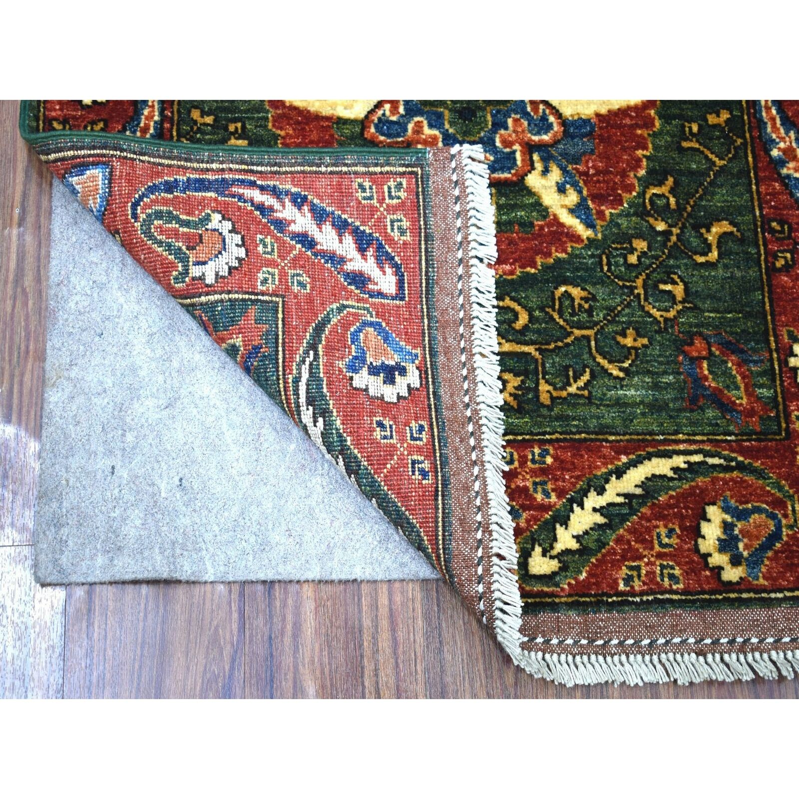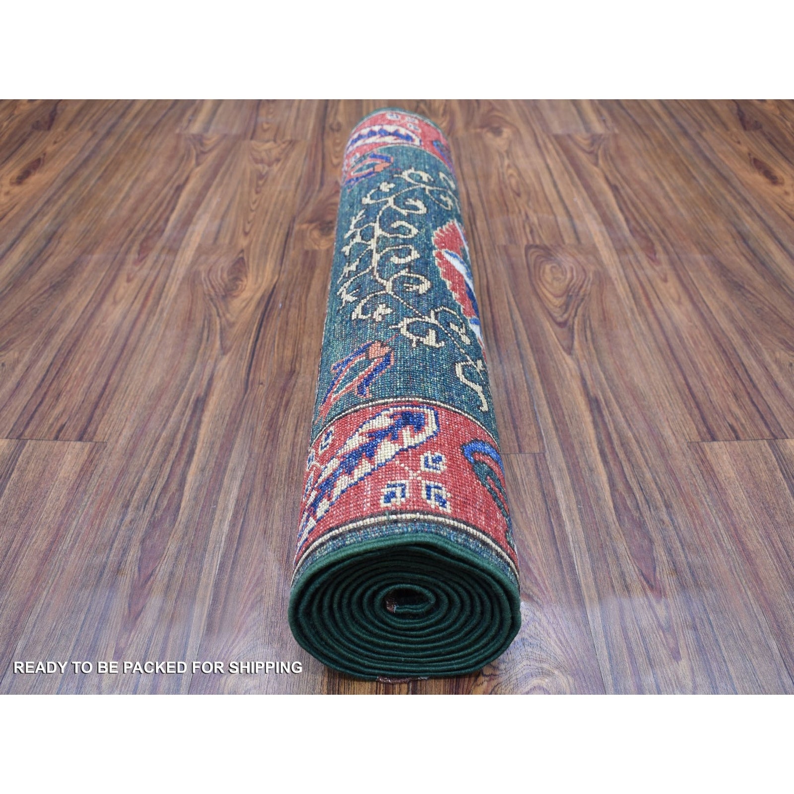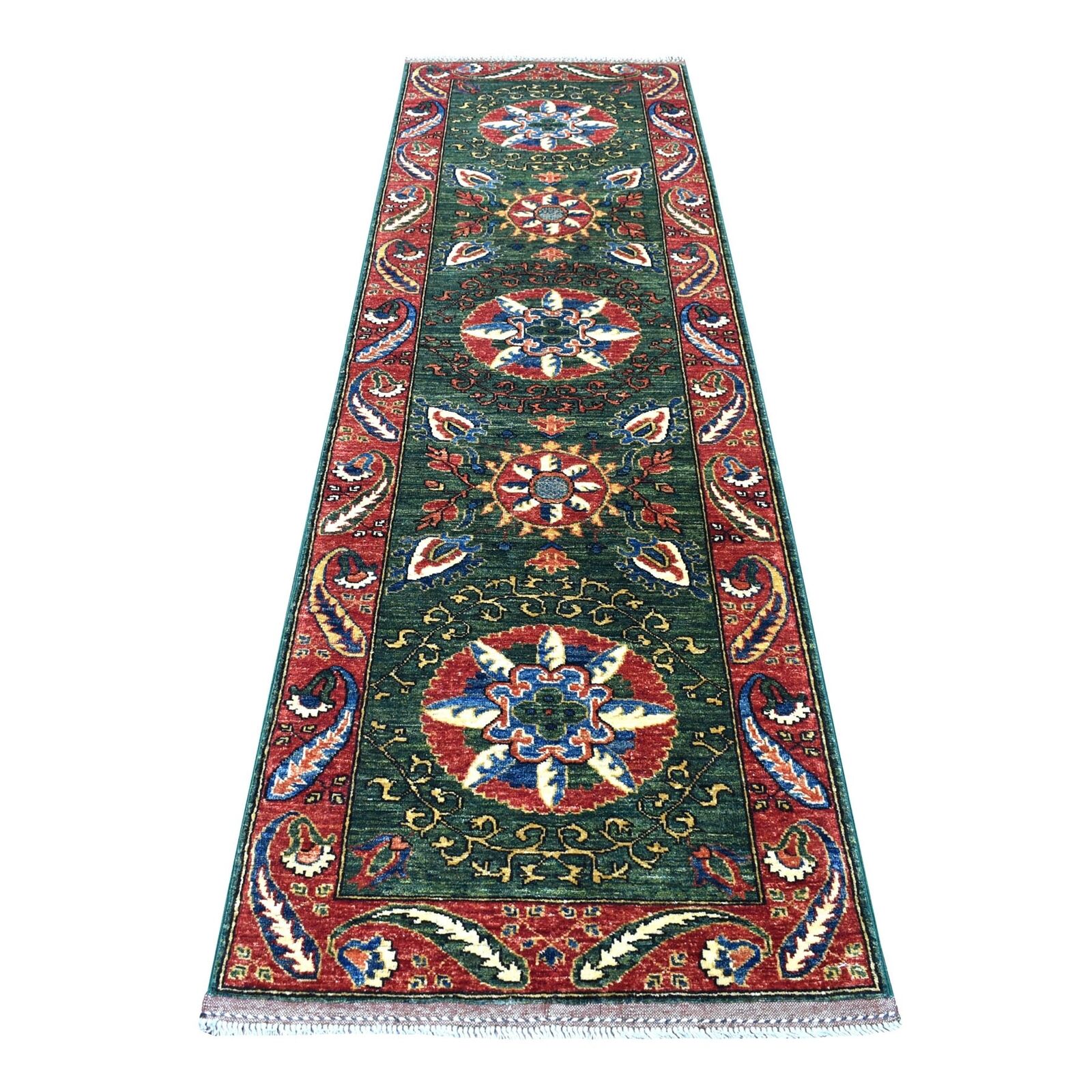 2'9"X9'7" Hand Knotted Green Afghan Turkoman Ersari Tribal Design Rug