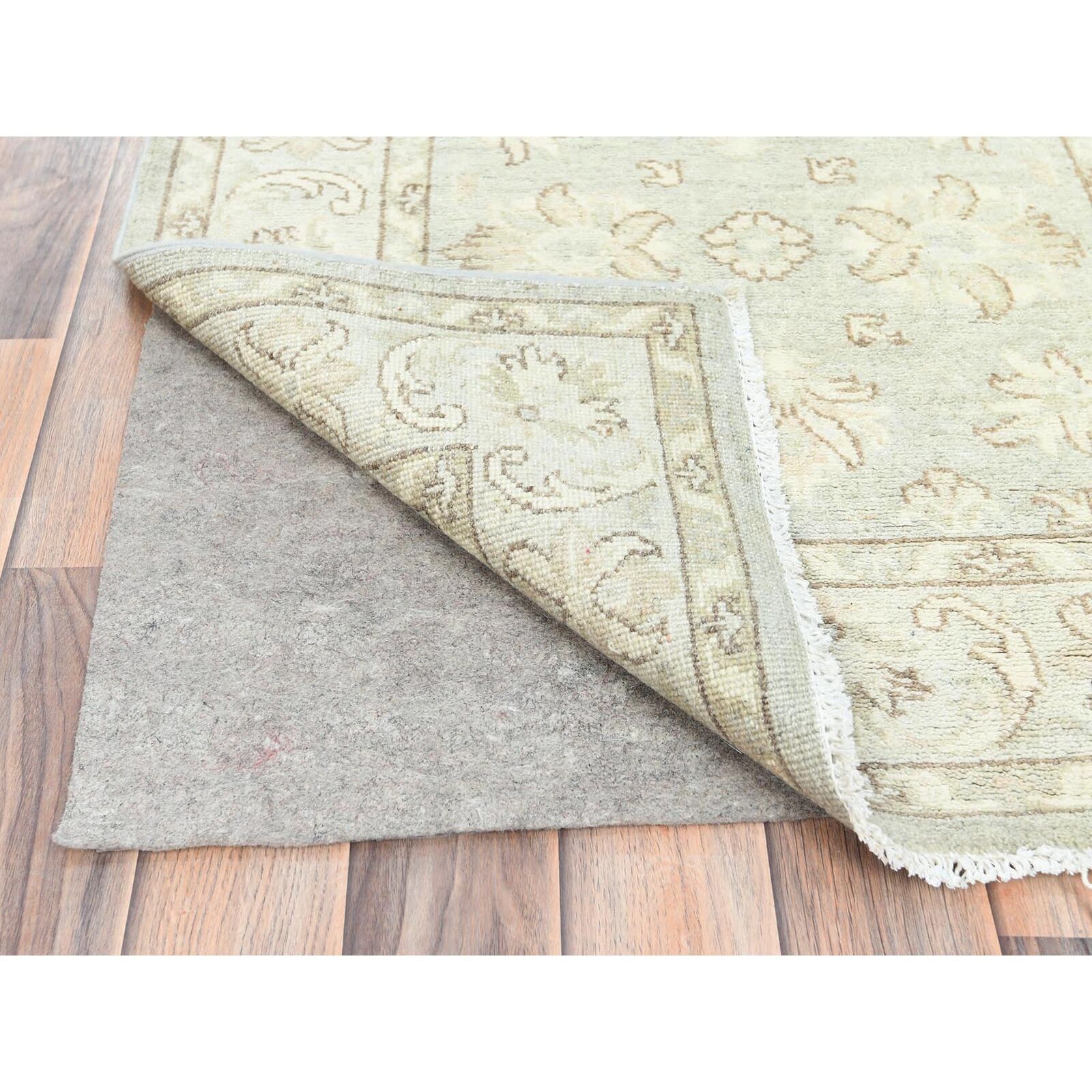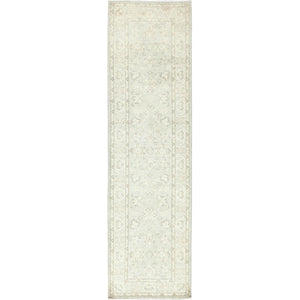 2'9"X9'7" Ivory Hand Knotted Afghan Stone Washed Peshawar Wool Runner Rug