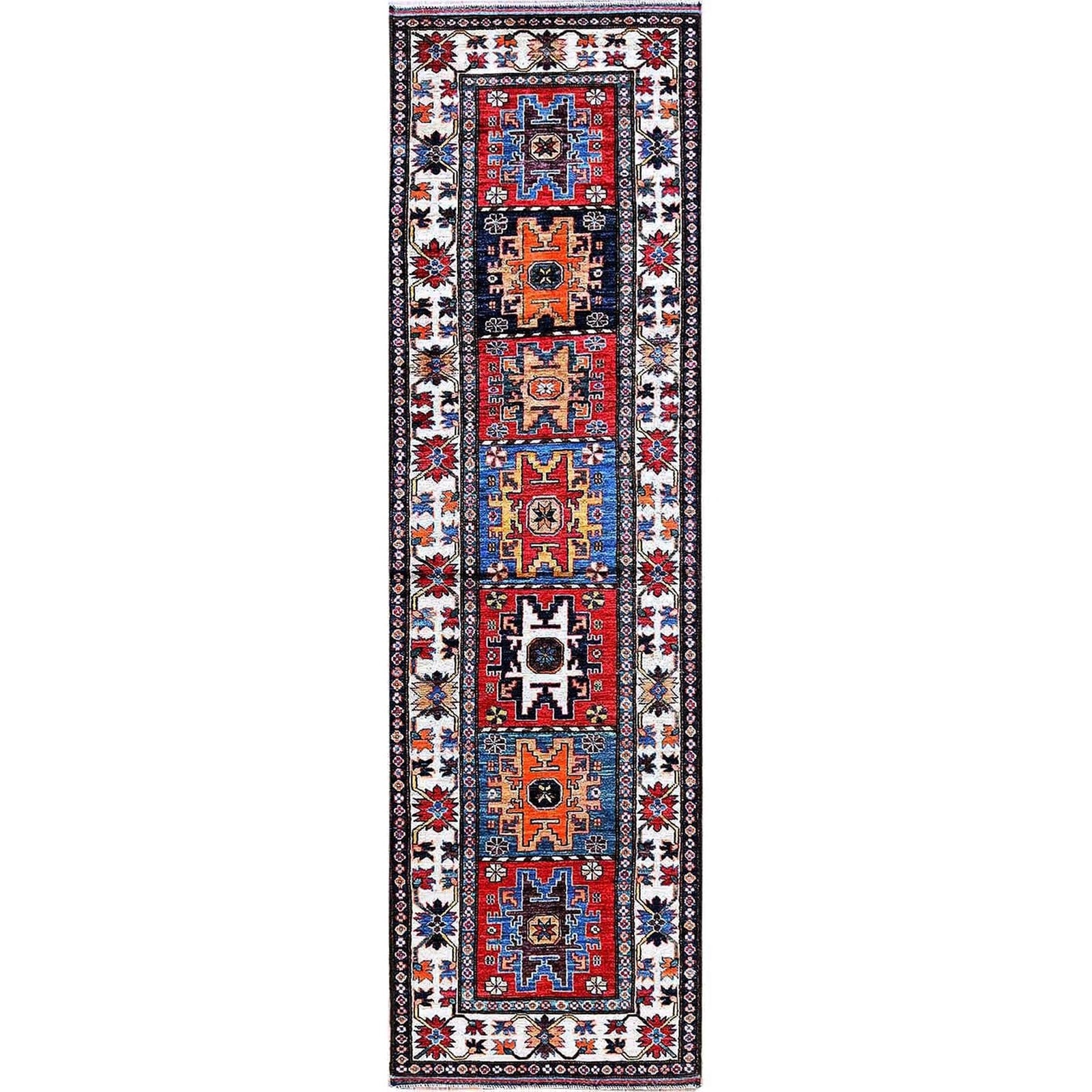 2'9"X9'8" Colorful Caucasian Design Revival Wool Hand Knotted Runner Rug