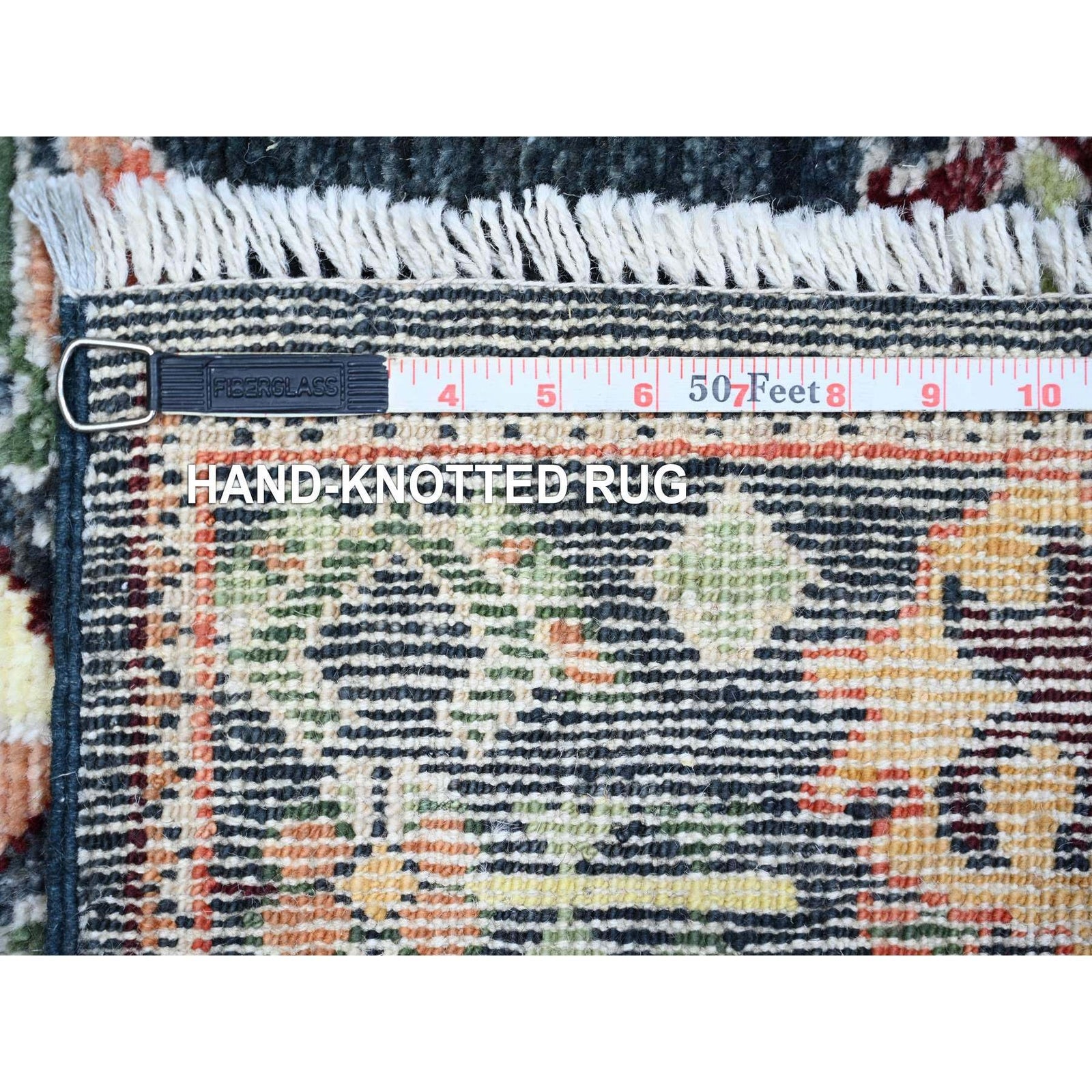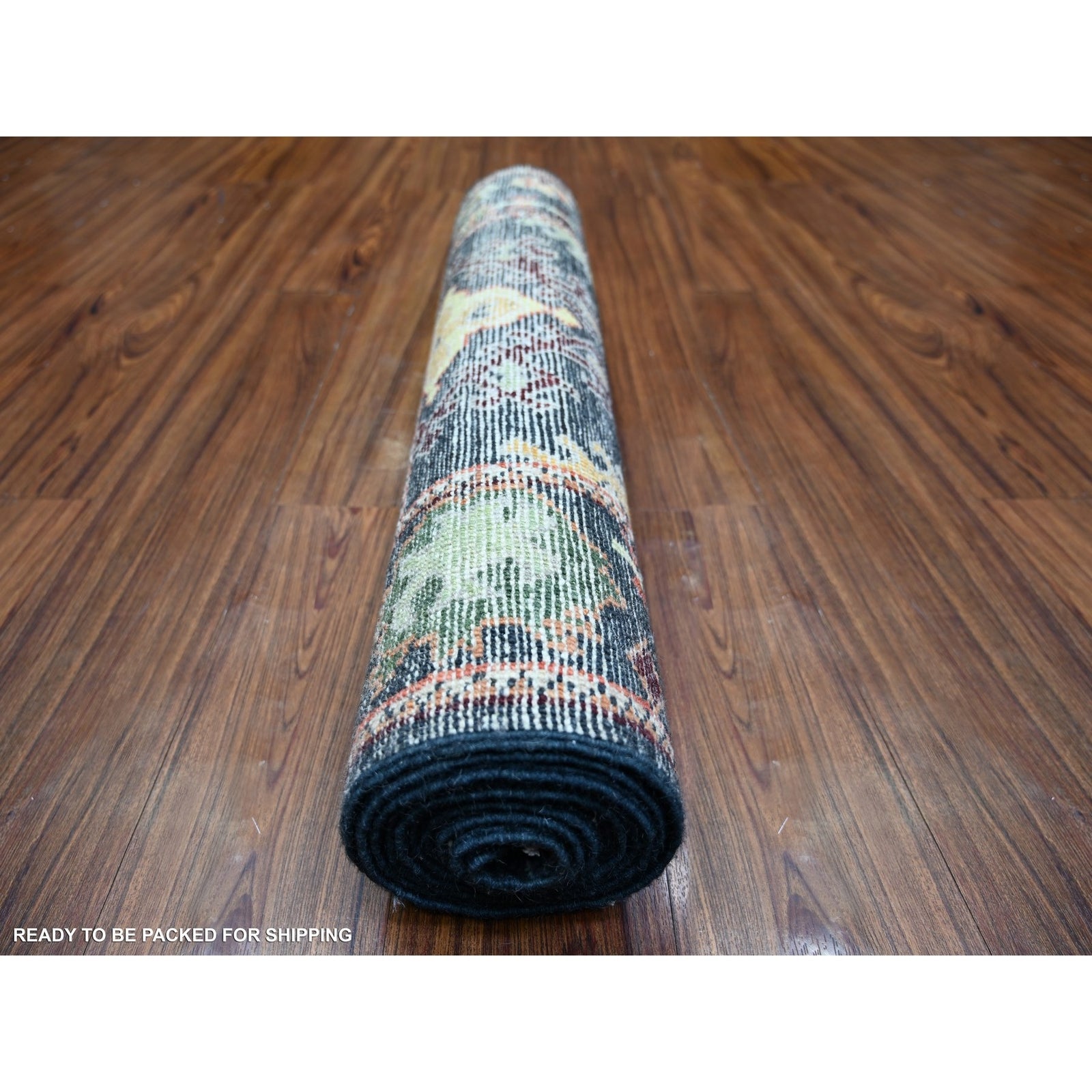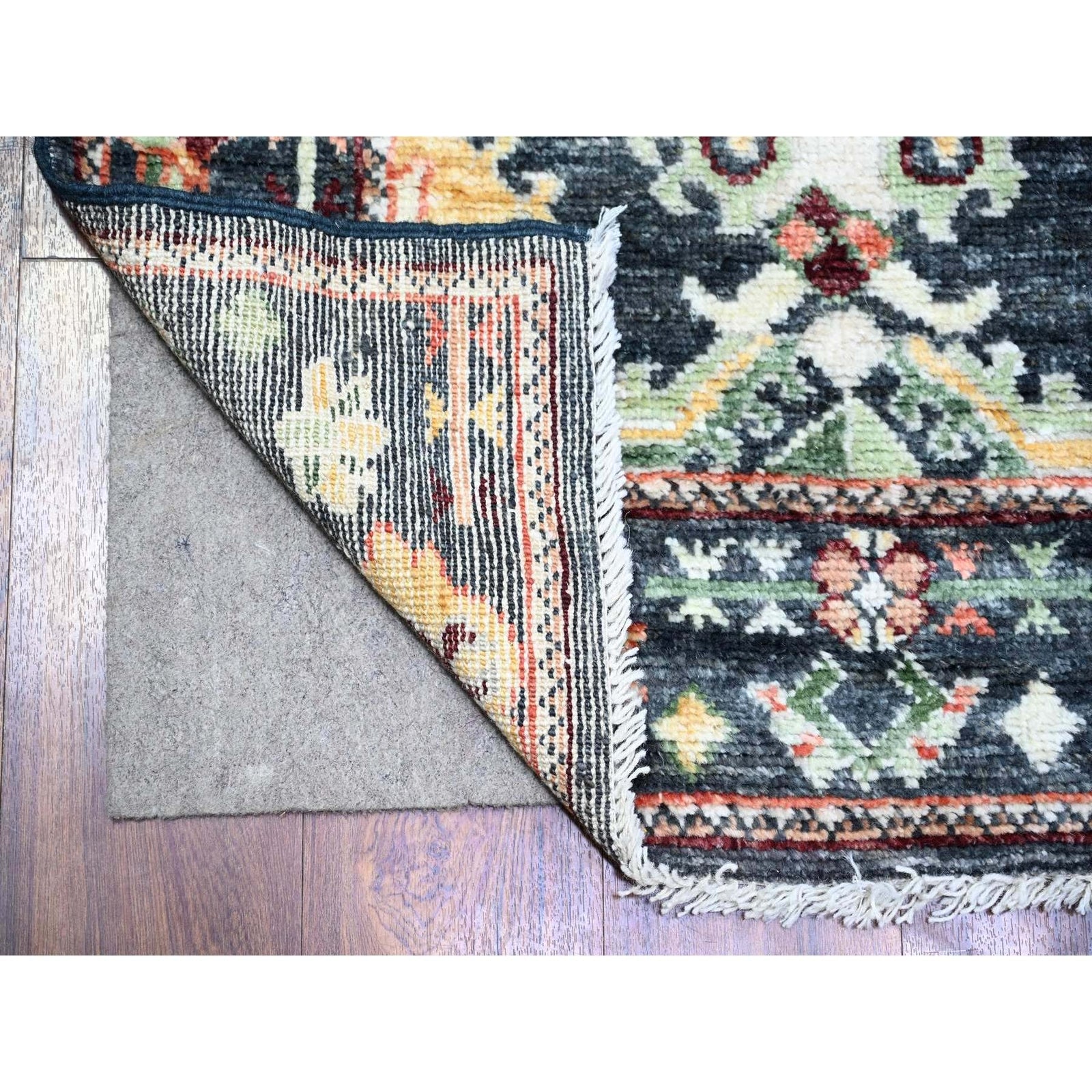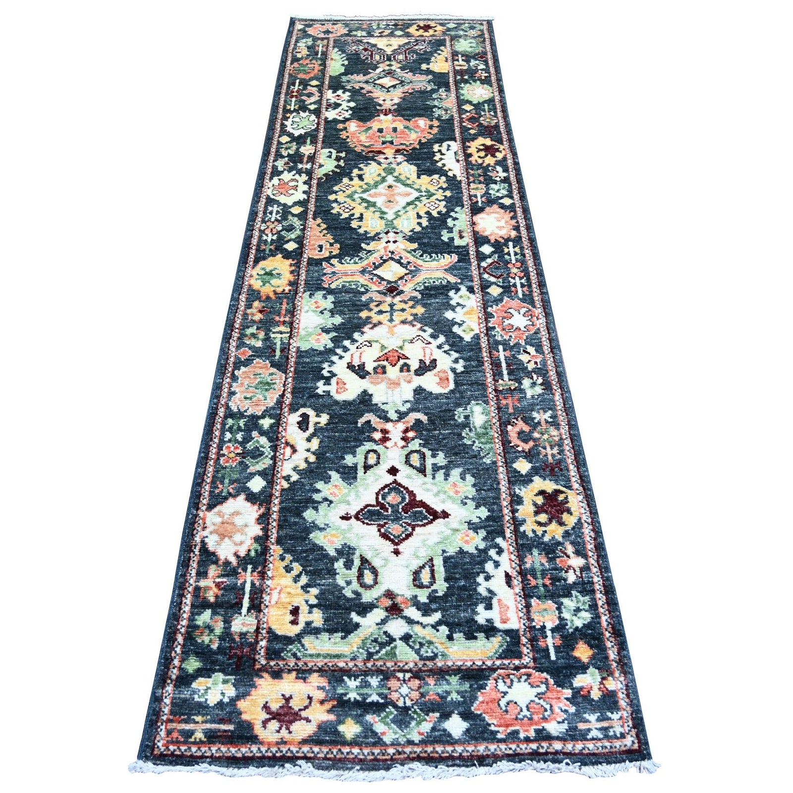 2'9"X9'9" True Black Wool Hand Knotted Afghan Angora Oushak Runner Rug
