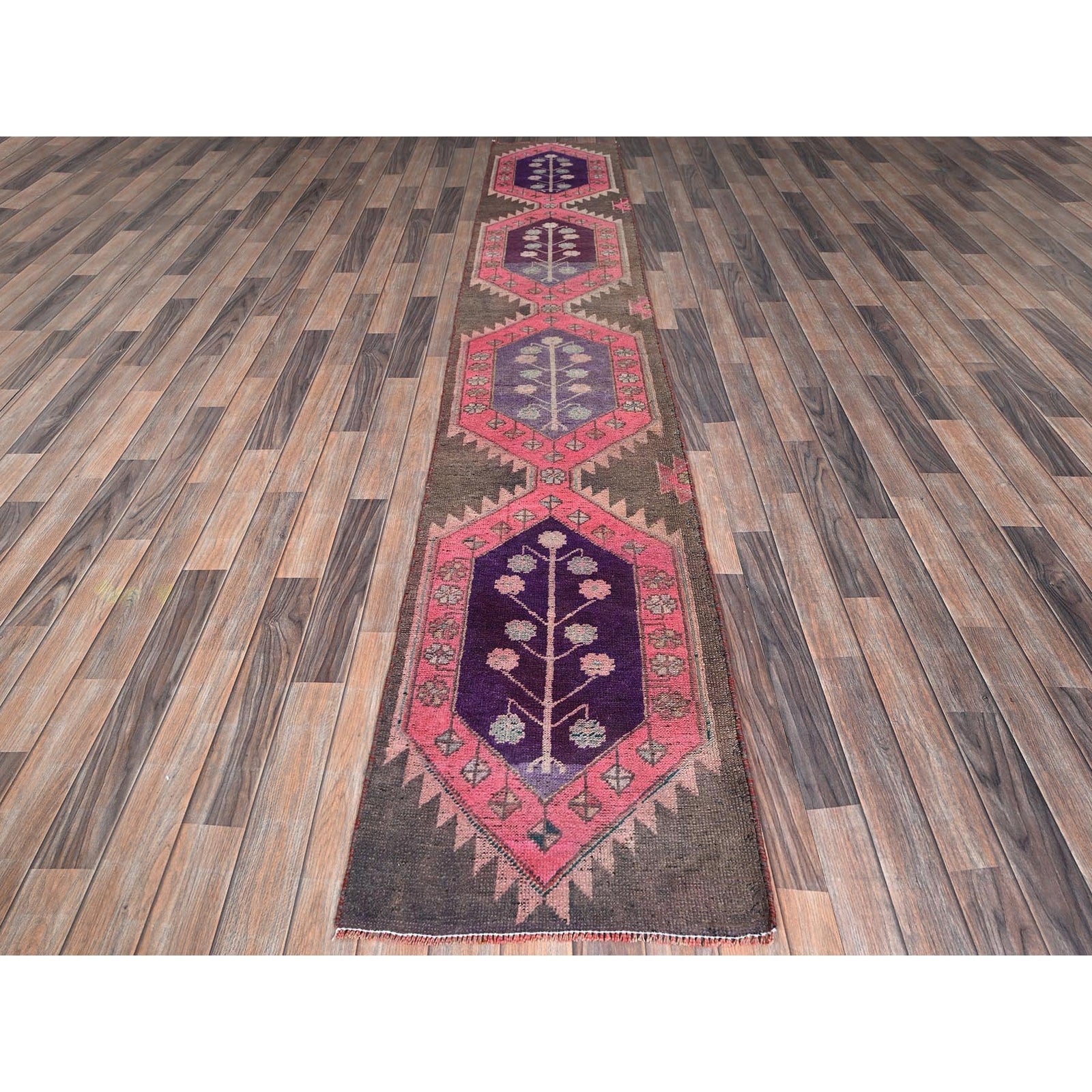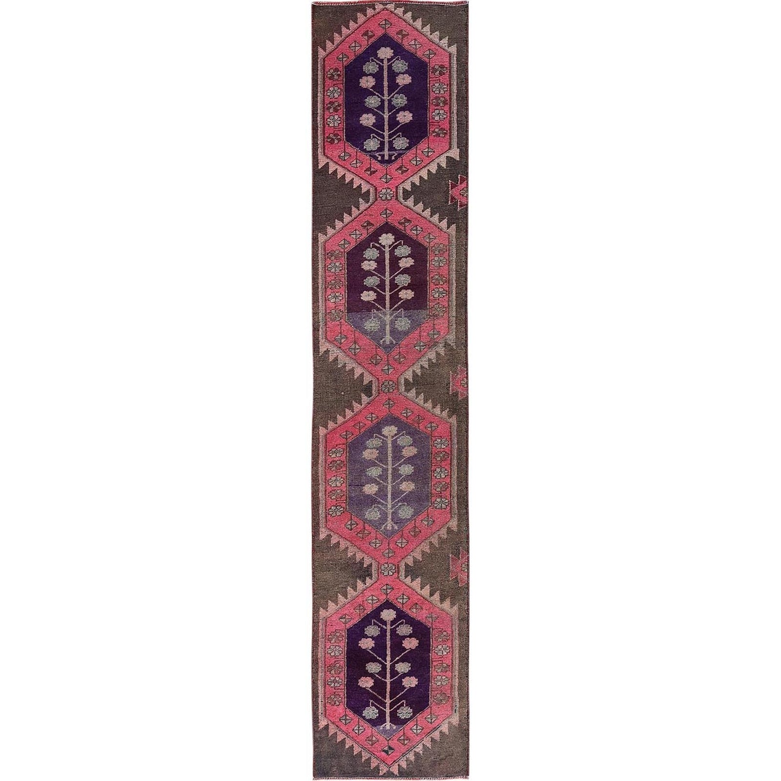 2'X11' Pink Vintage Northwest Zoroastrian Hand Knotted Pure Wool Runner Rug