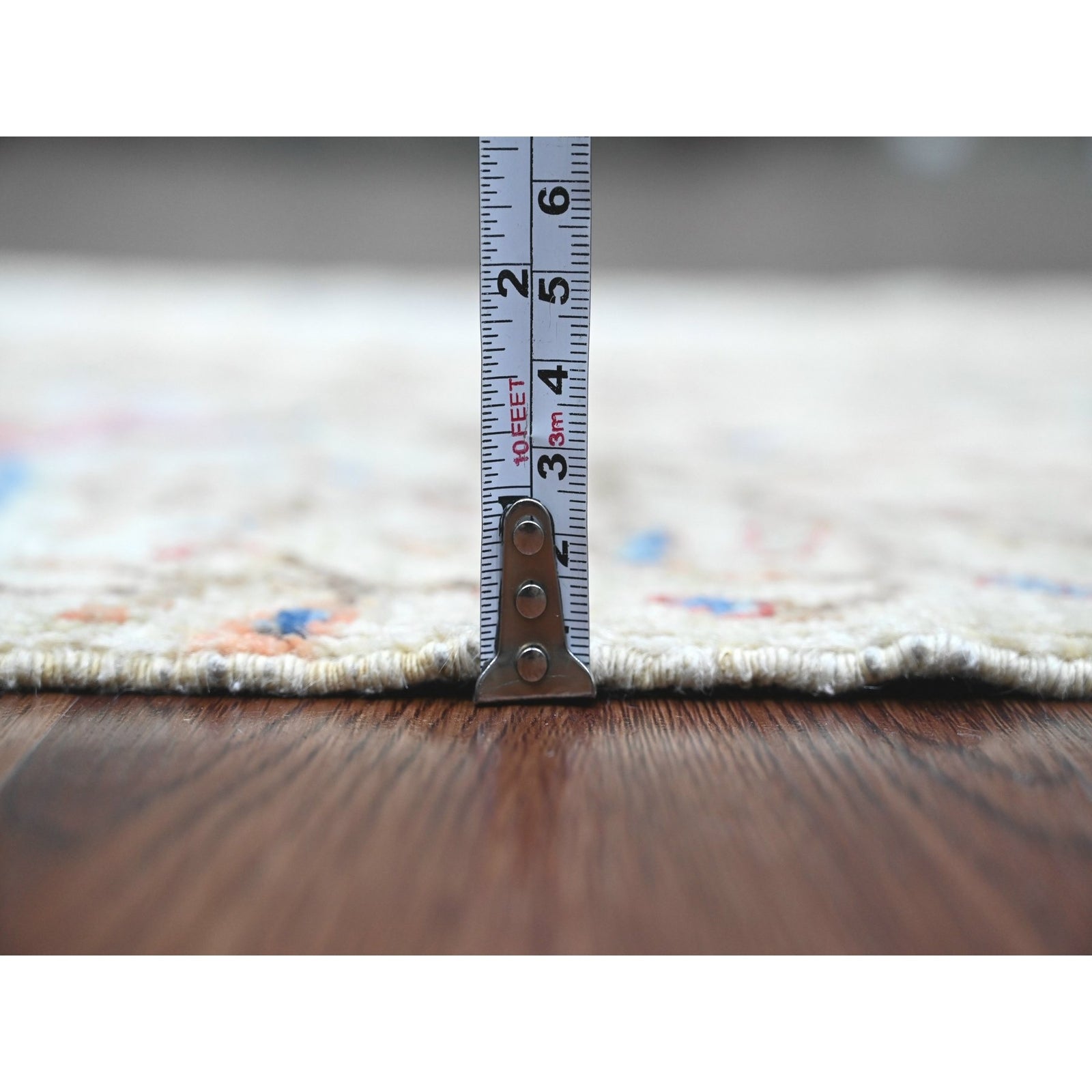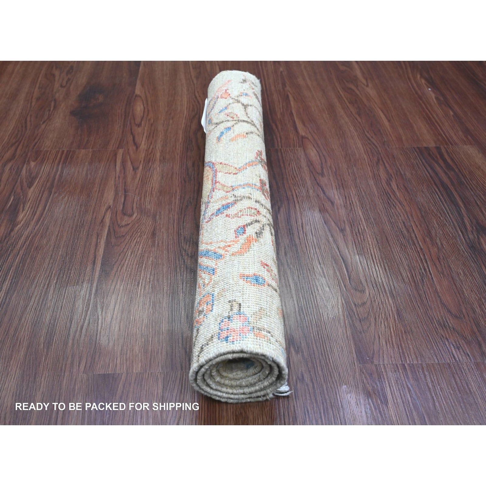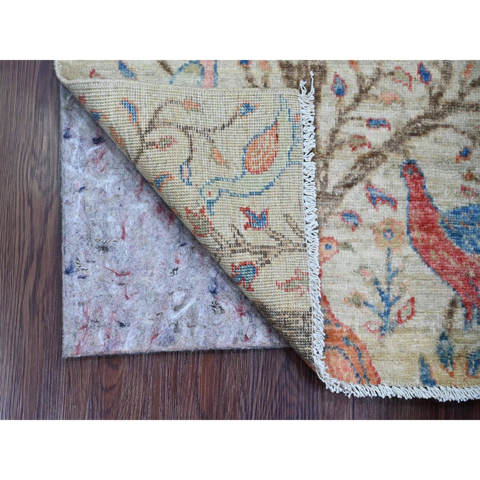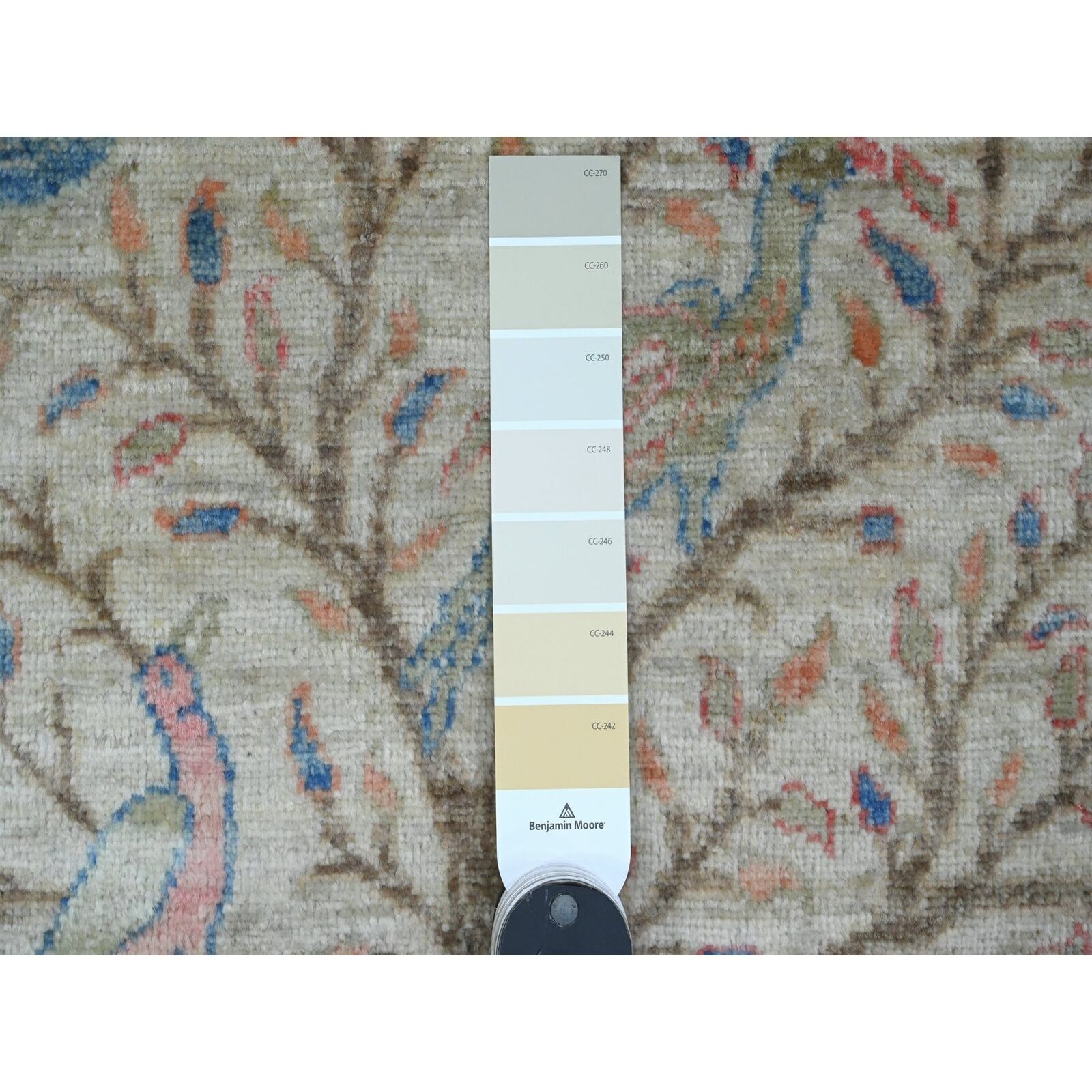 2'X2'10" White Hand Knotted Afghan Peshawar Birds Design All Wool Mat Rug