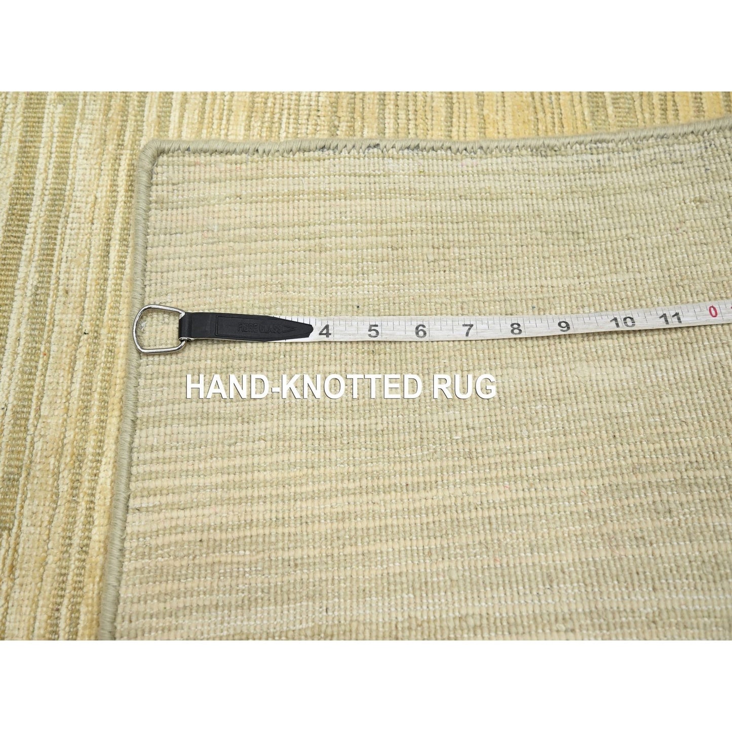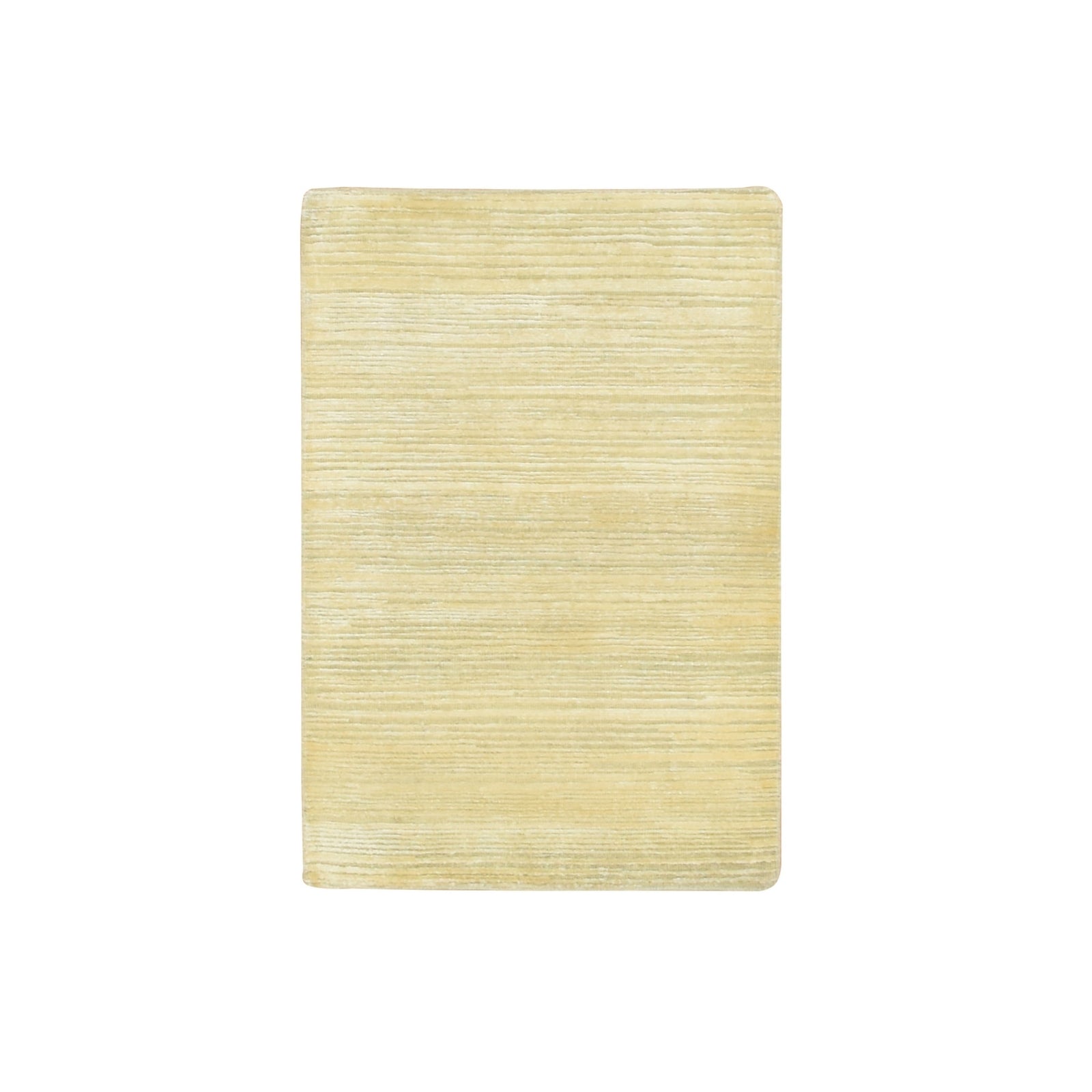 2'X3' Beige Plain Line Design Silk & Oxidized Wool Hand Knotted Mat Rug