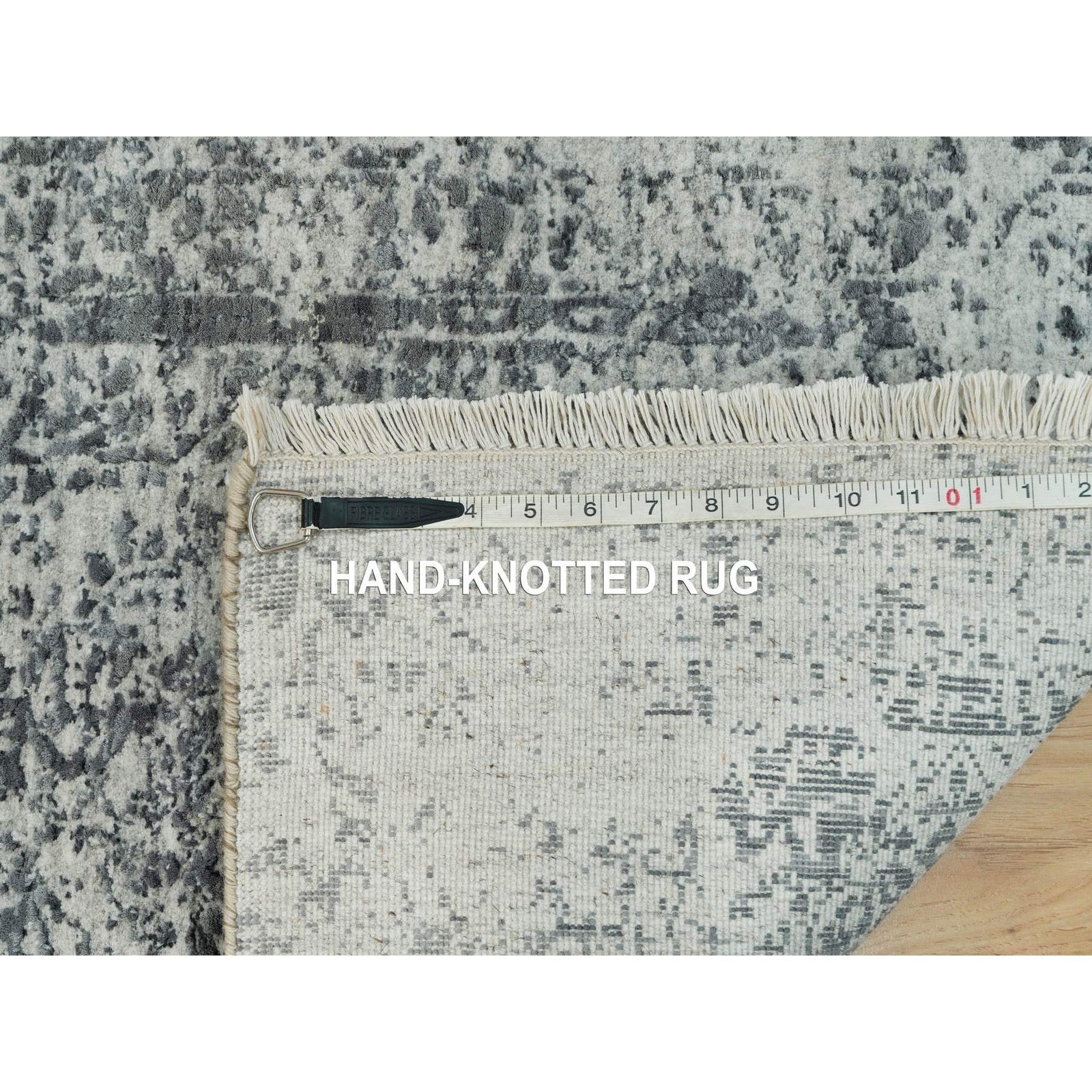 2'X3' Gray Broken Hand Knotted Zoroastrian Design Wool And Silk Mat Rug