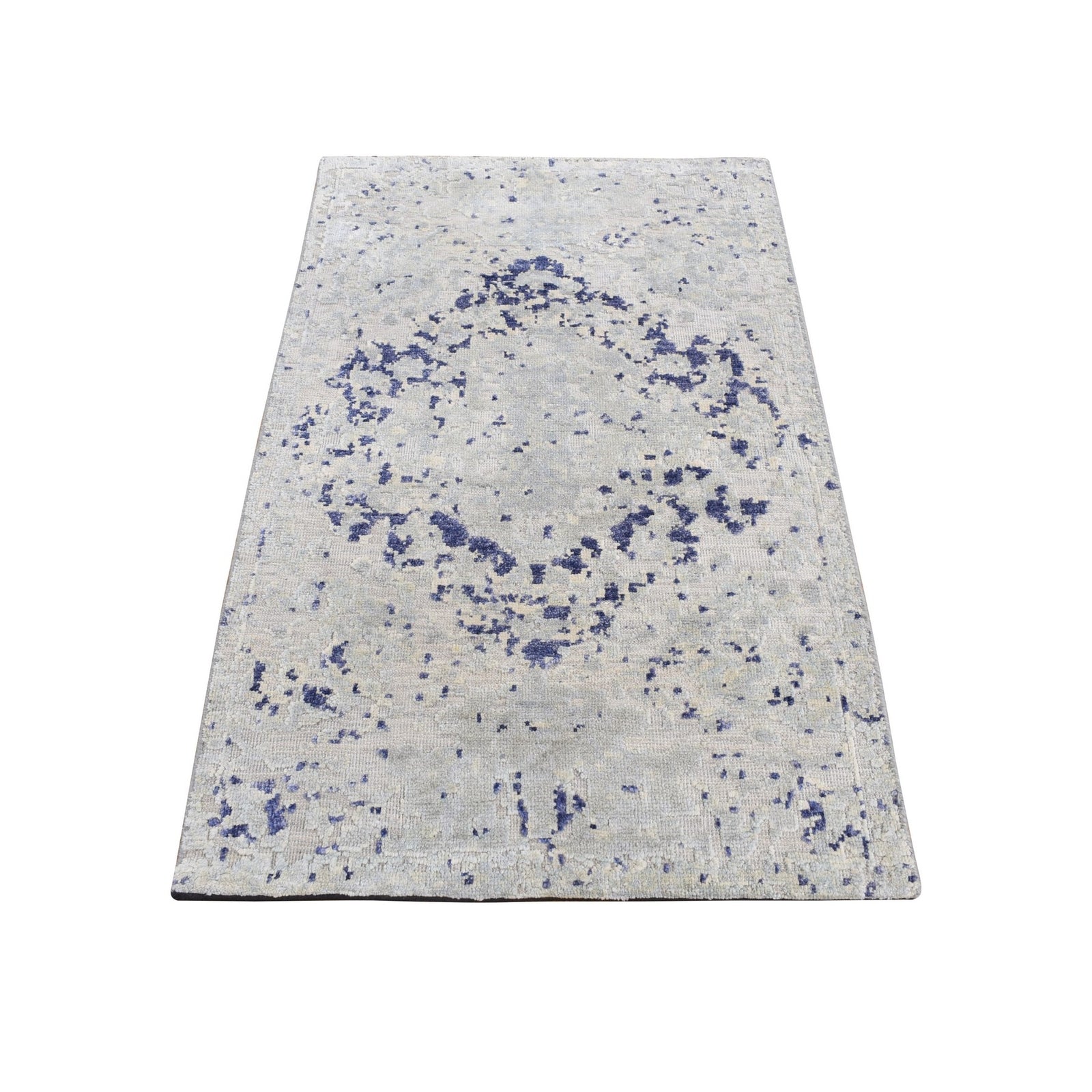 2'X3'1" Gray Cypress Tree Design Silk With Wool Hand Knotted Sample Rug