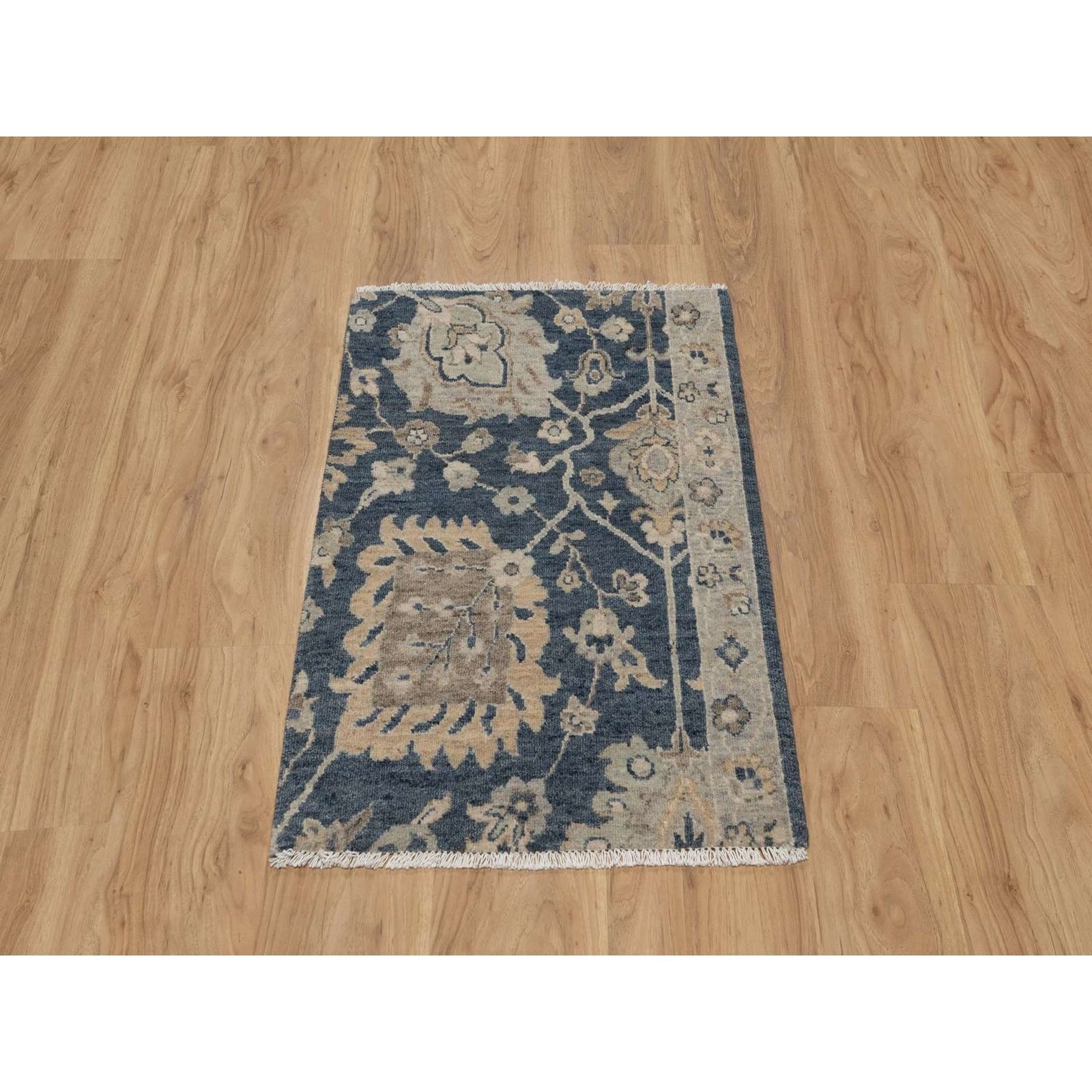 2'X3'1" Navy Blue Oushak Design Wool Hand Knotted Fragment Sample Rug