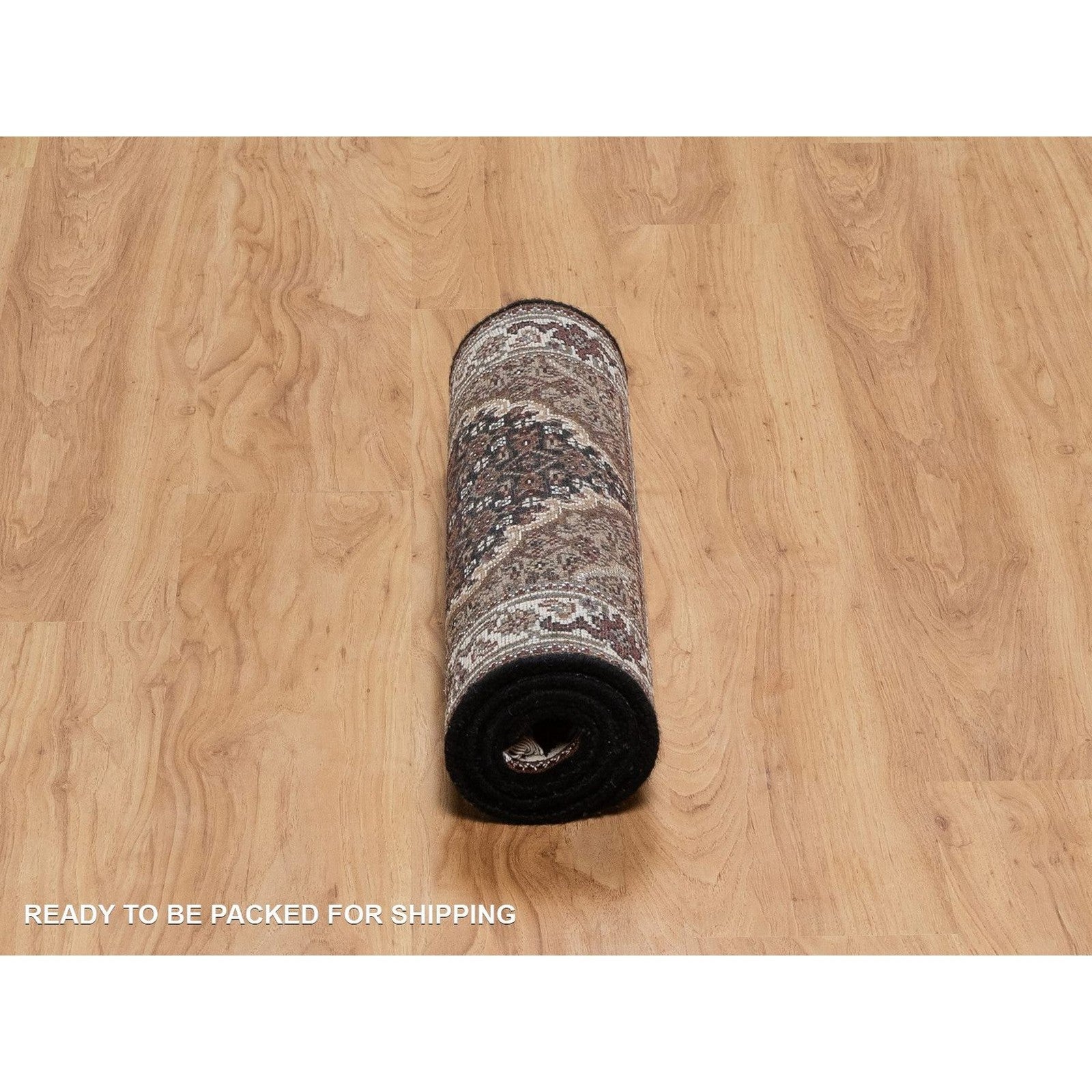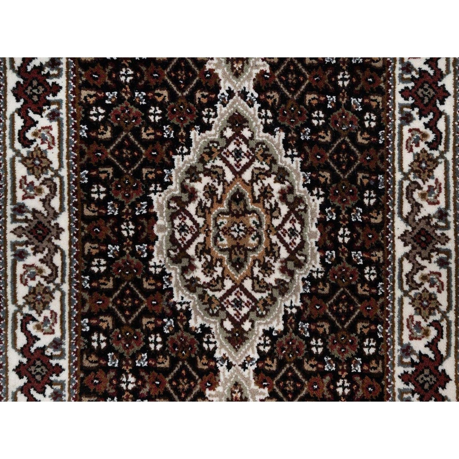 2'X4'2" Black Tebraz Mahi With Medallion Design Wool Hand Knotted Mat Rug