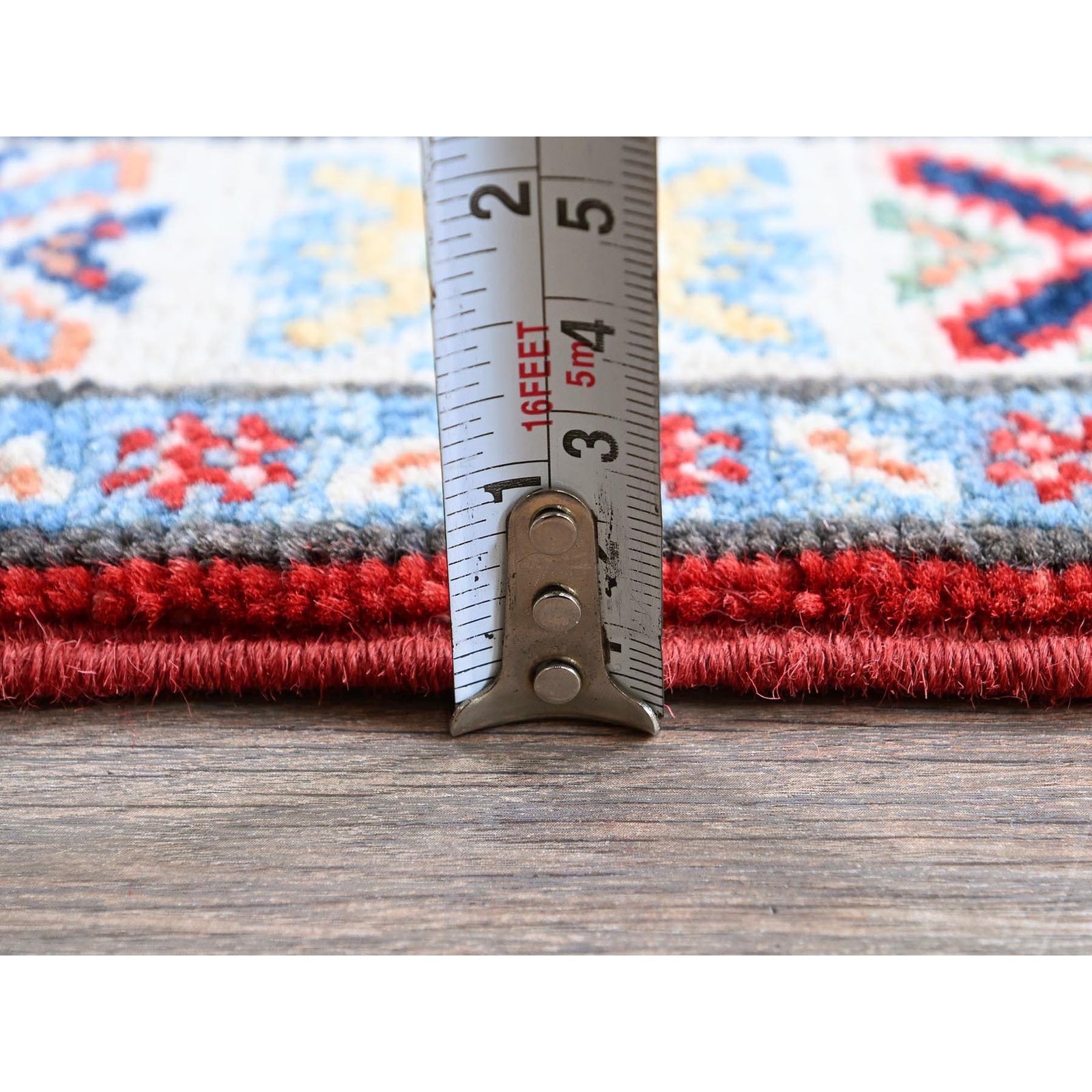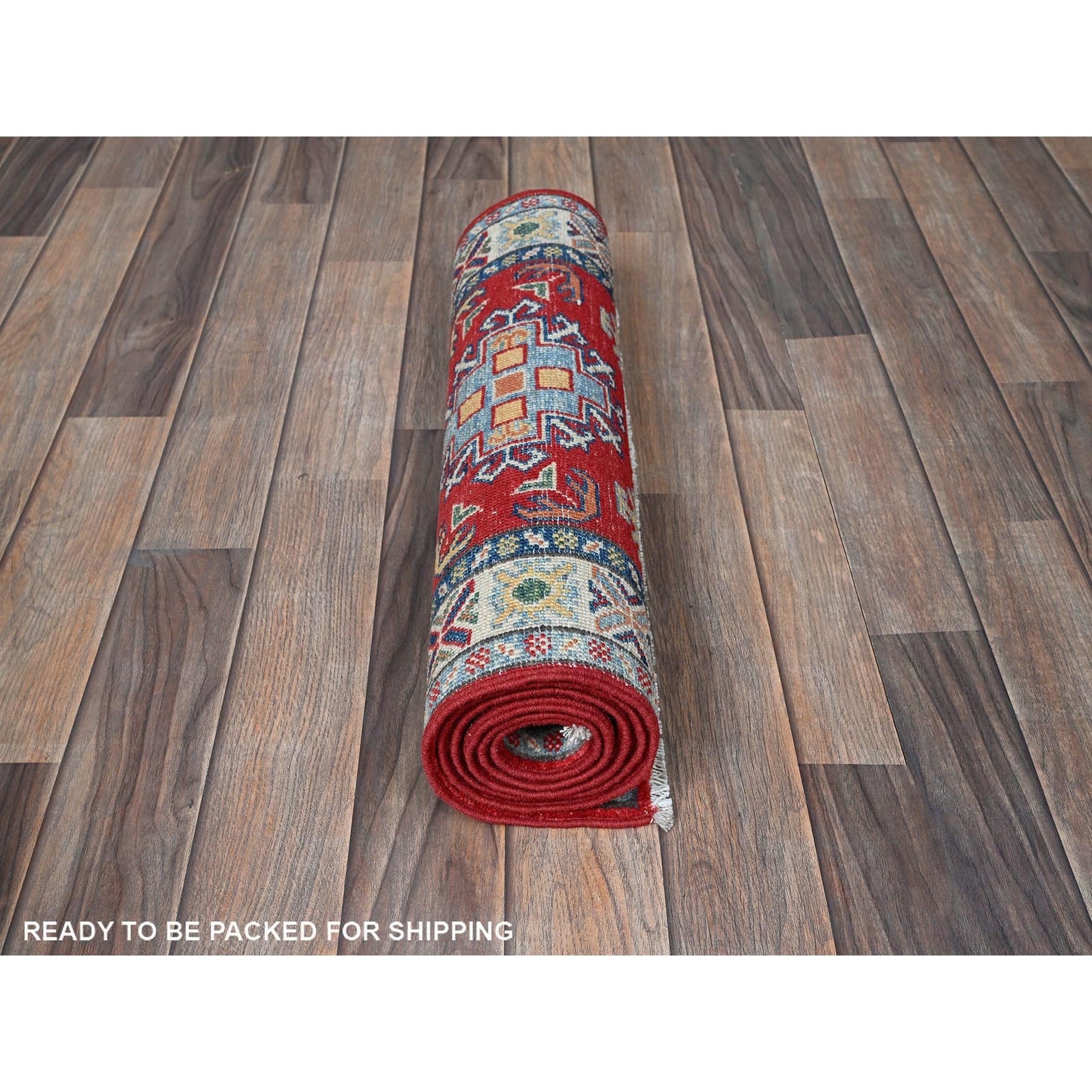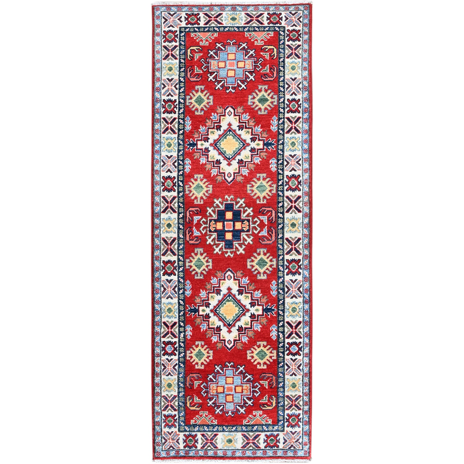2'X5'9" Red Kazak With Medallions Design Hand Knotted Soft Wool Runner Rug
