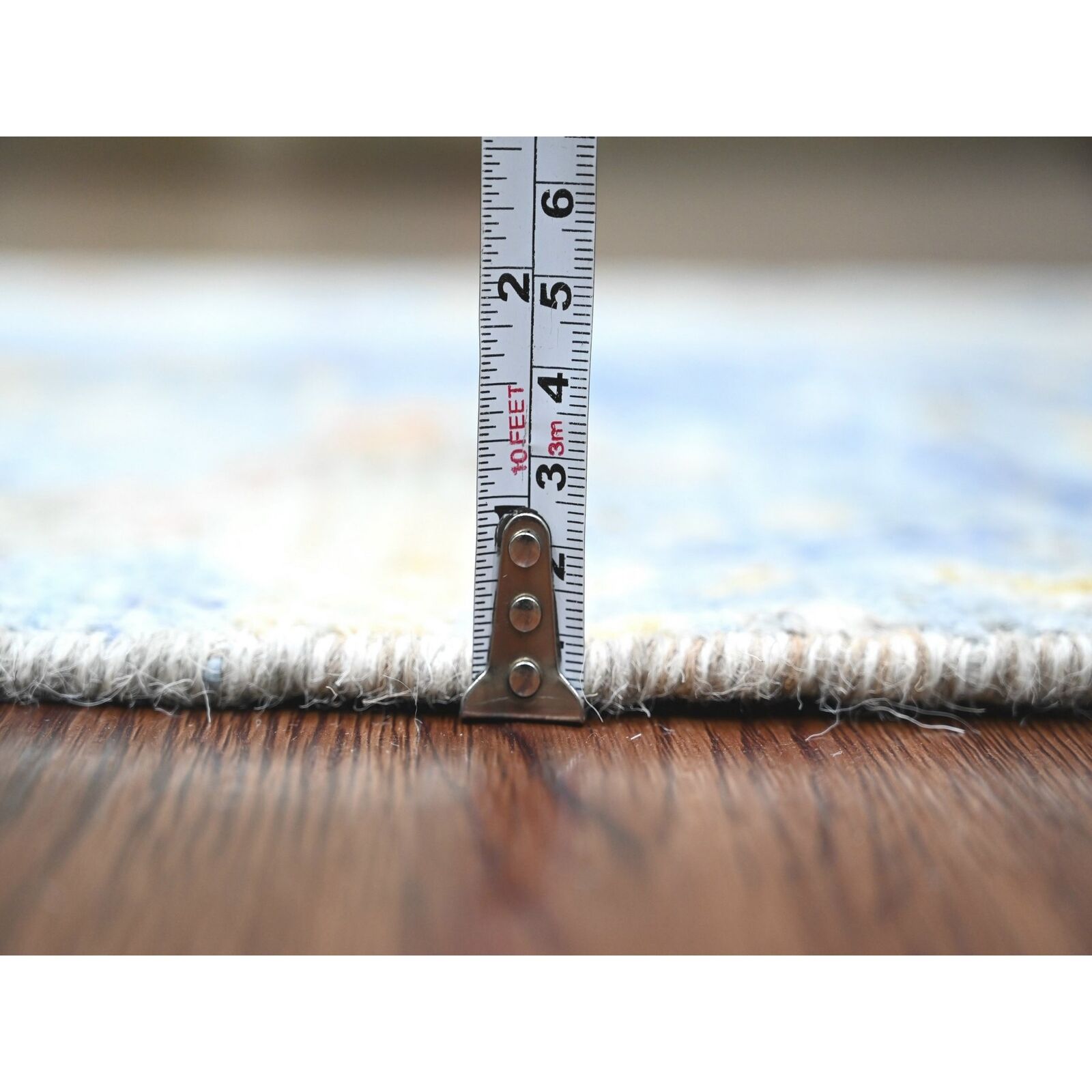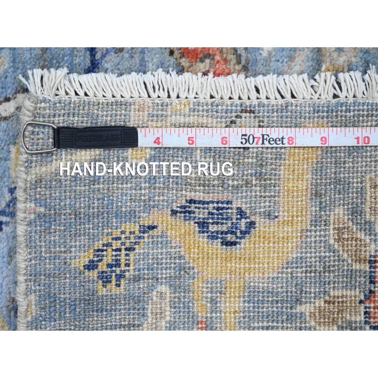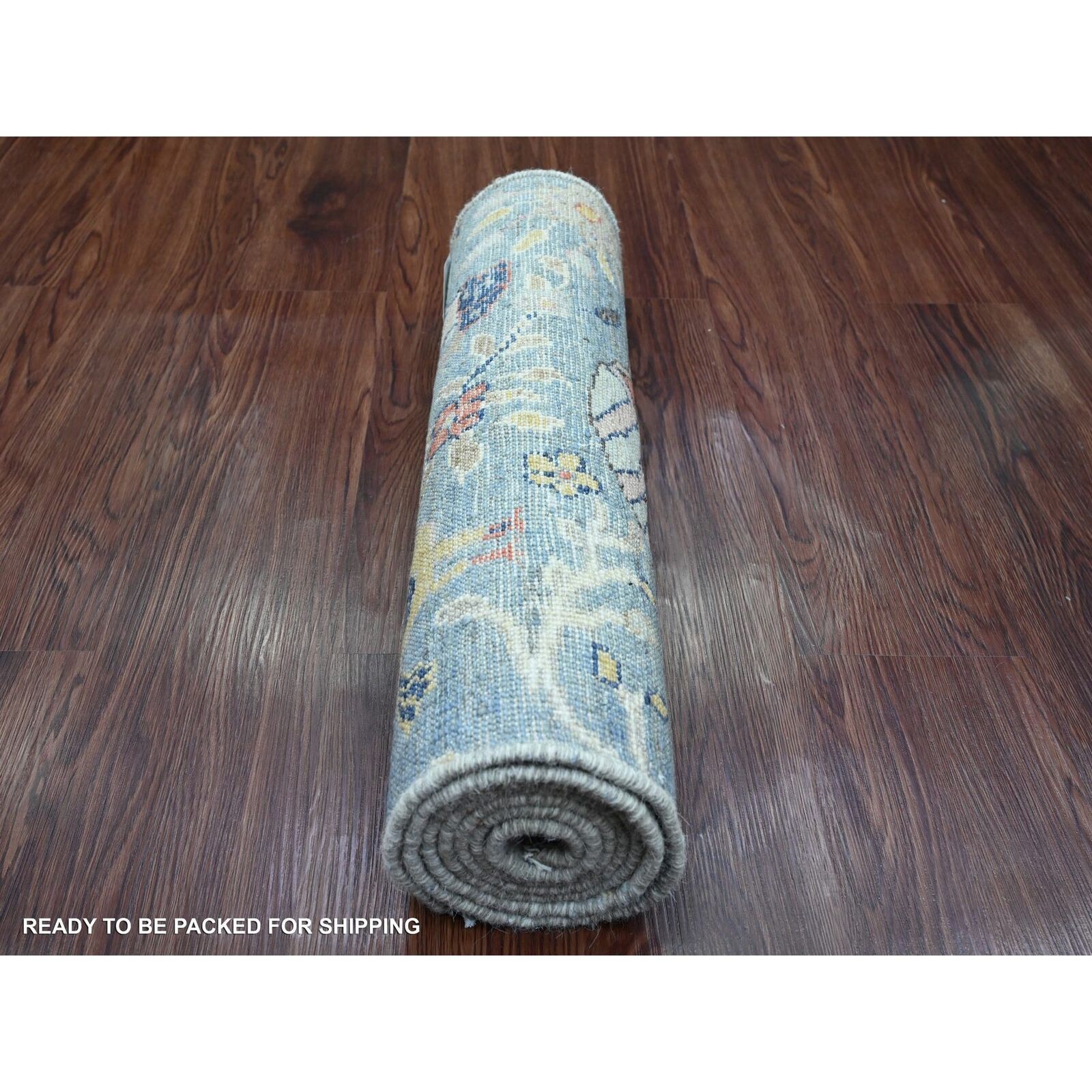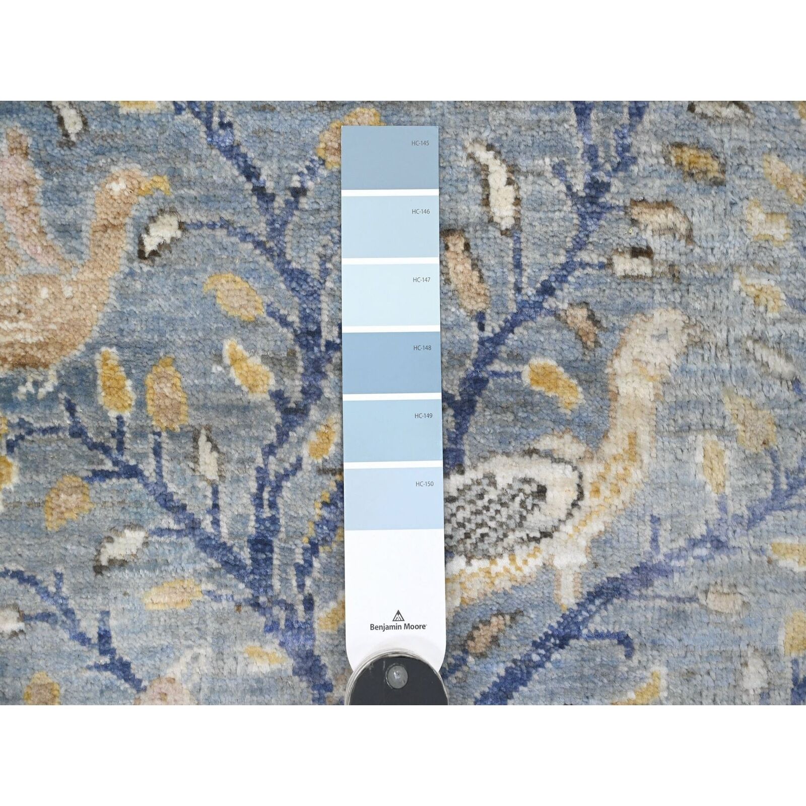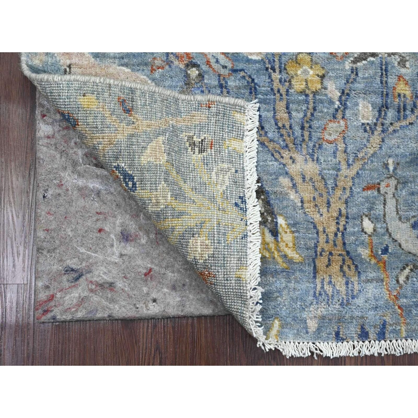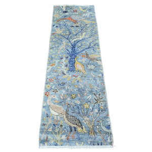 2'X6'4" Ruddy Blue Peshawar Birds Design Hand Knotted All Wool Runner Rug