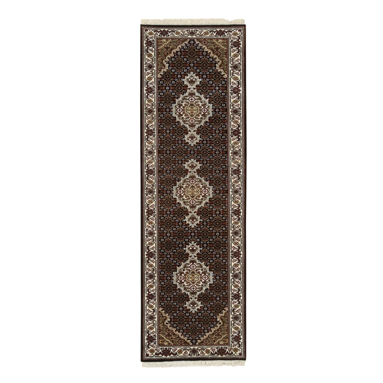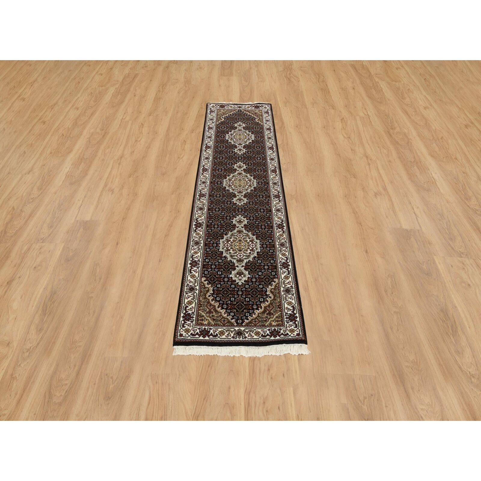 2'X8'1" Black Tebraz Mahi 175 Kpsi Pure Wool Hand Knotted Runner Rug
