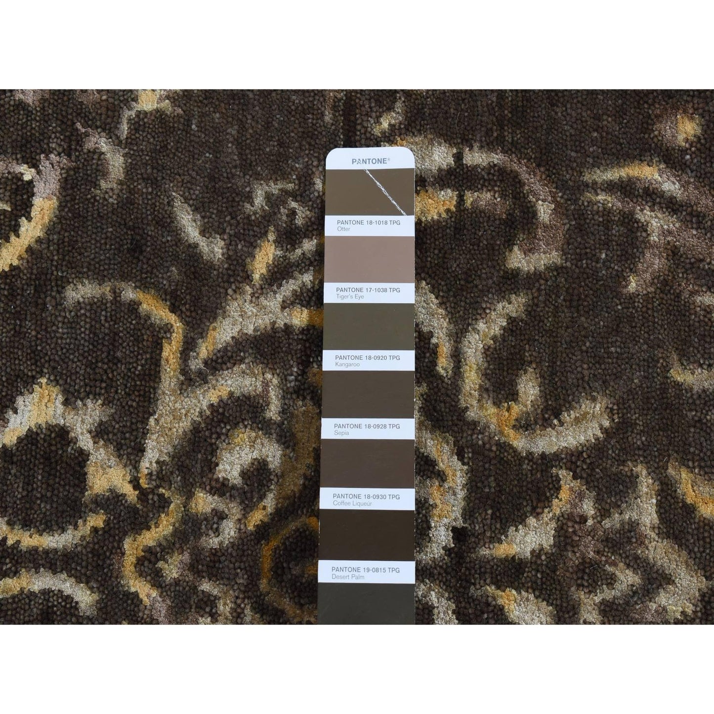2'X9'10" Brown Hand Knotted Damask Tone On Tone Wool And Silk Runner Rug