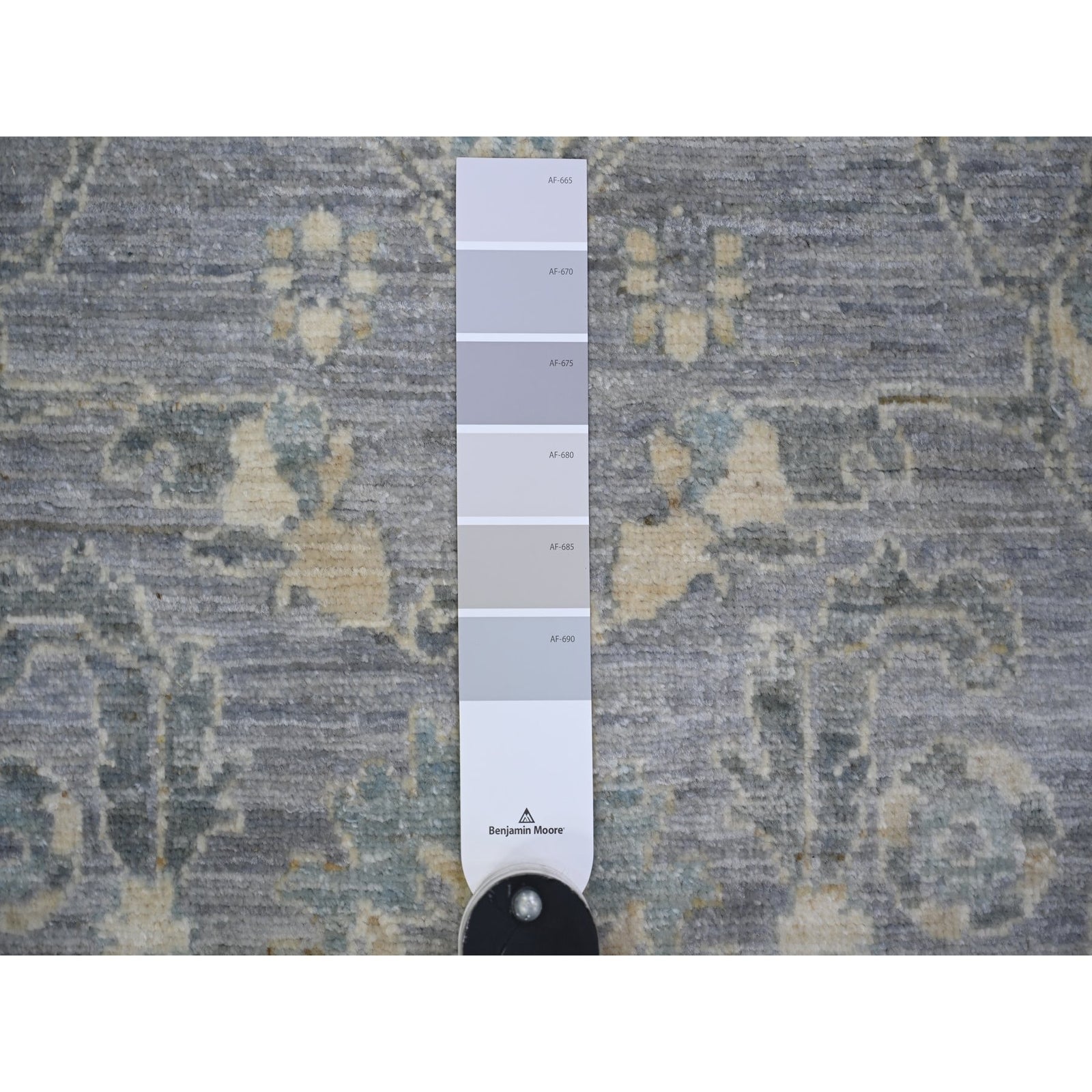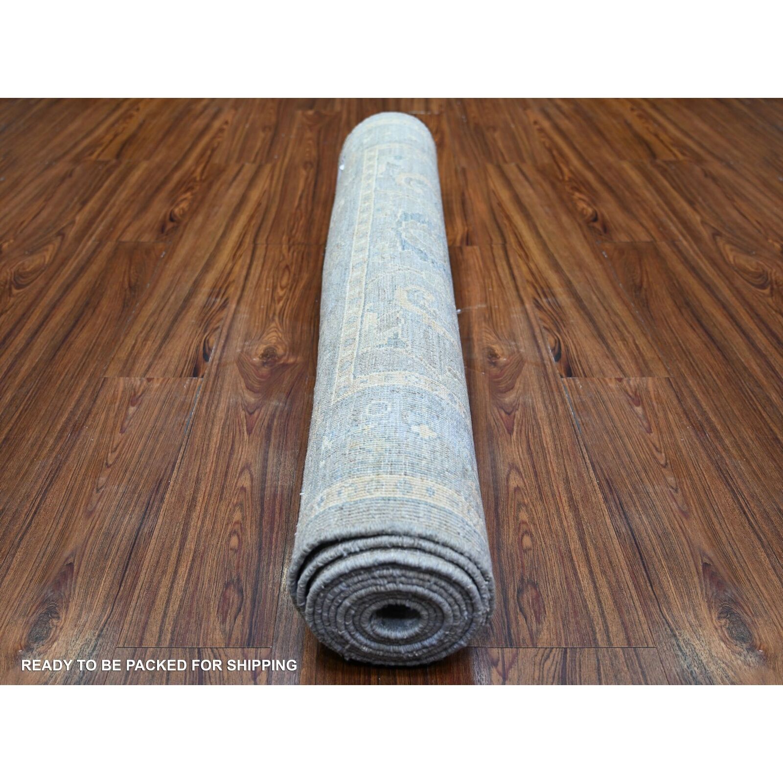 3'10"X11'9" Cloud Gray Finer Peshawar Wool Hand Knotted Rug